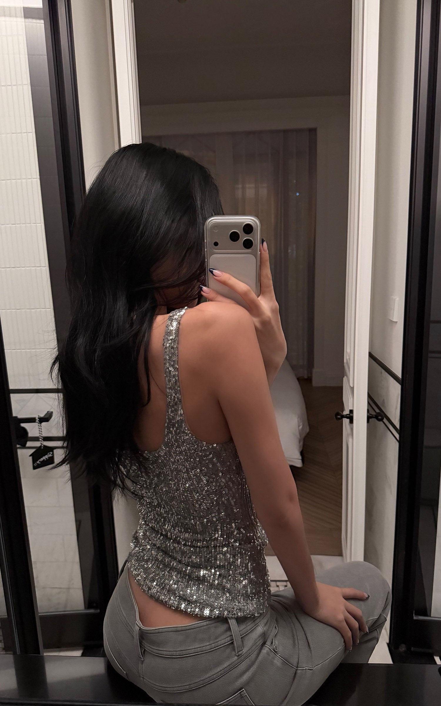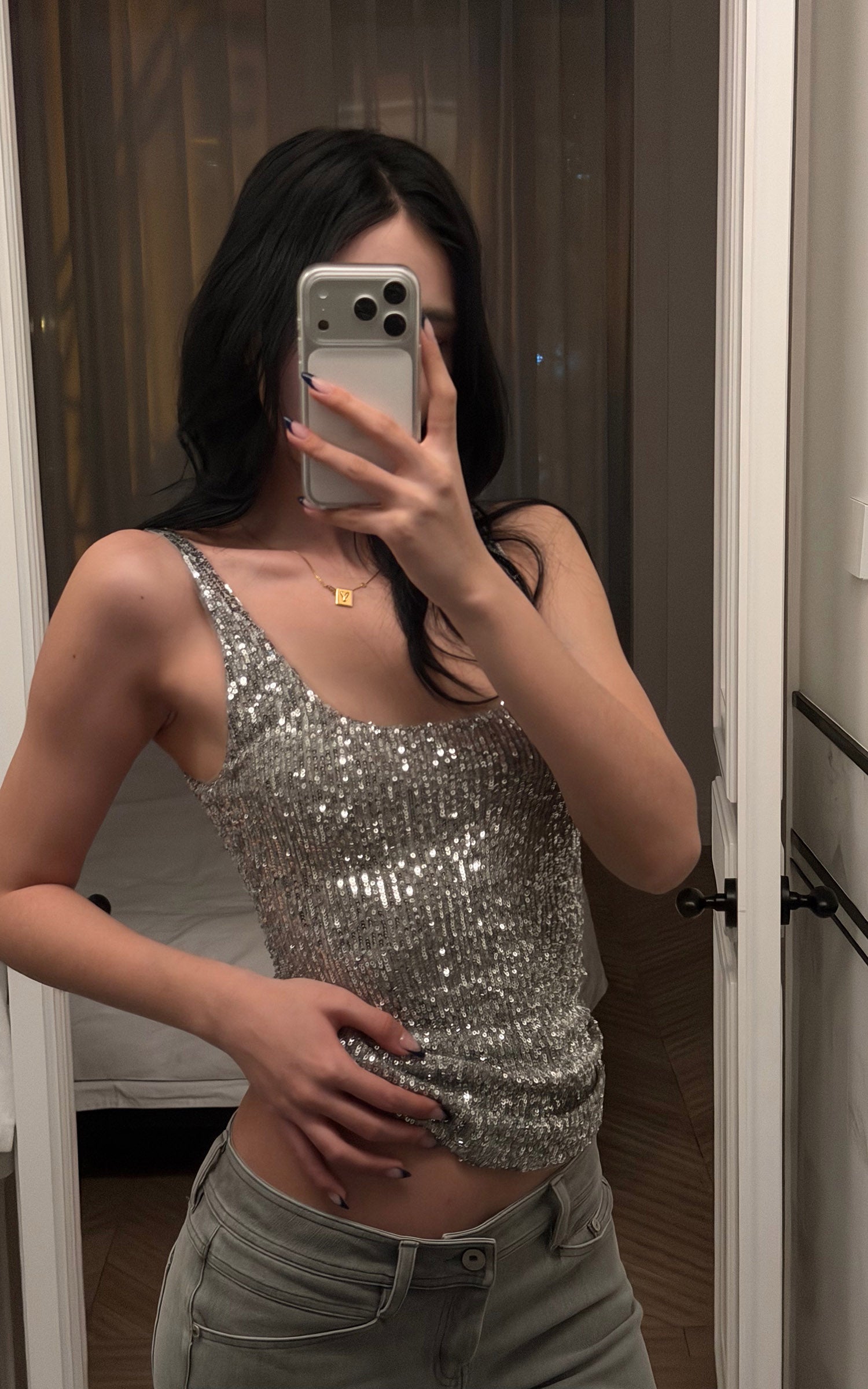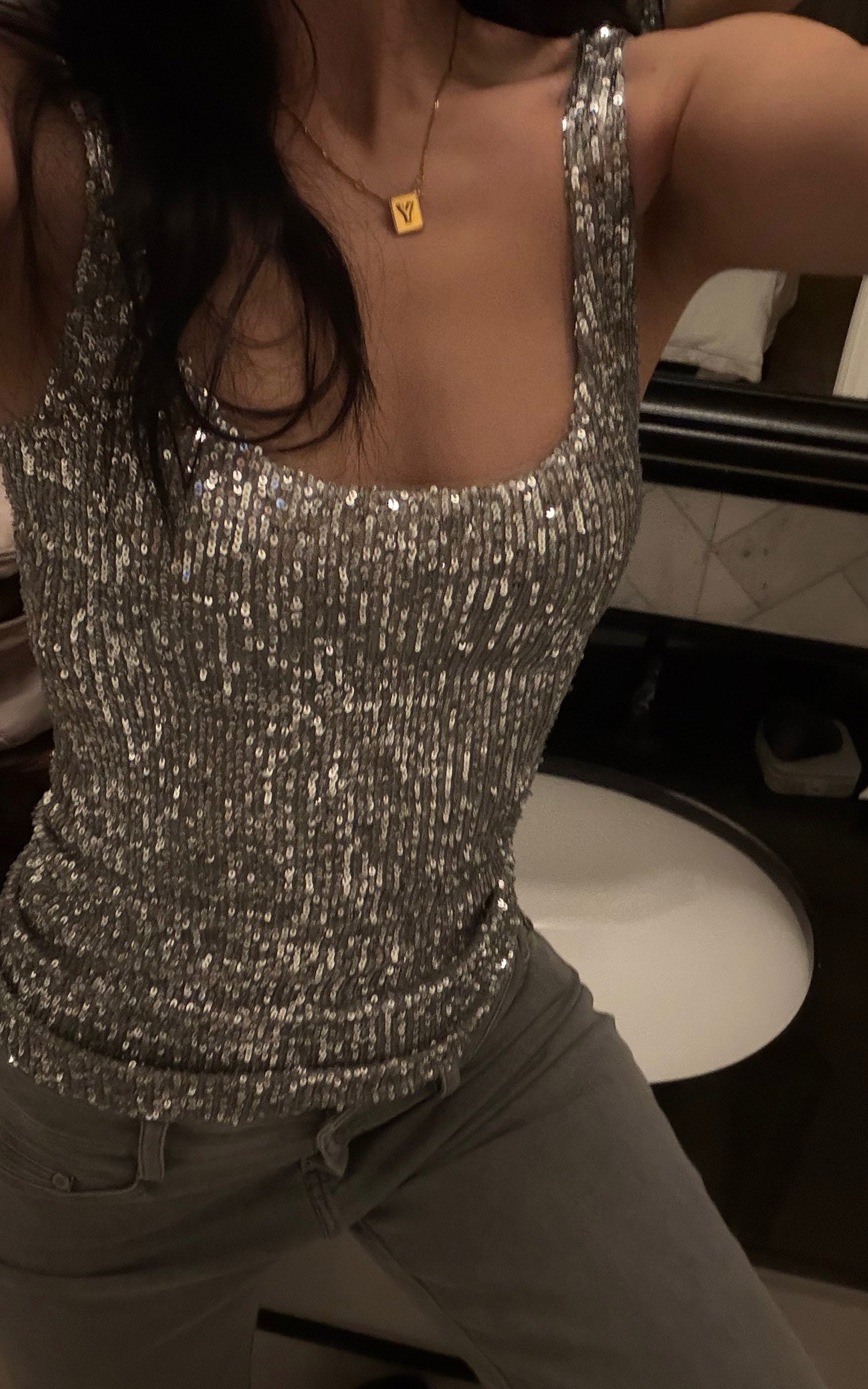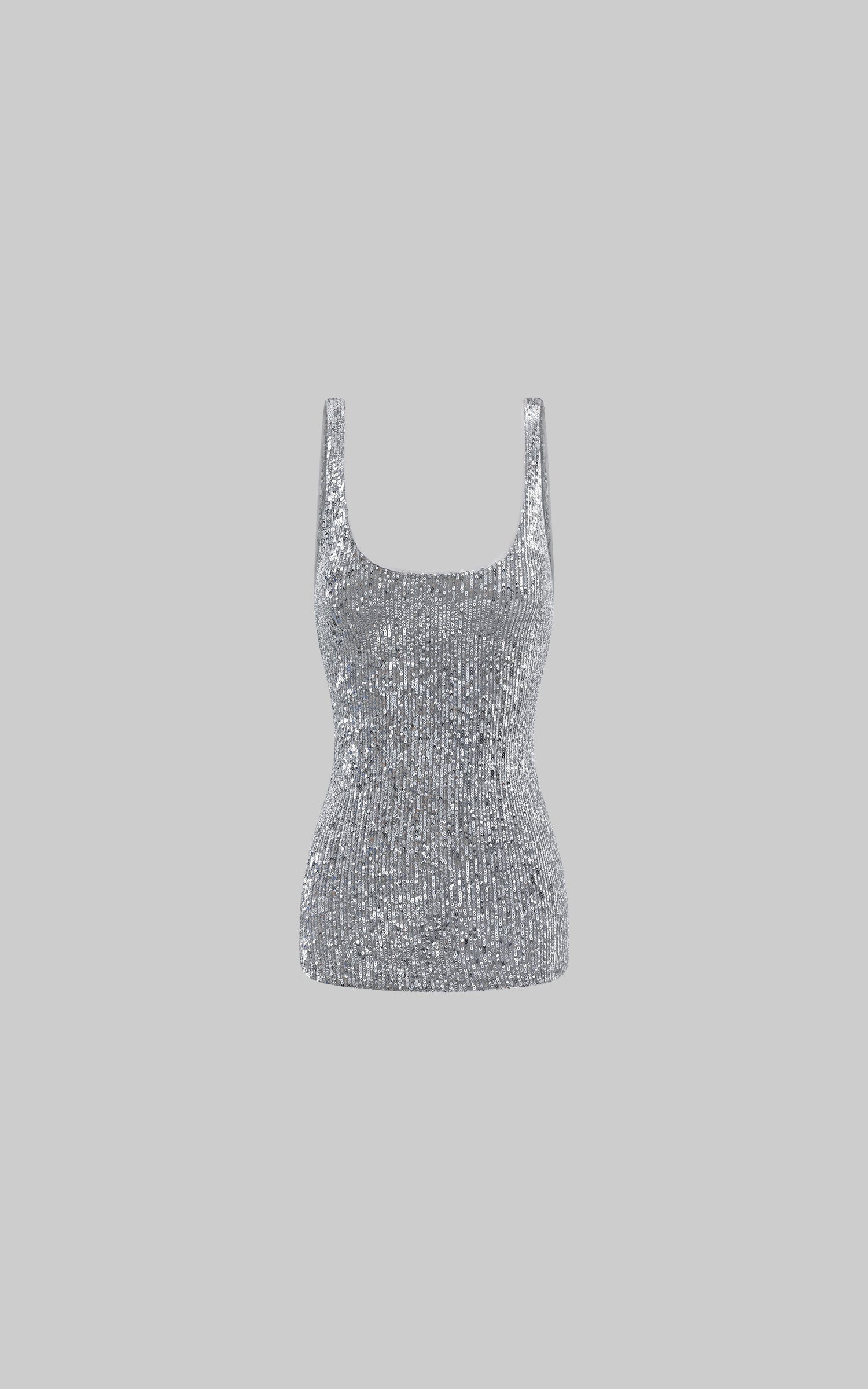 ROVENTE Deep V Halter Sequin Open-Back Maxi Dress