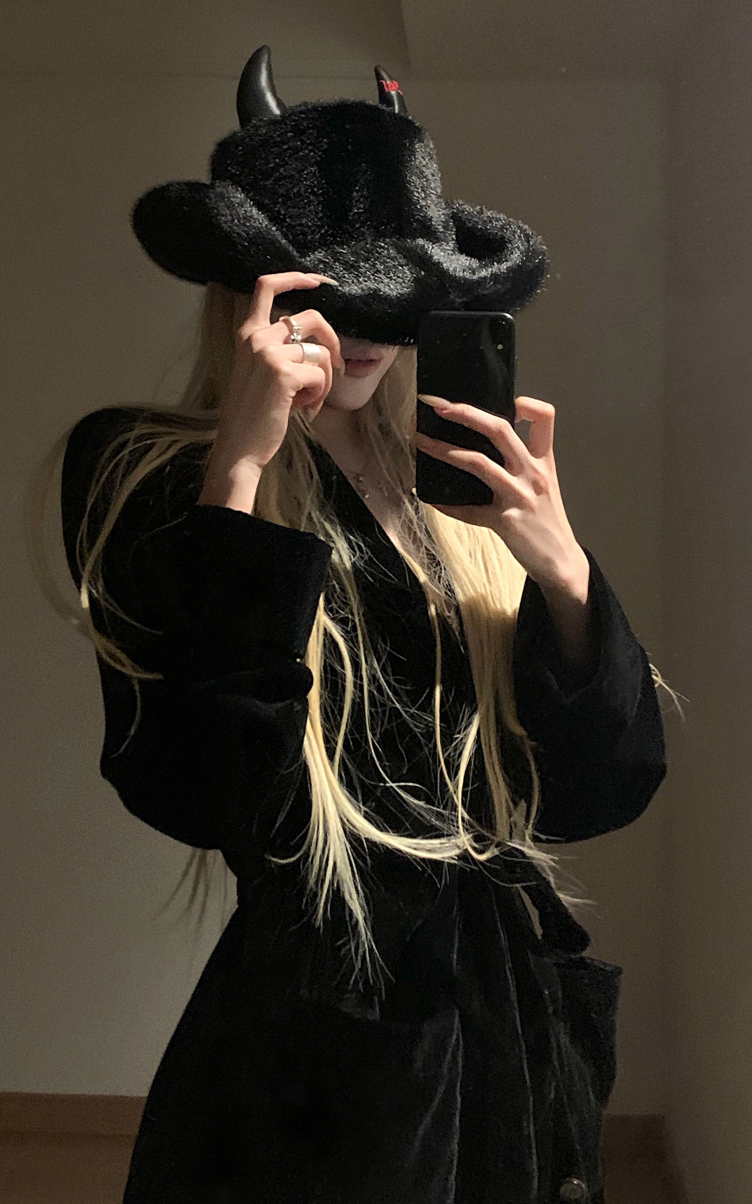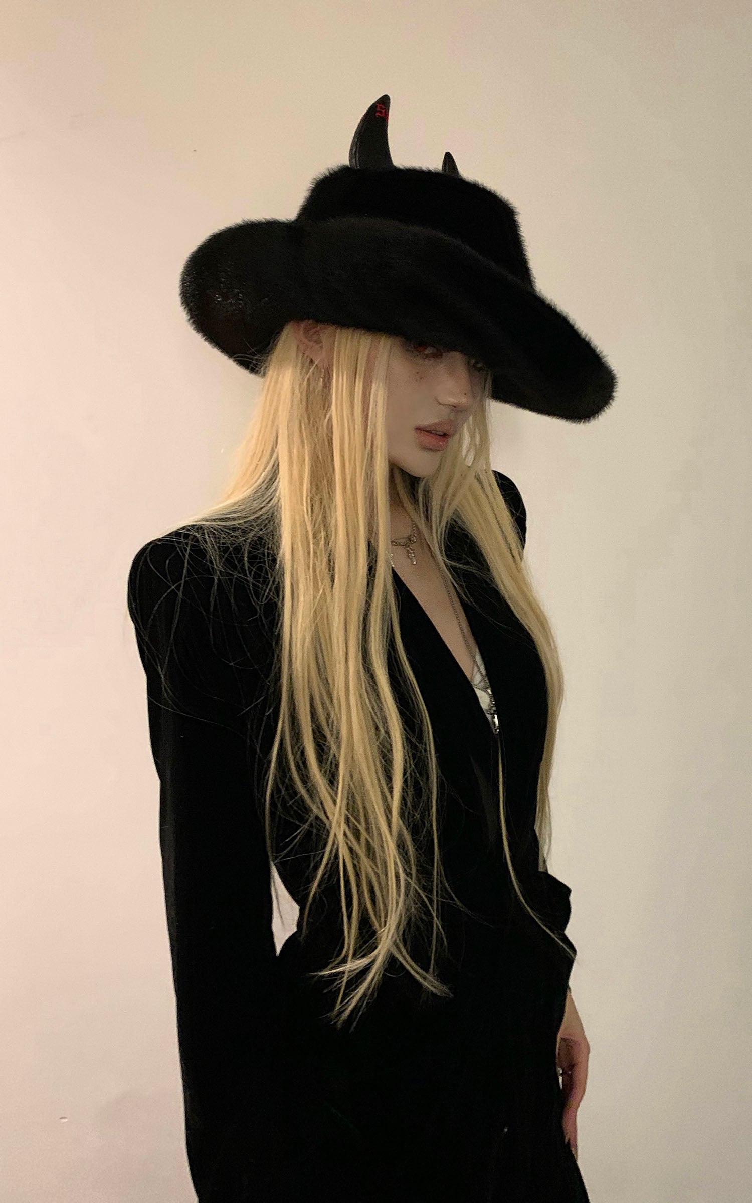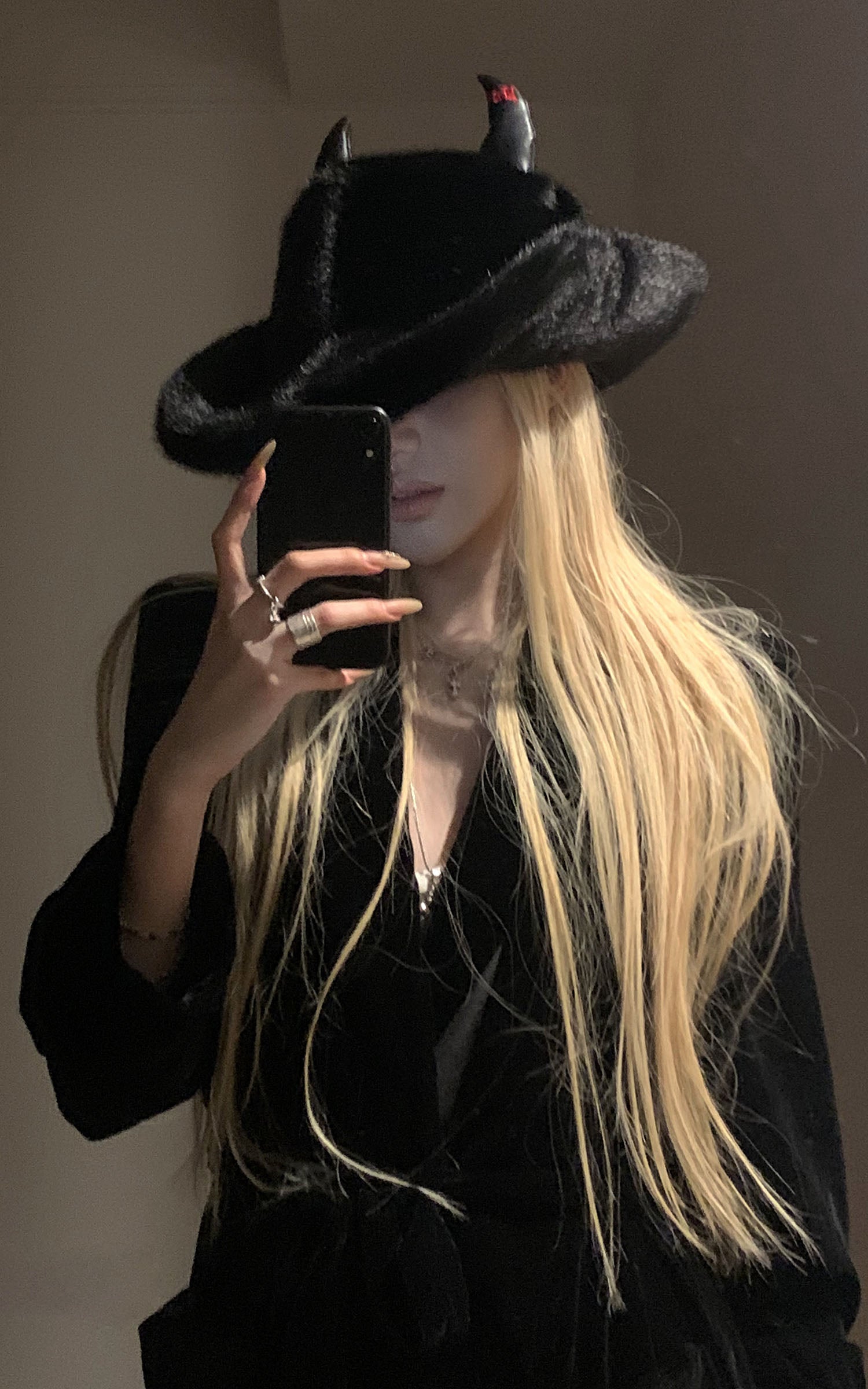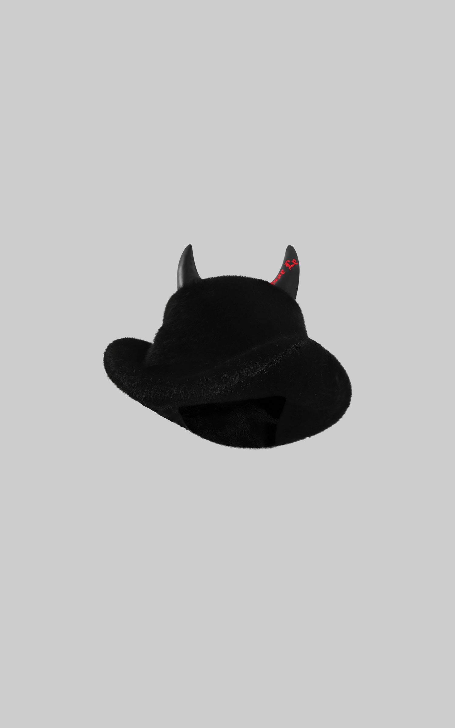Rase le sol Devil Horn Faux Fur Hat Western Silhouette Statement Fedora
