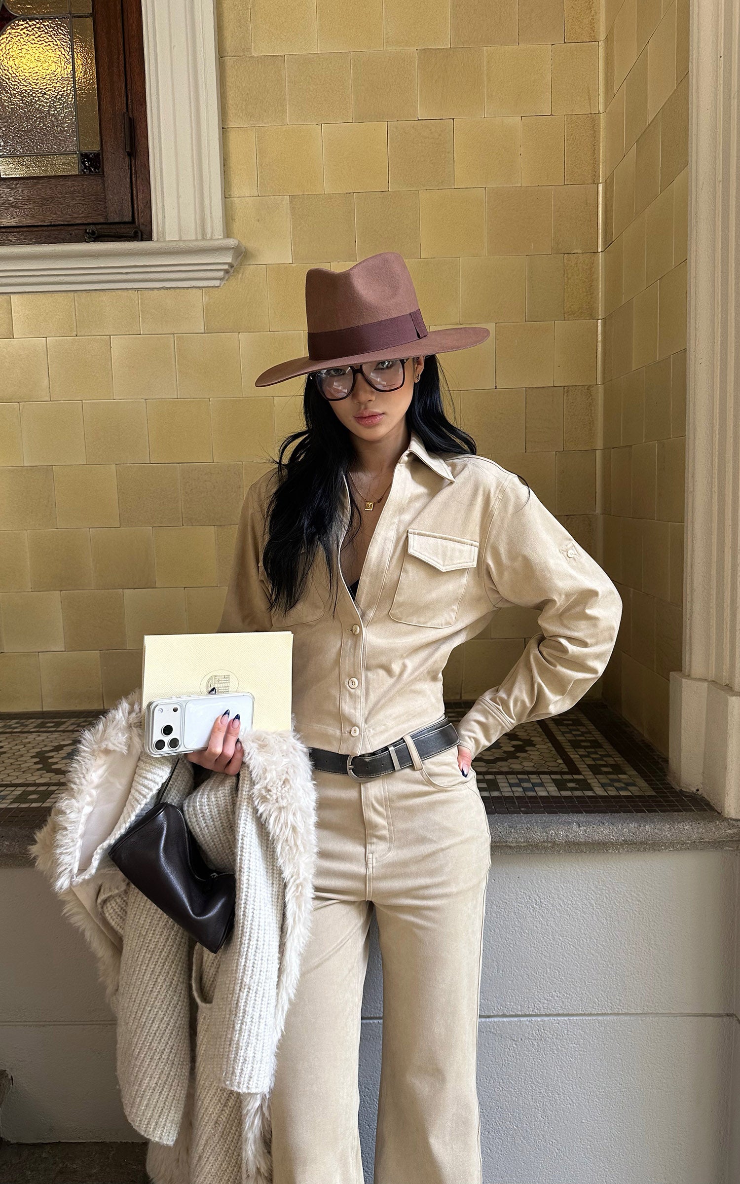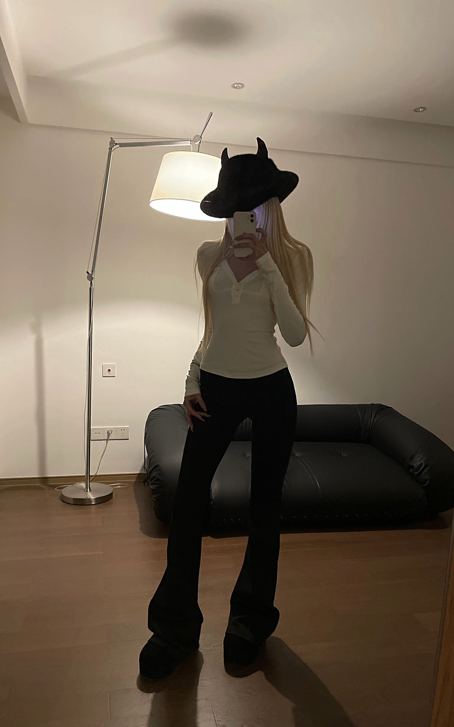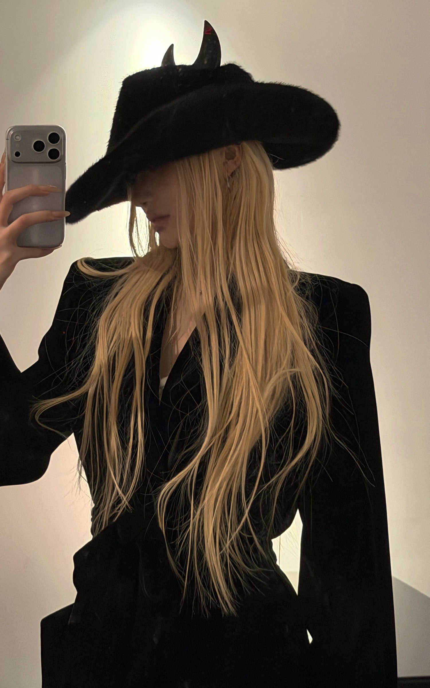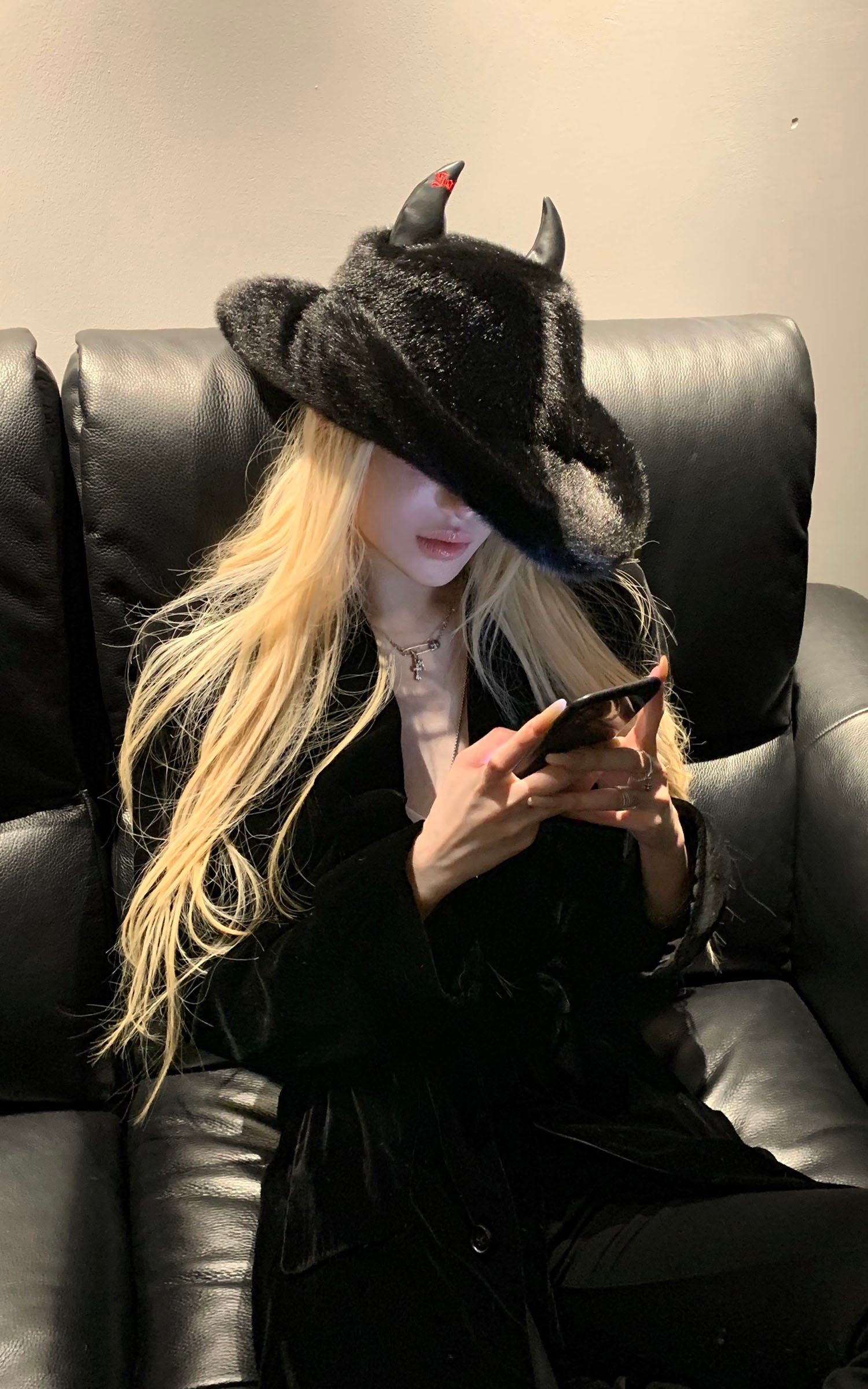 Rase le sol Devil Horn Faux Fur Hat Western Silhouette Statement Fedora