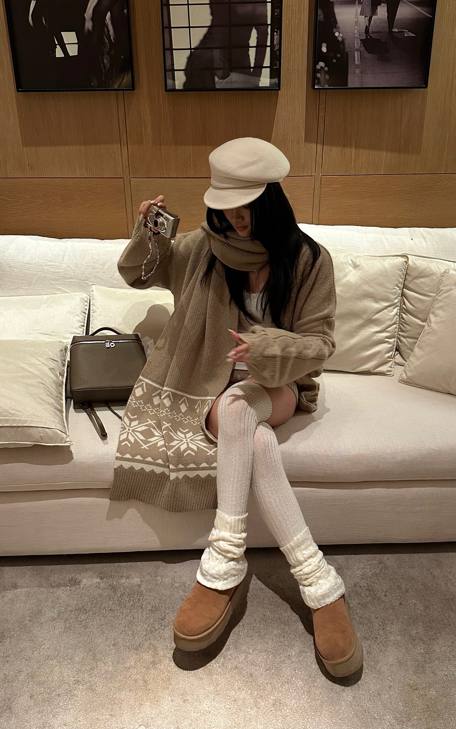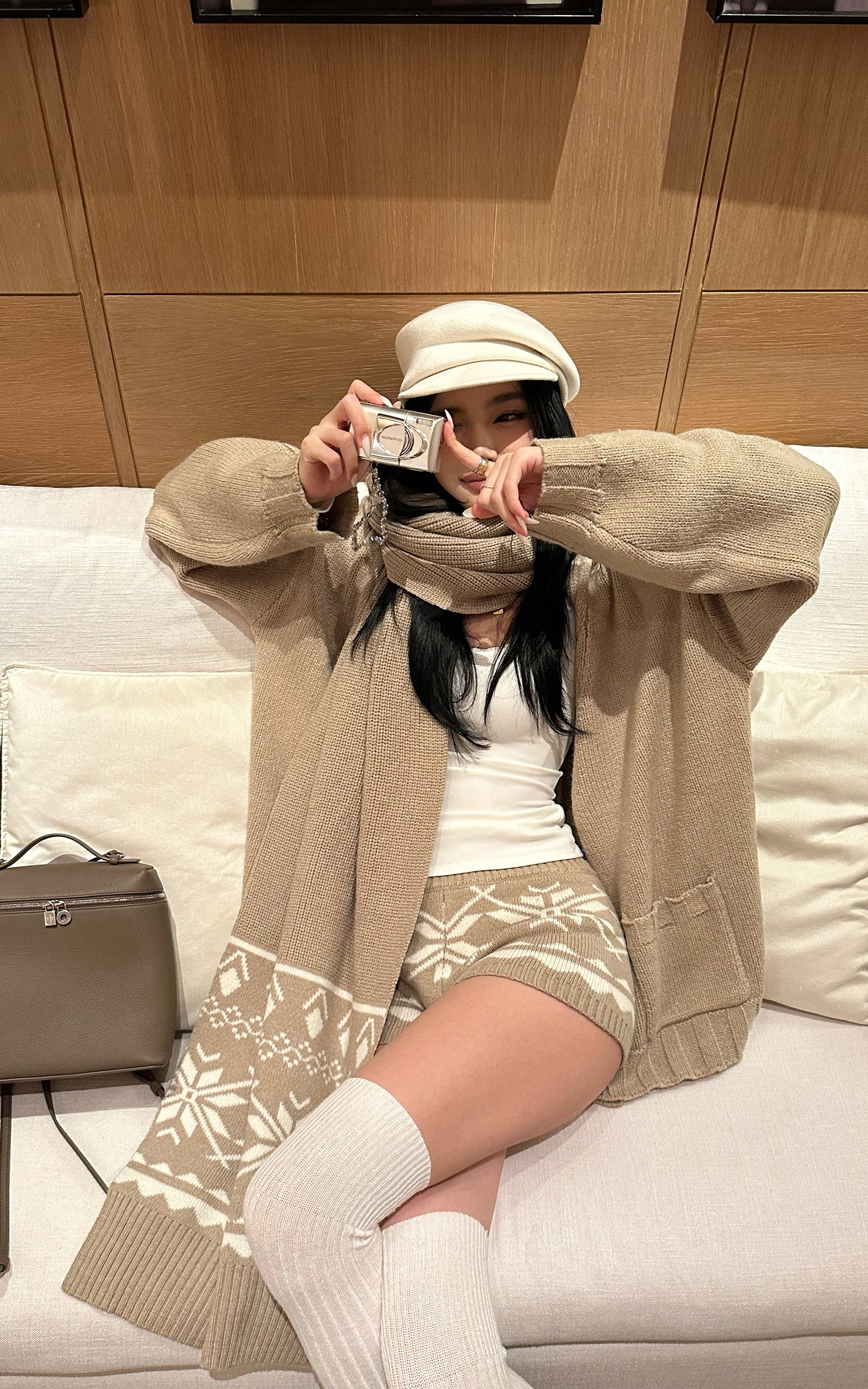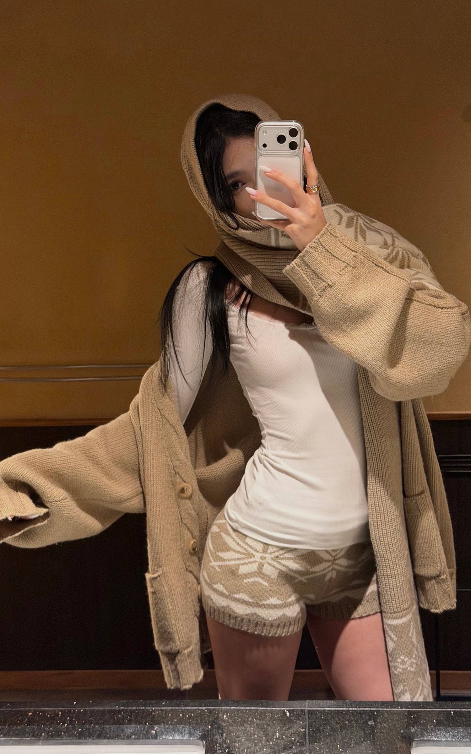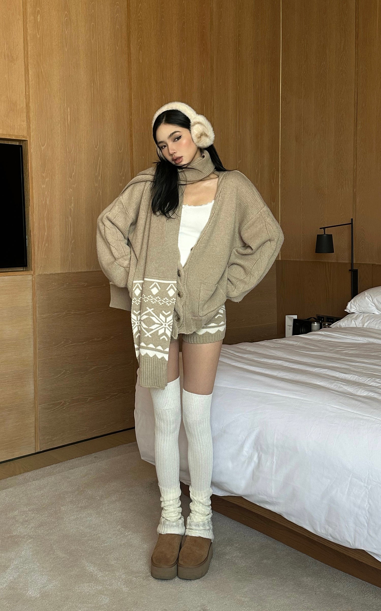 ROVENTE Nordic Jacquard Knit Cardigan Shorts and Scarf Set