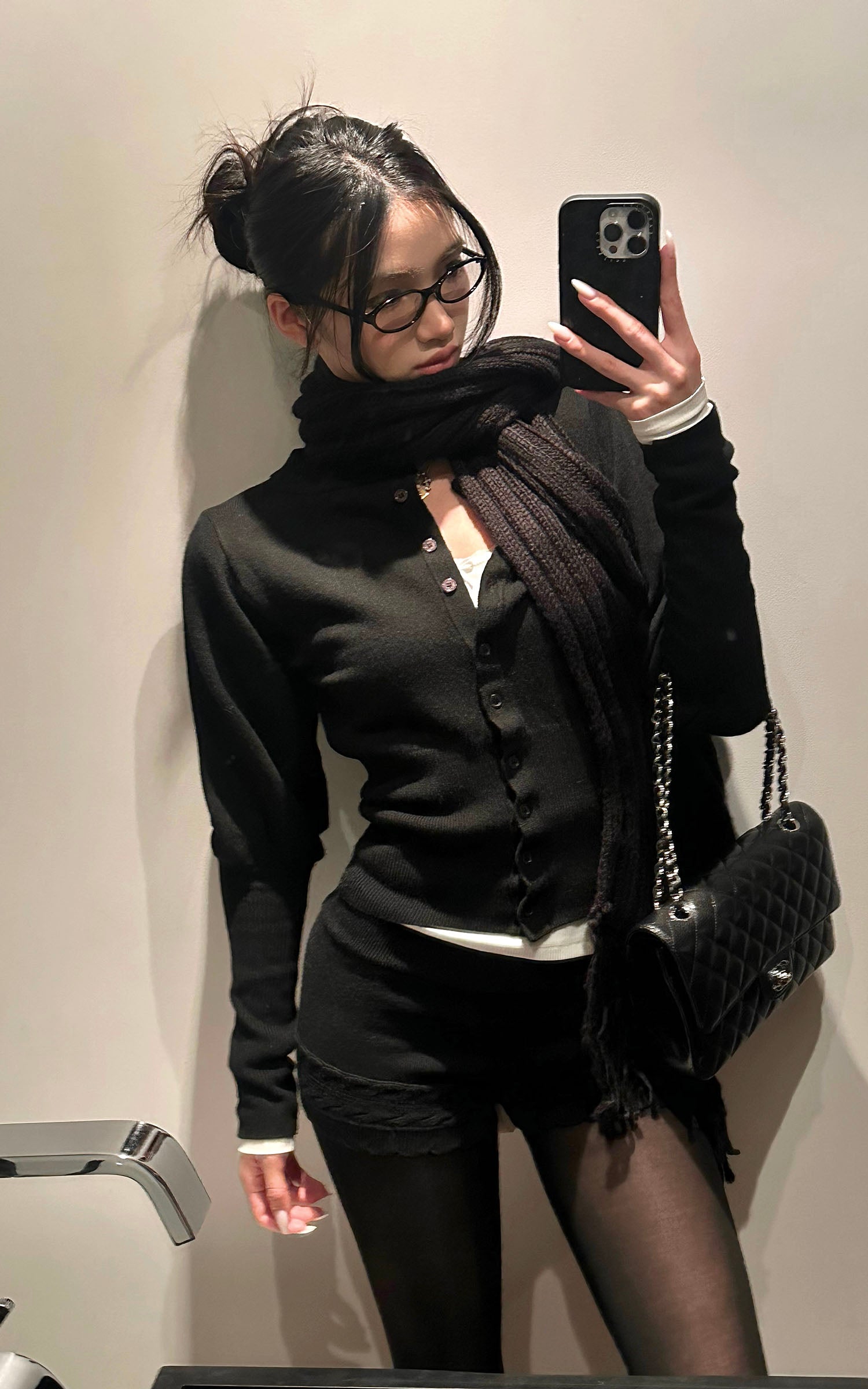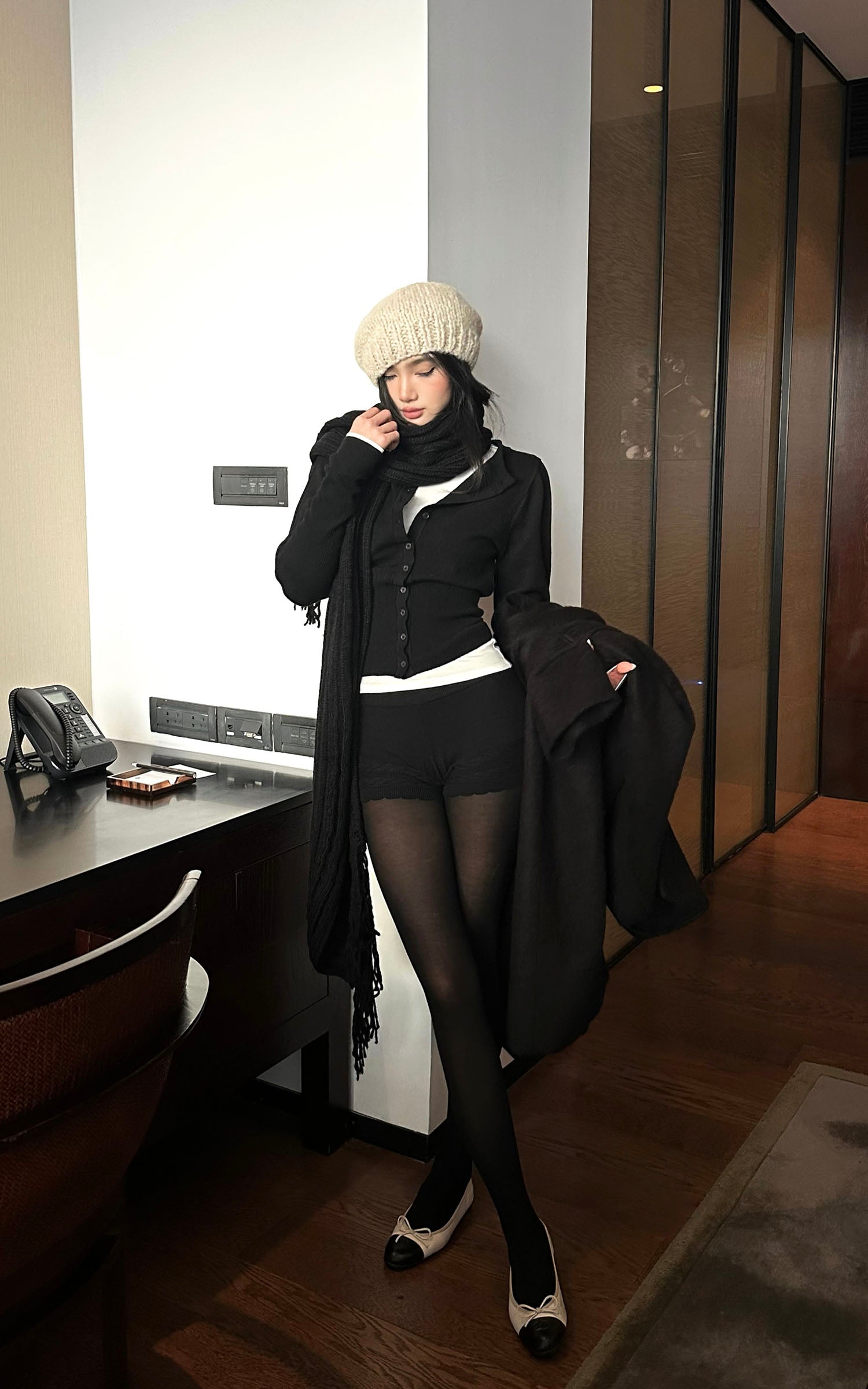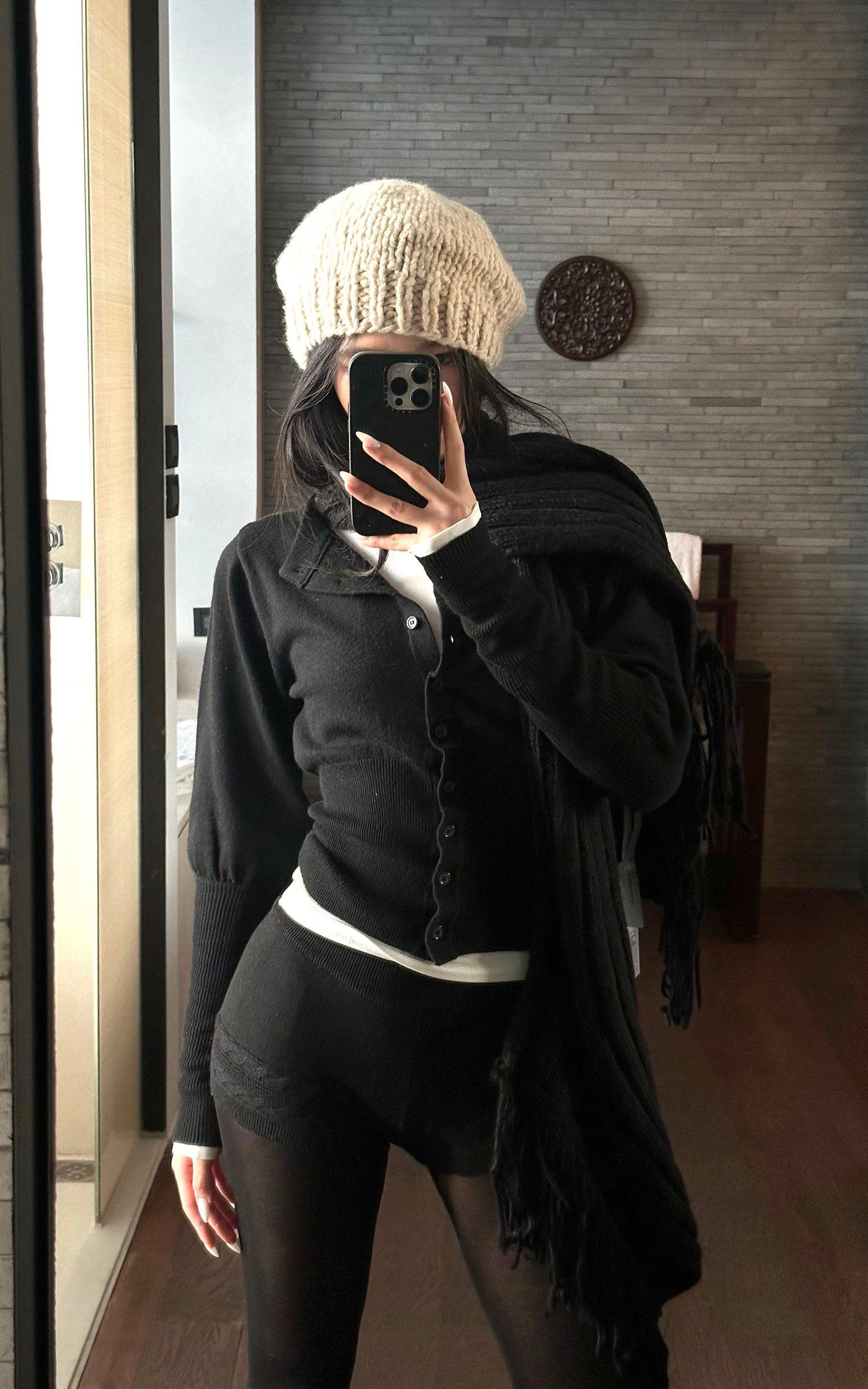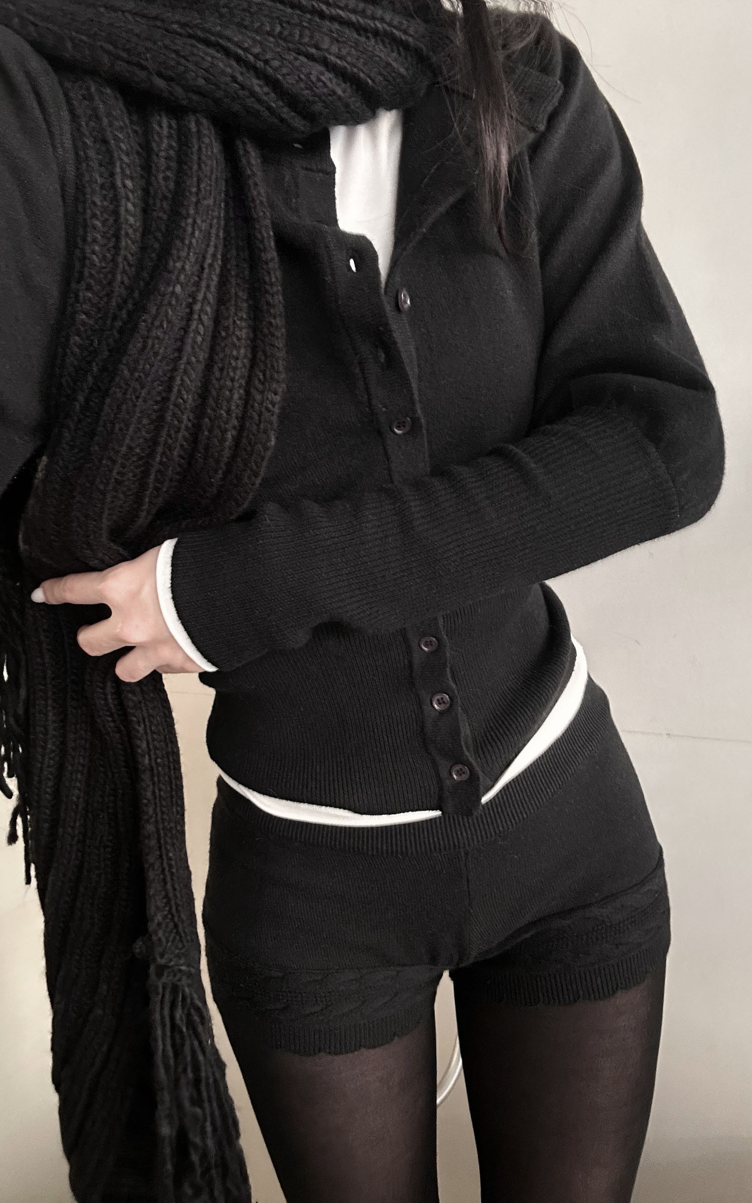 ROVENTE Nordic Jacquard Knit Cardigan Shorts and Scarf Set