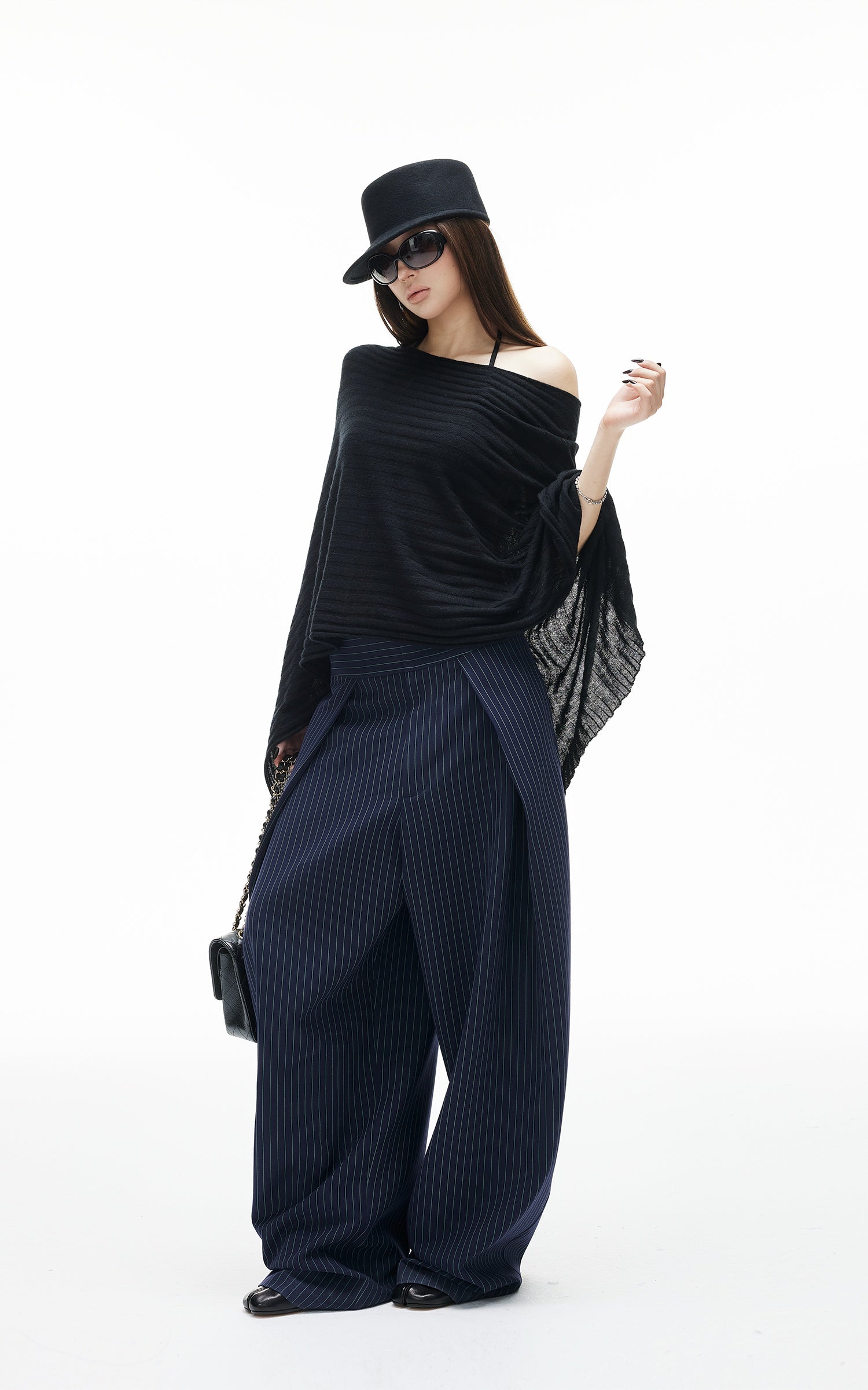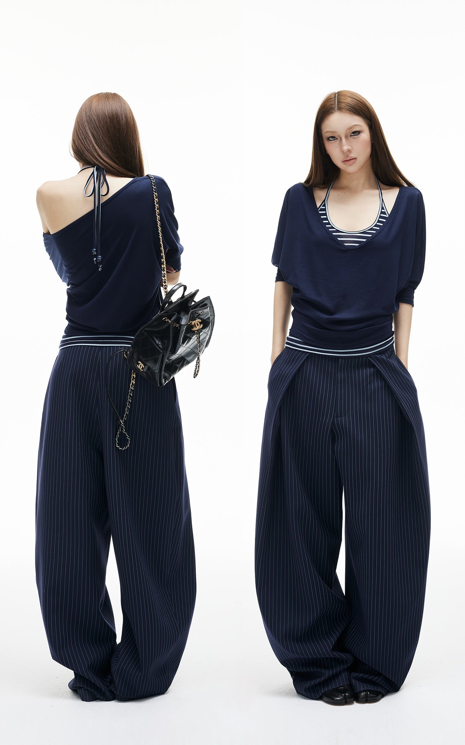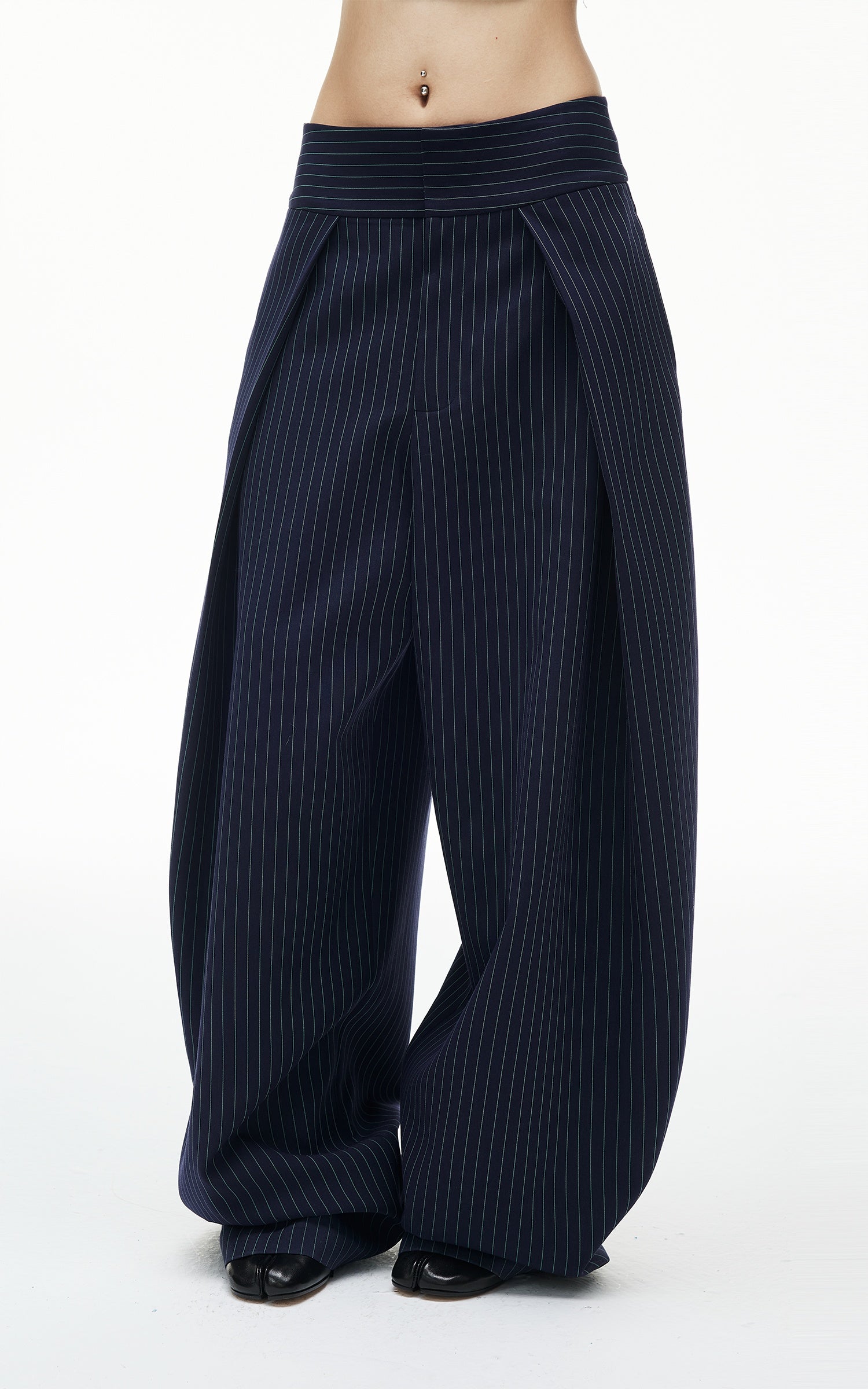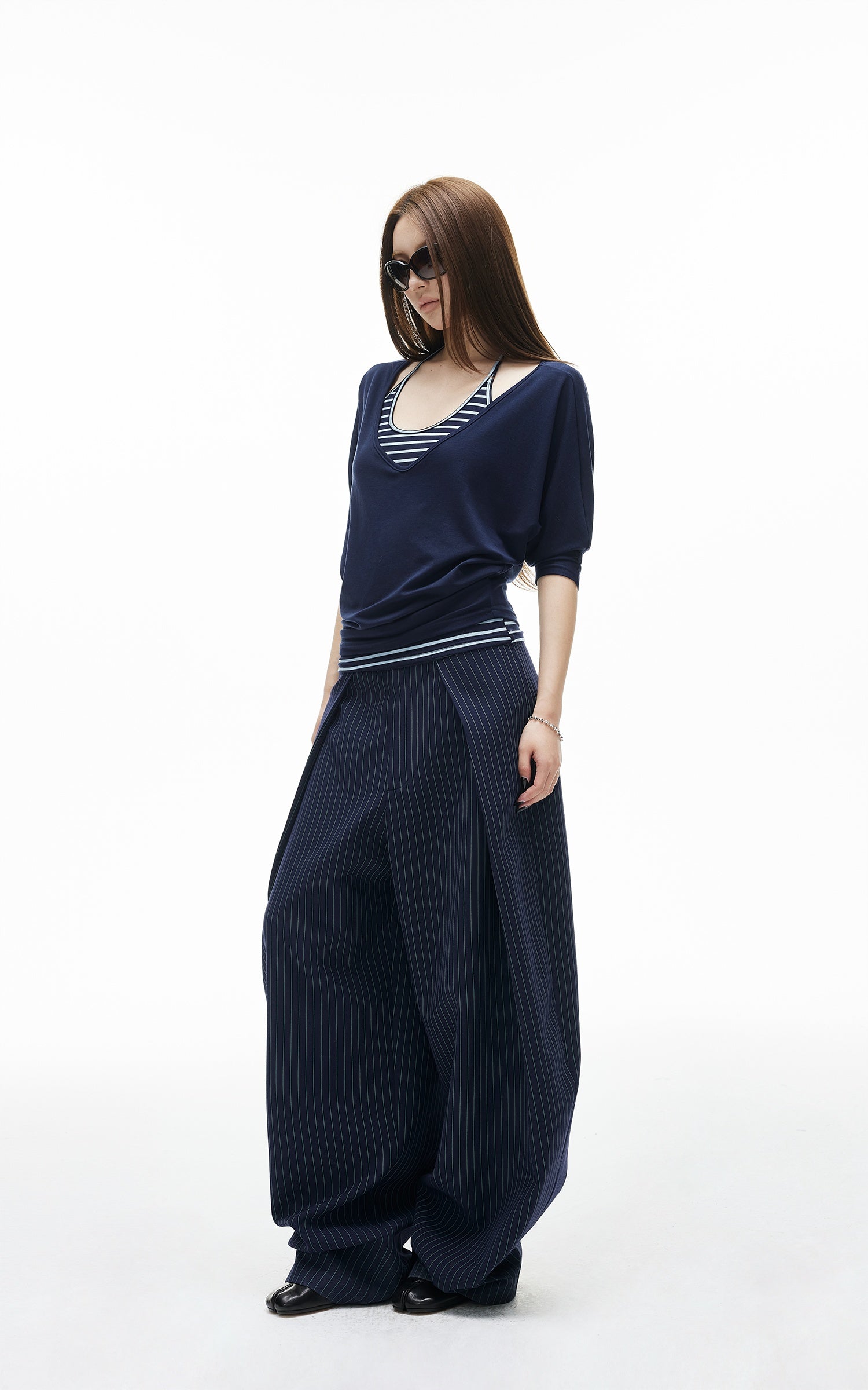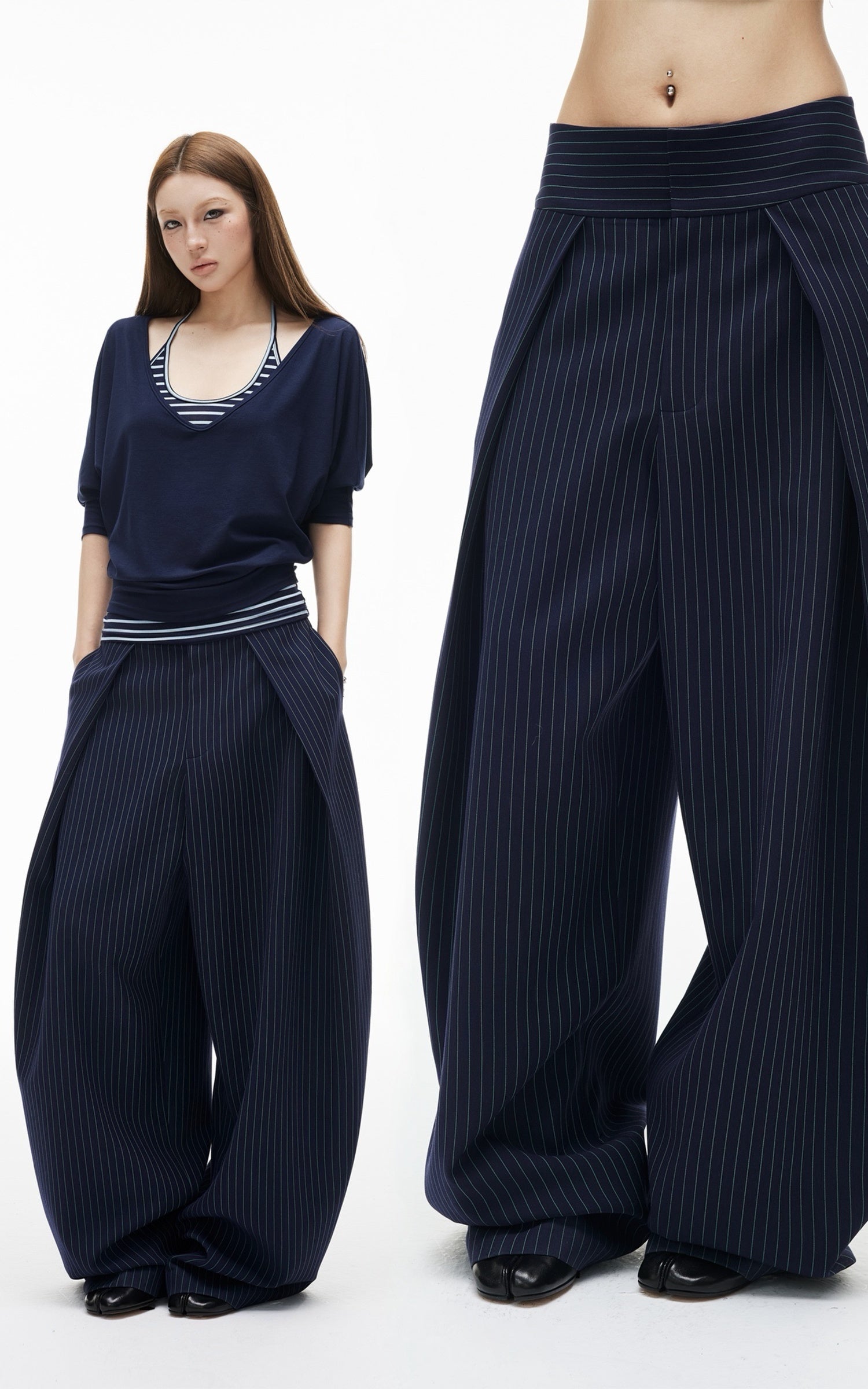 ROVENTE Pinstripe Loose Drape Wide-Leg Pants