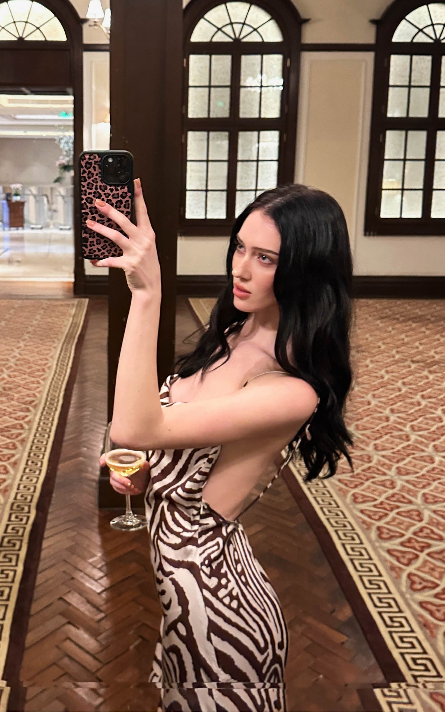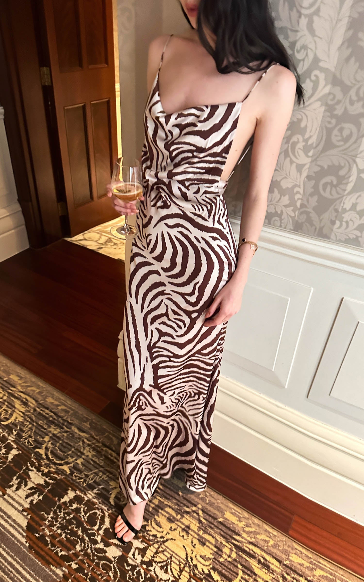 0122stepll Zebra Satin Backless Maxi Dress