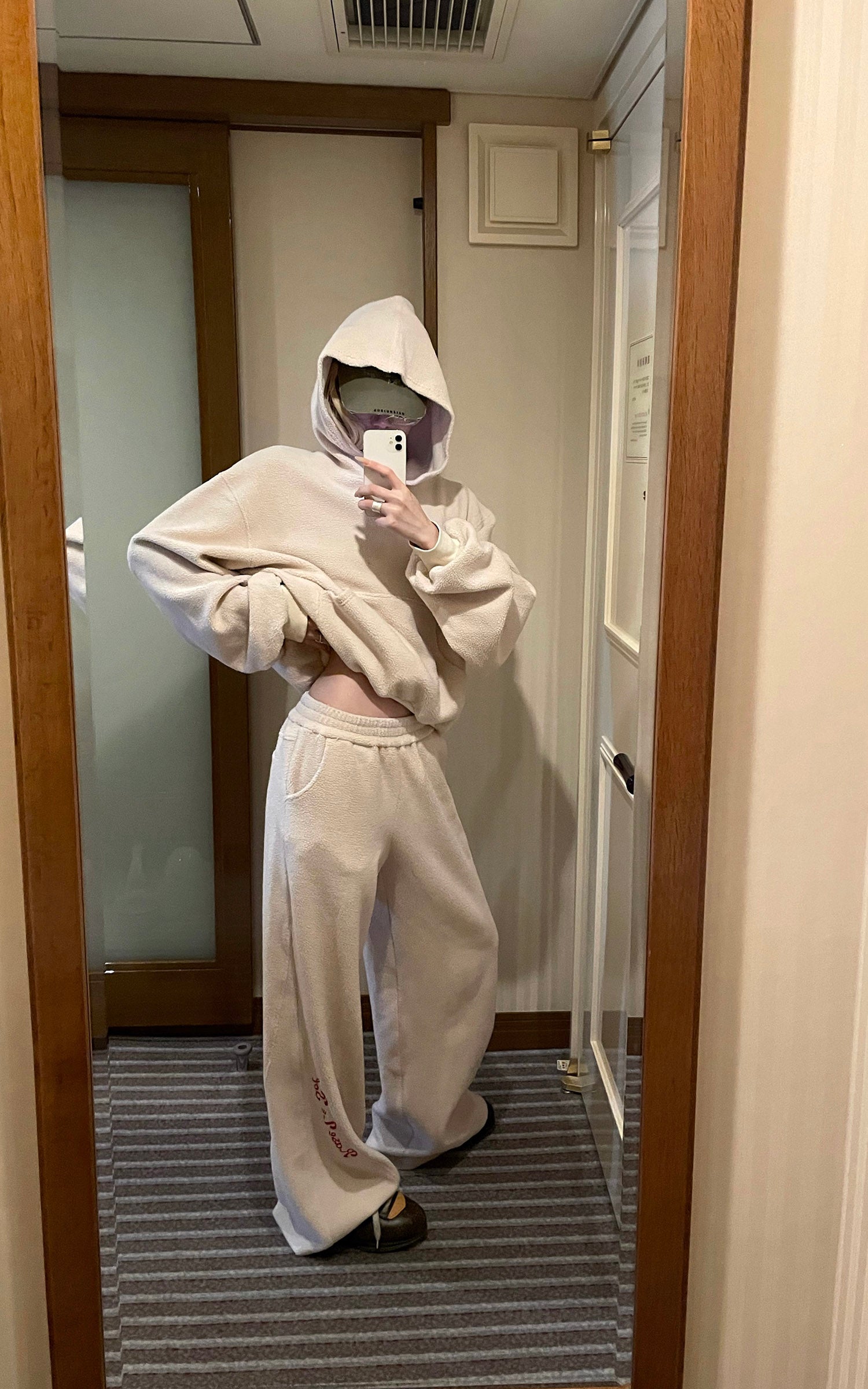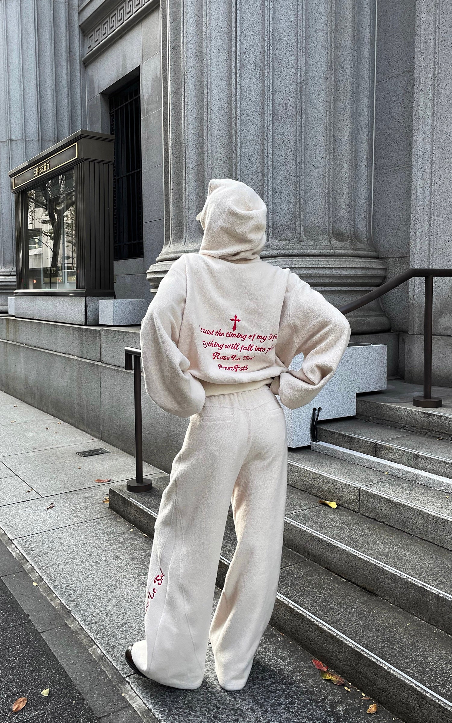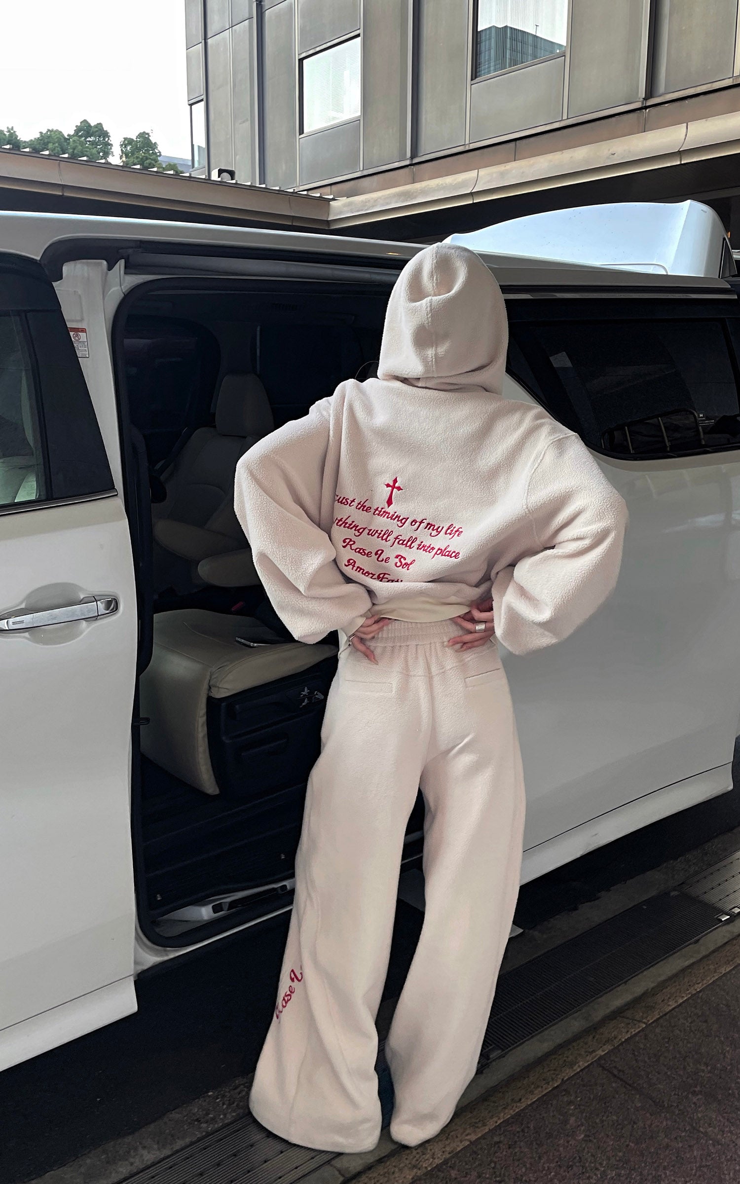 Rase Le Sol Teddy Fleece Embroidered Hoodie and Relaxed Pants Set
