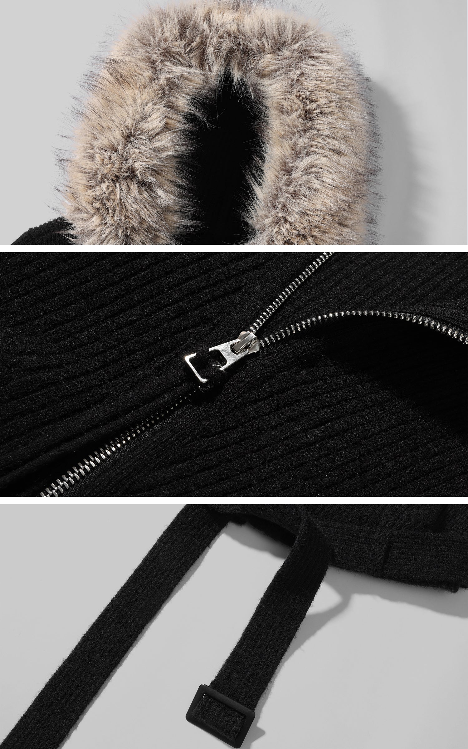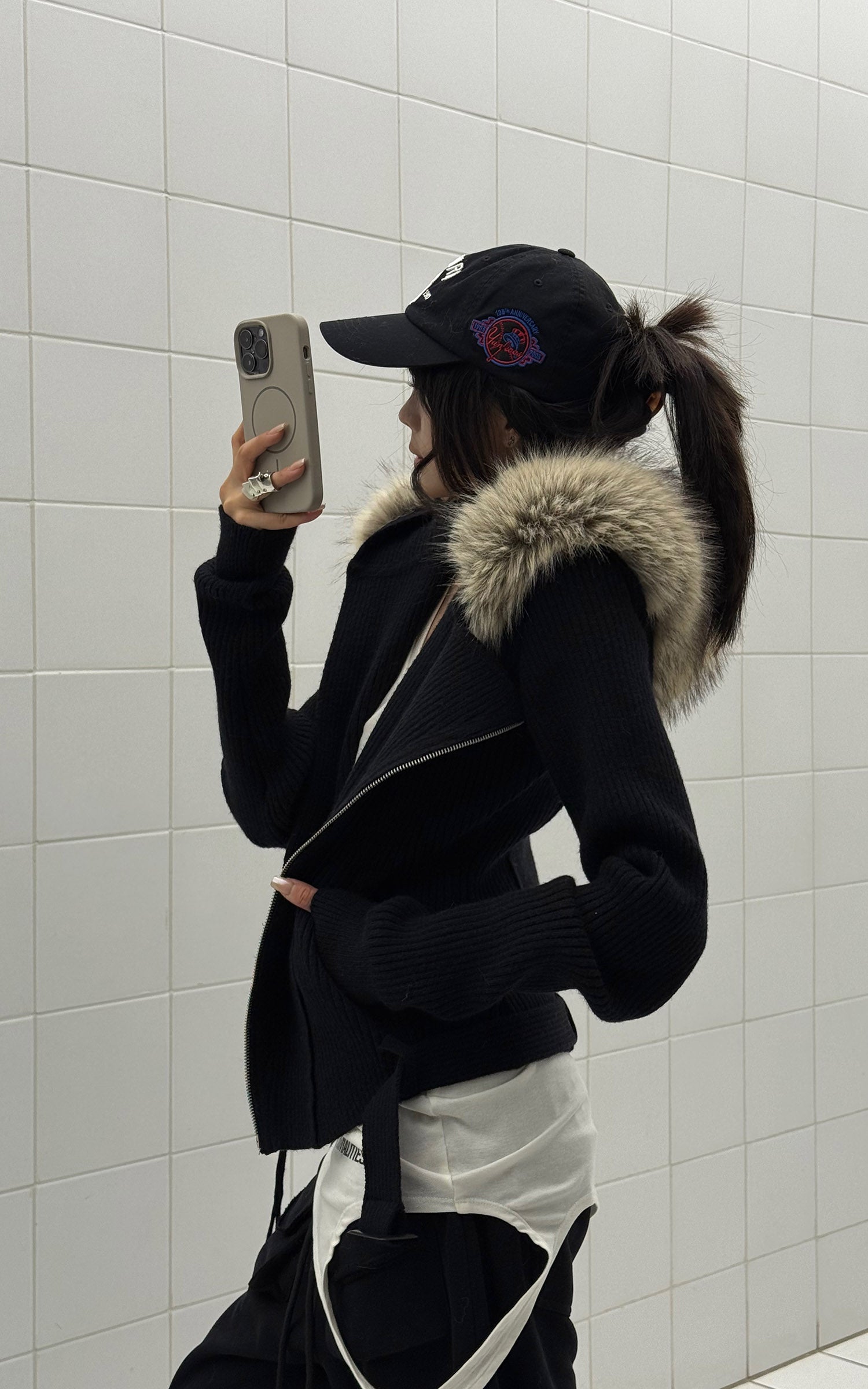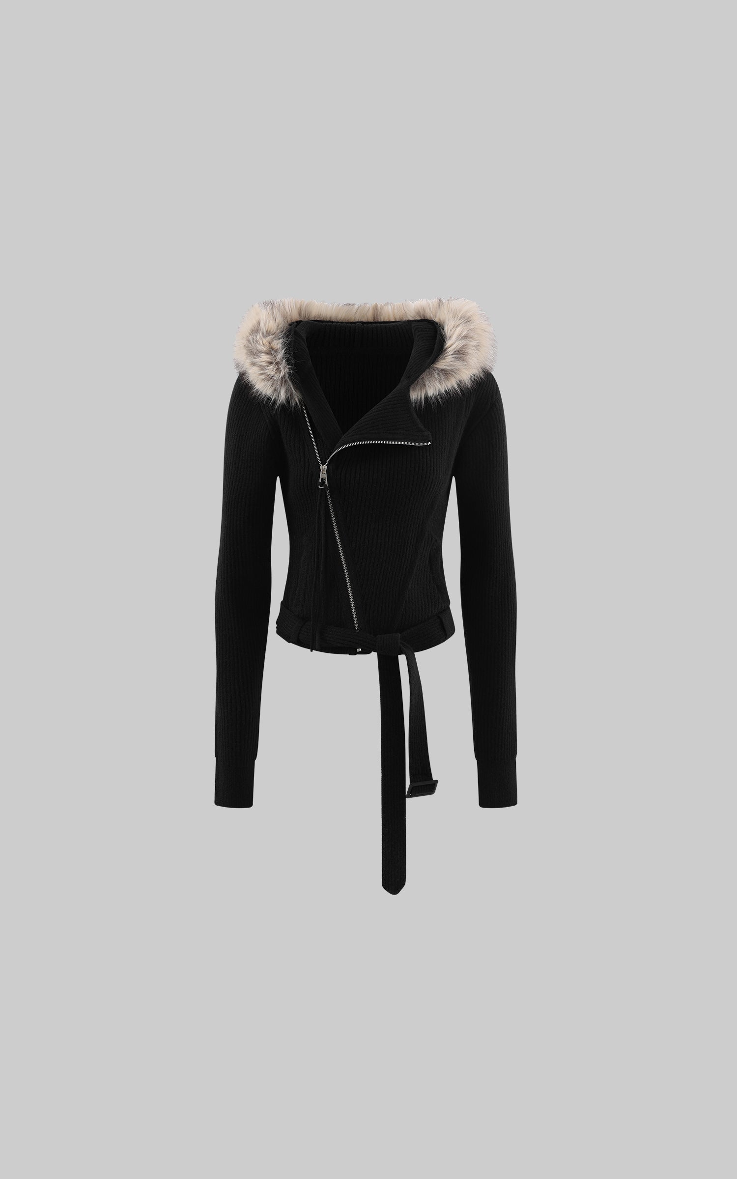 WARDEN EDGE Asymmetric Zip Fur-Trim Knit Jacket