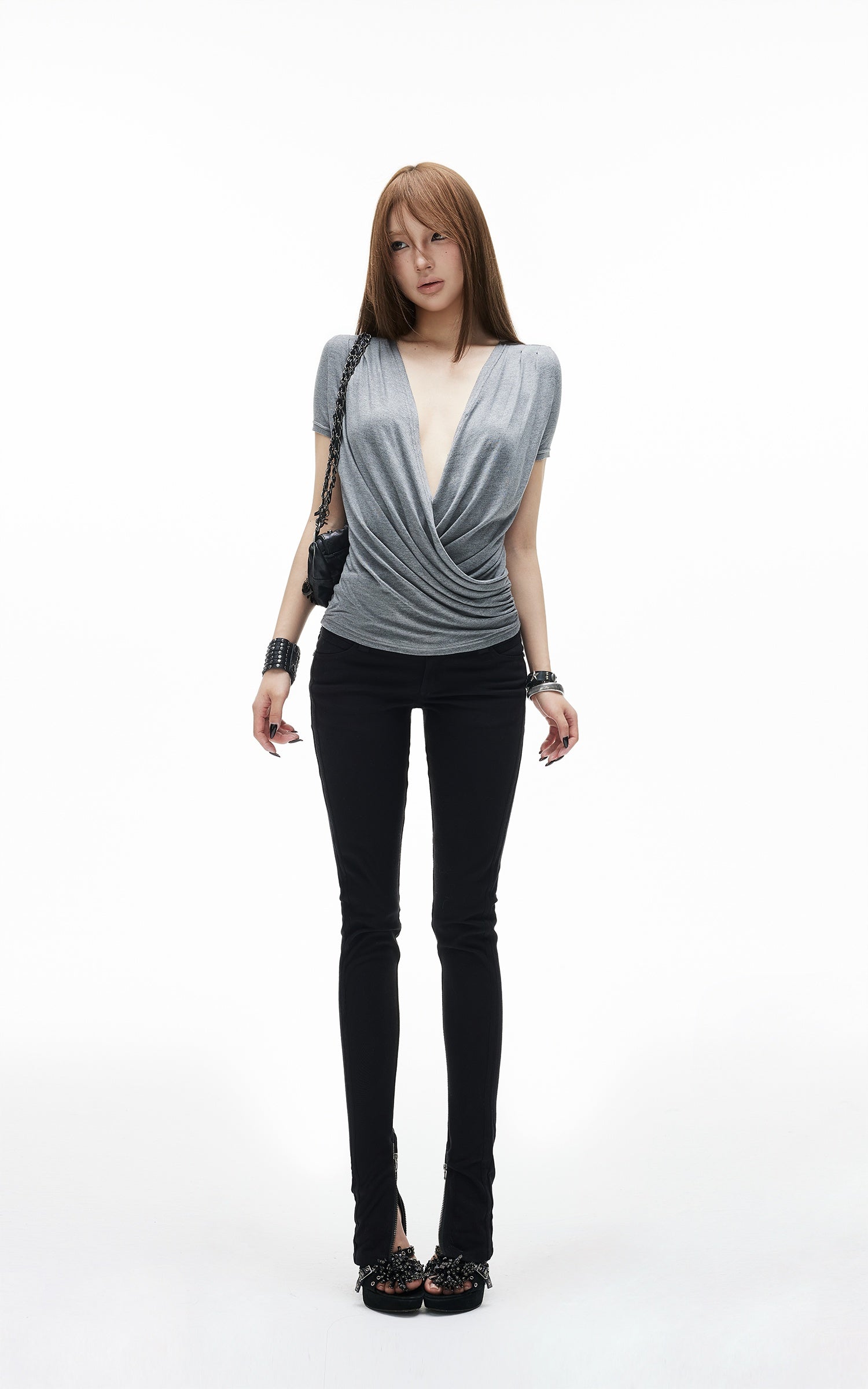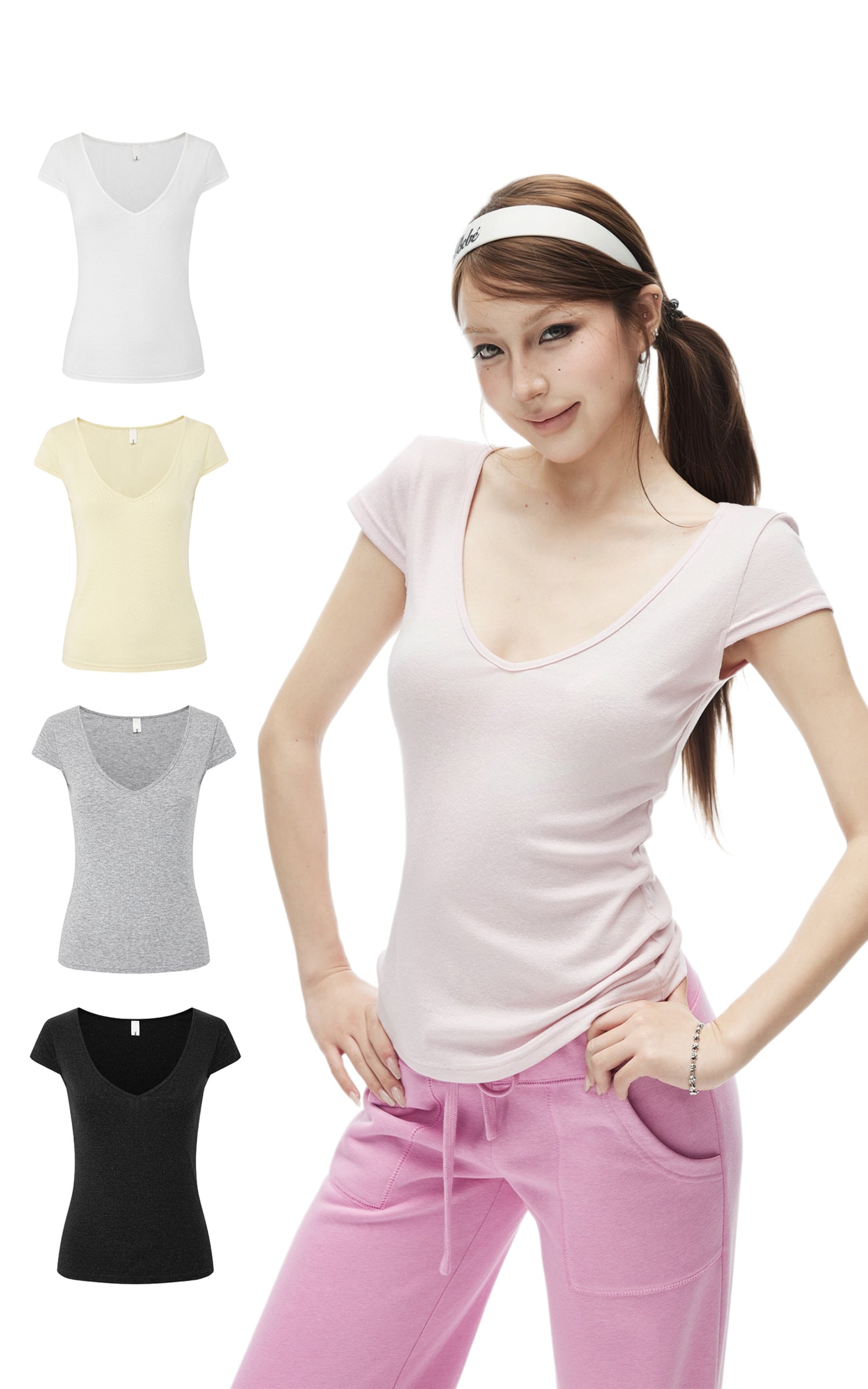 IAMXIAA Soft Fit V-Neck Cap Sleeve Tee