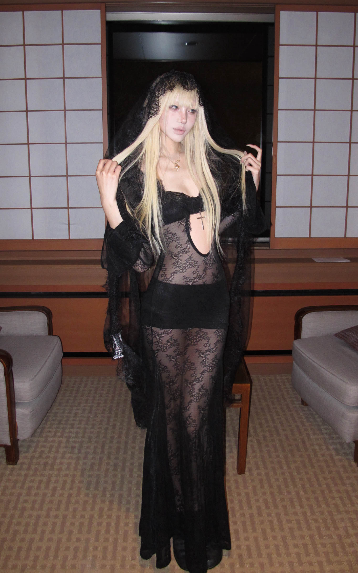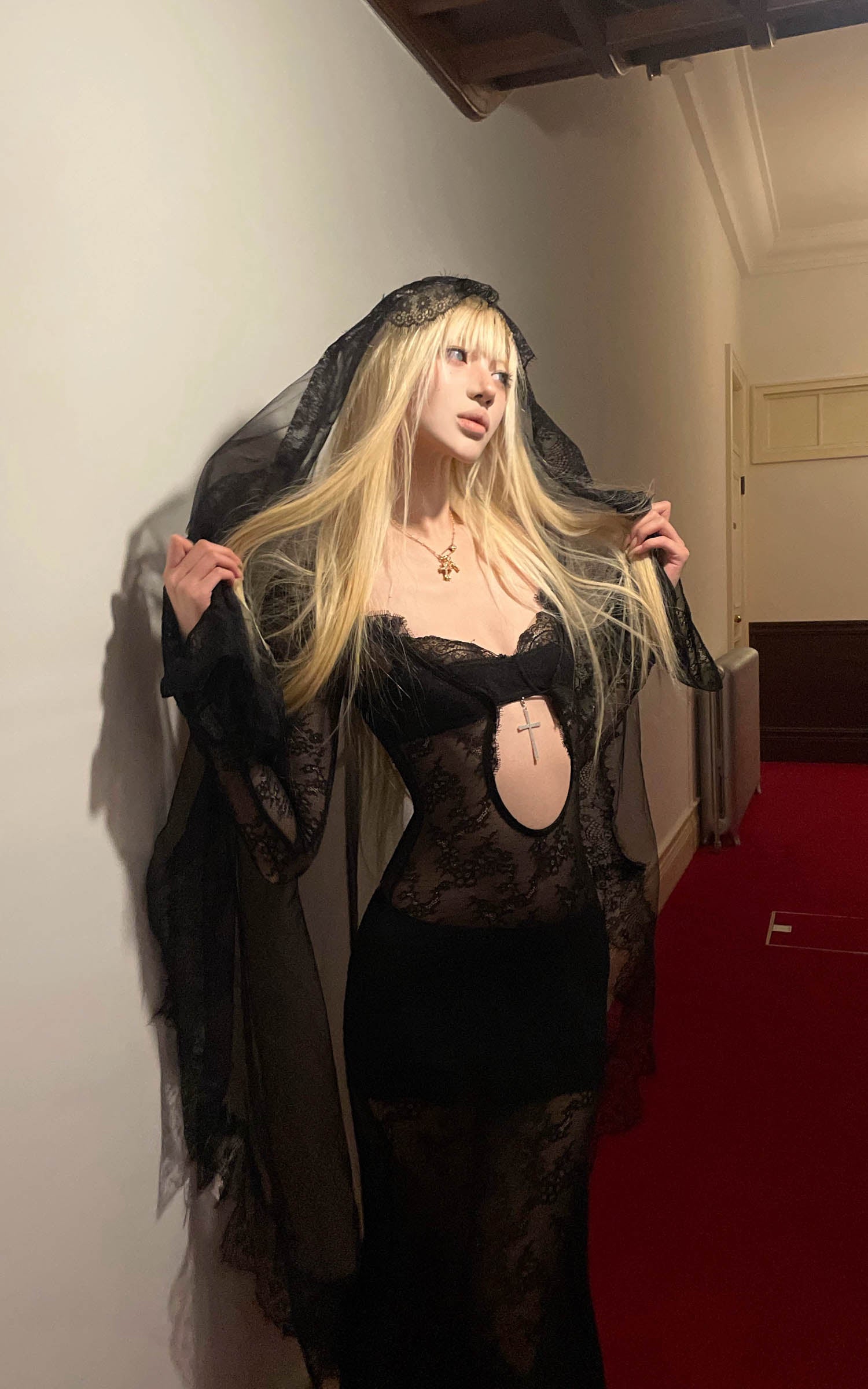 Rase Le Sol Sheer Lace Veil Cut-Out Maxi Dress Set