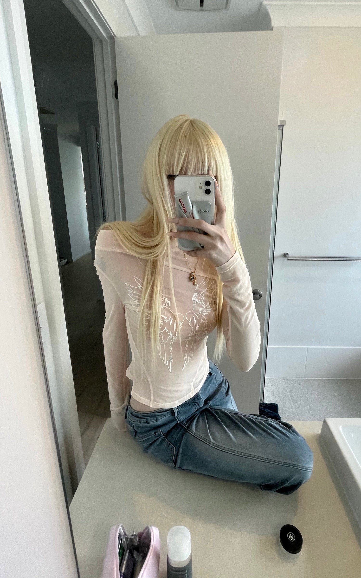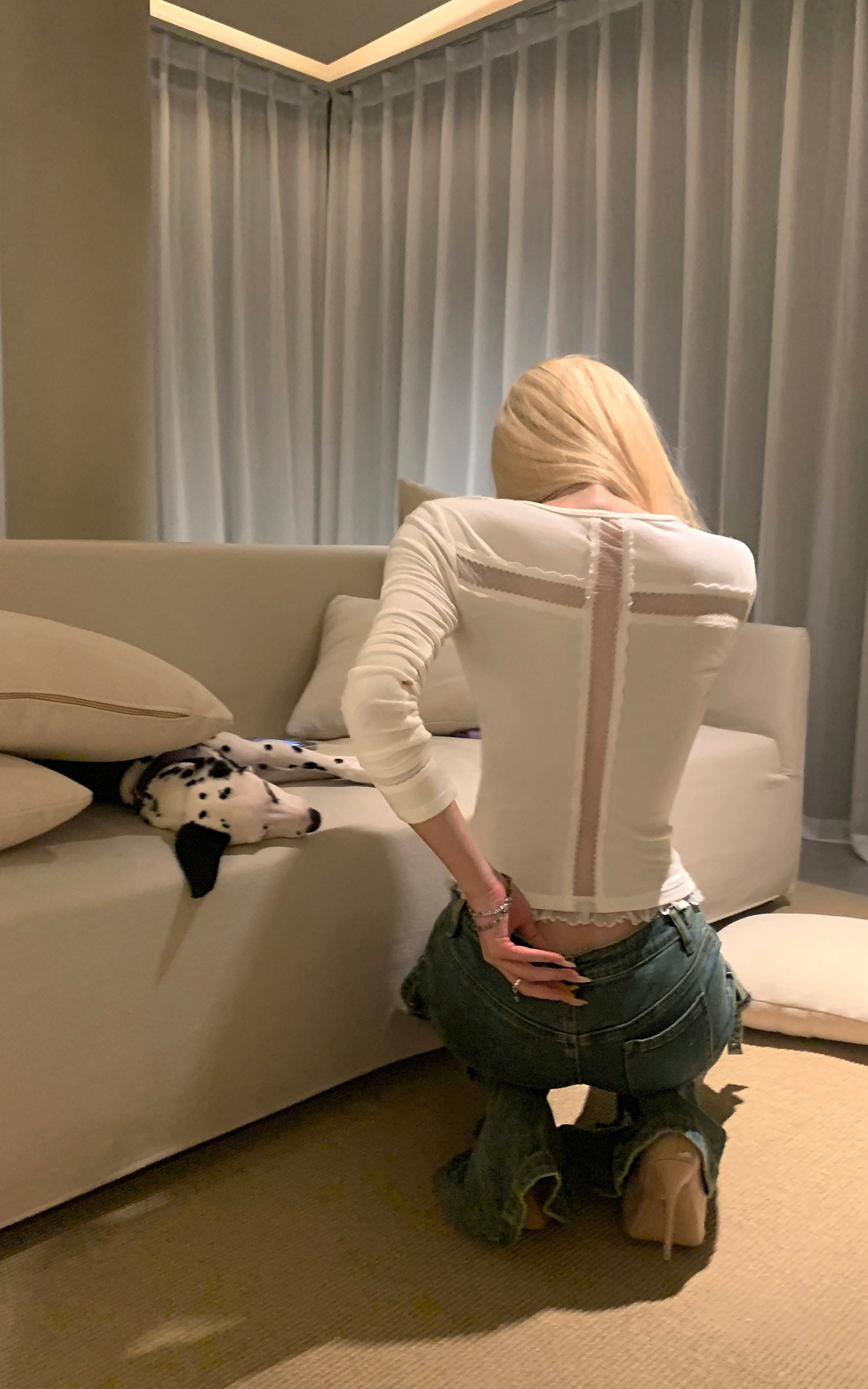 IAMXIAA Sheer Loose-Fit Knit Long Sleeve Top