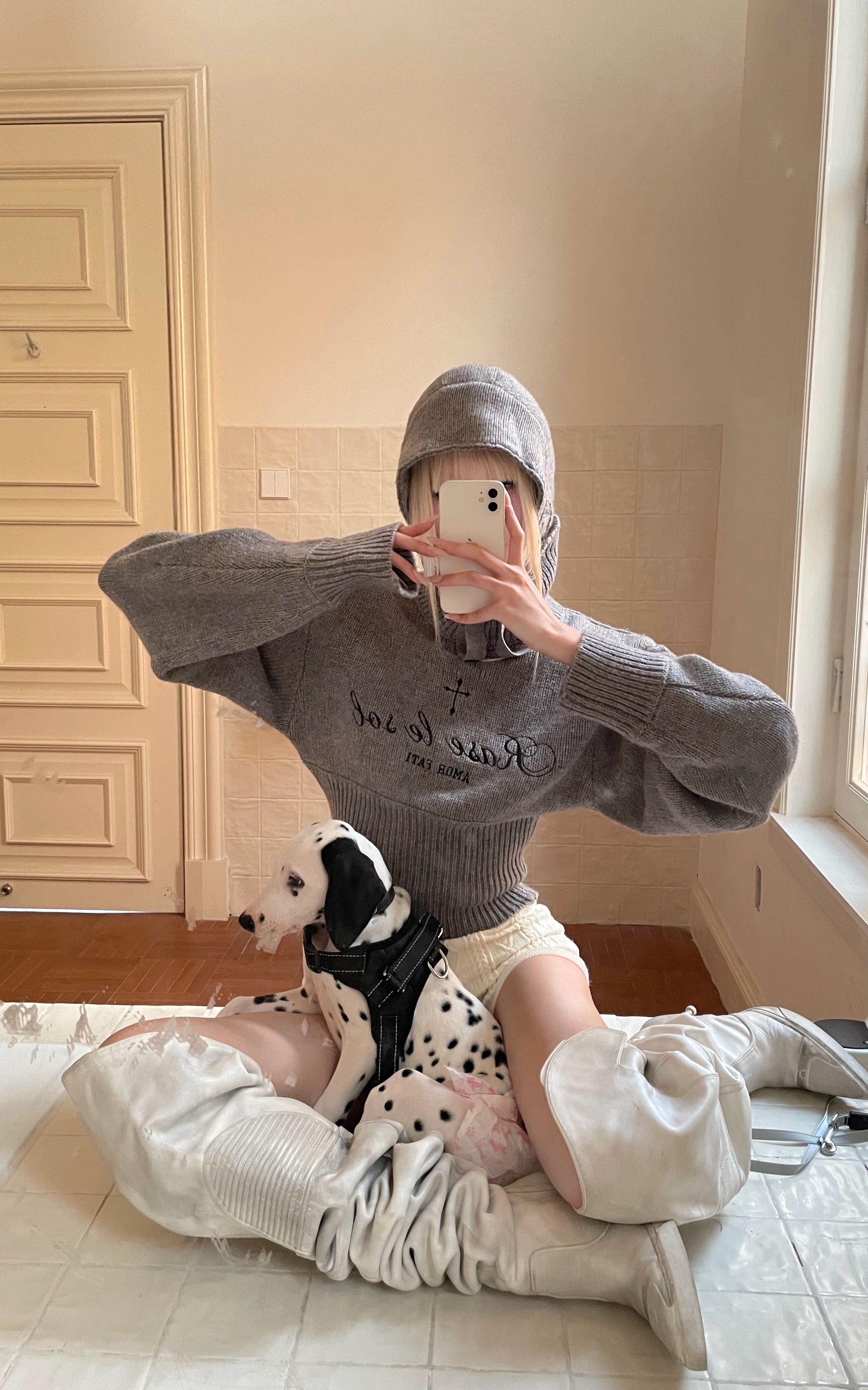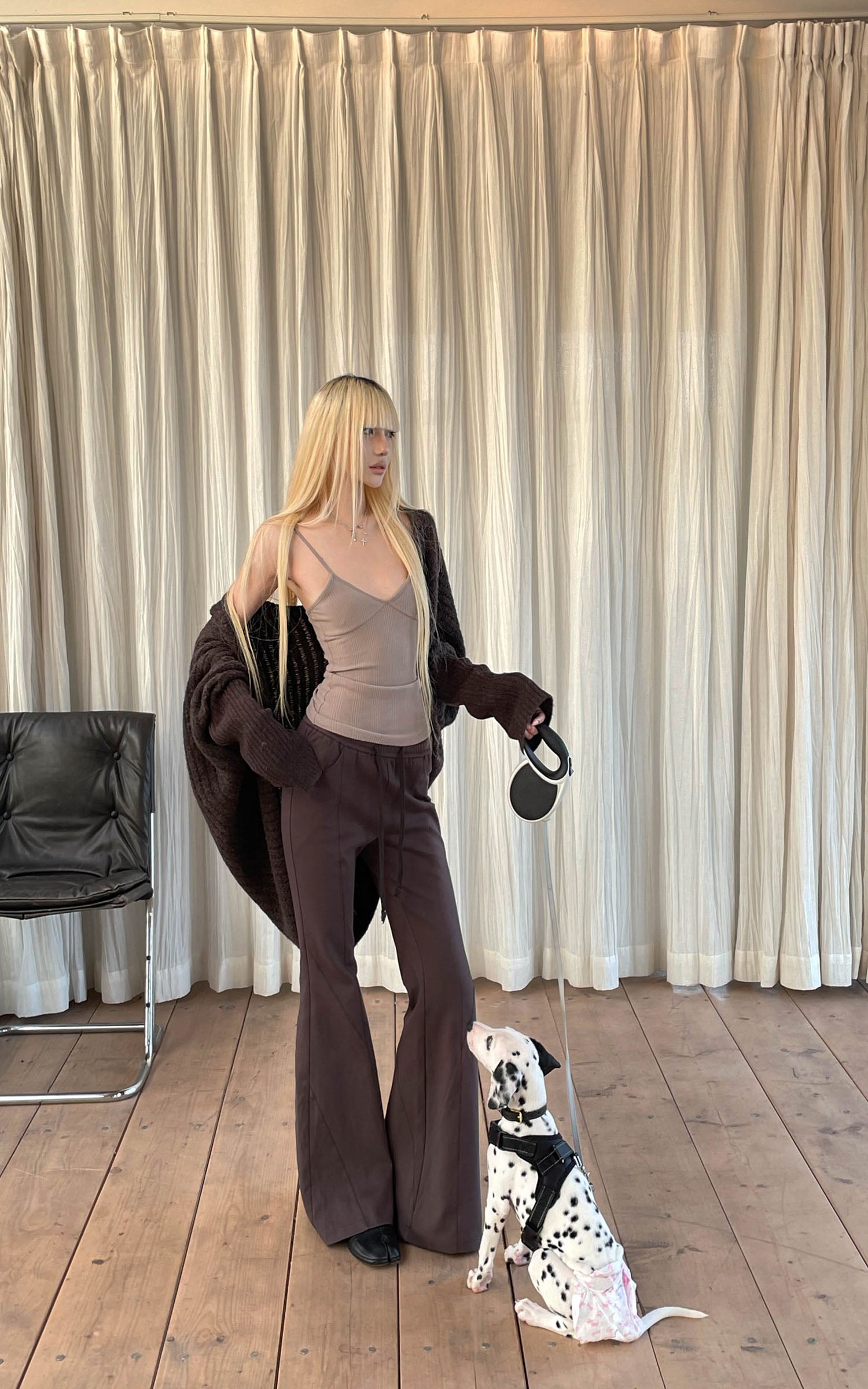 Rase le sol Wool Knit Sweater Wide-Leg Pants Set