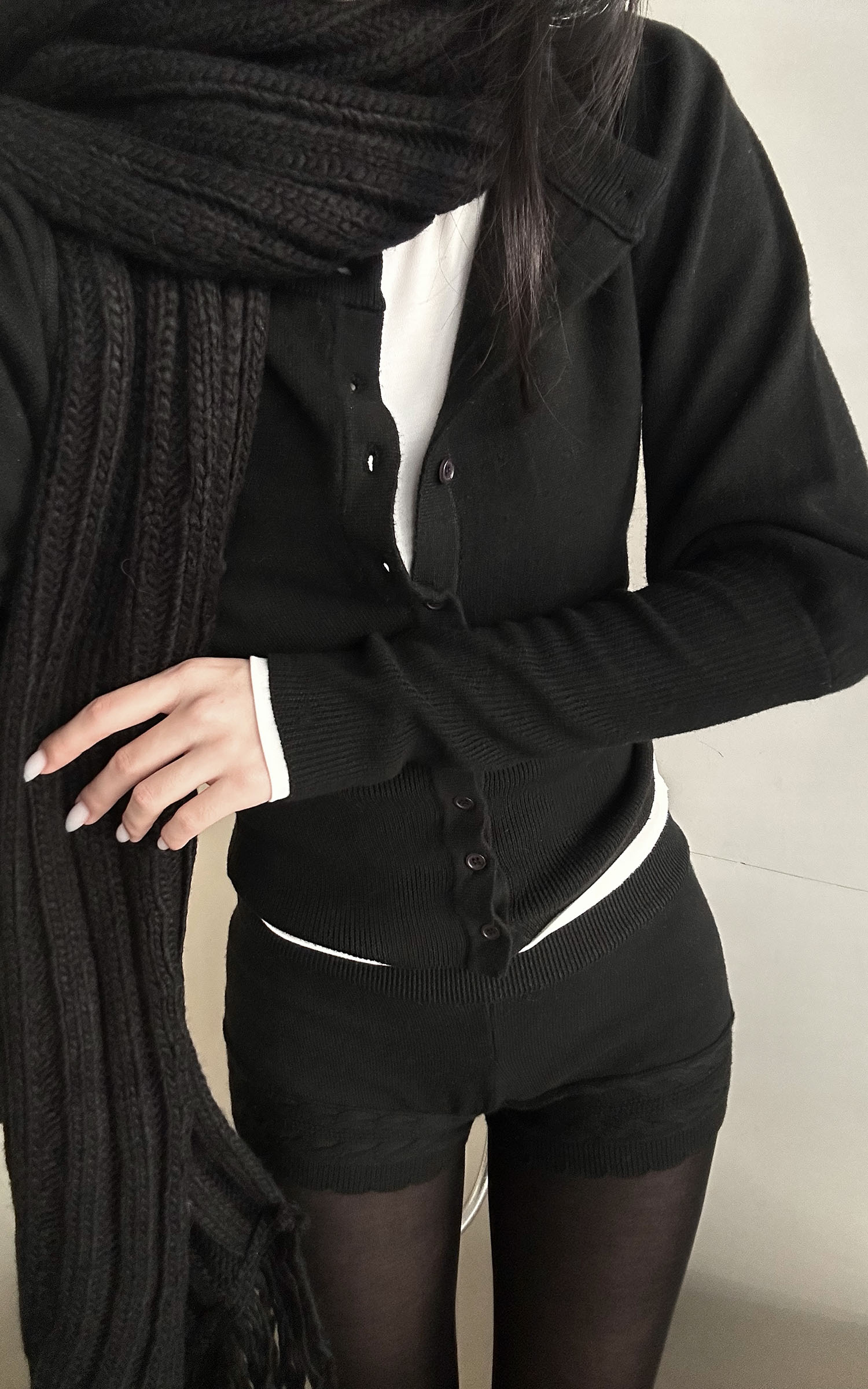 Rase le sol Minimalist Knit Three Piece Set Slim Sweater Shorts and Cami