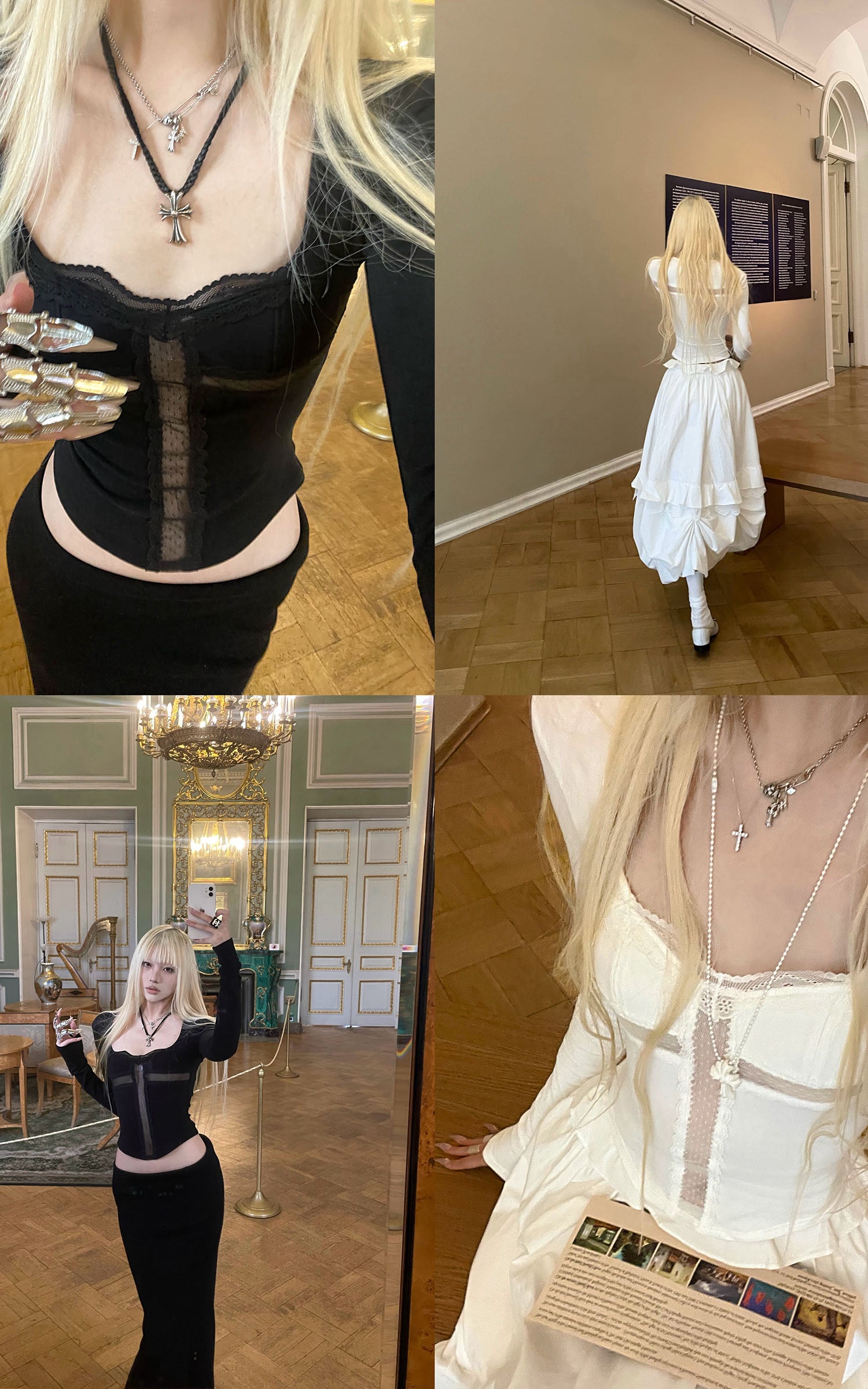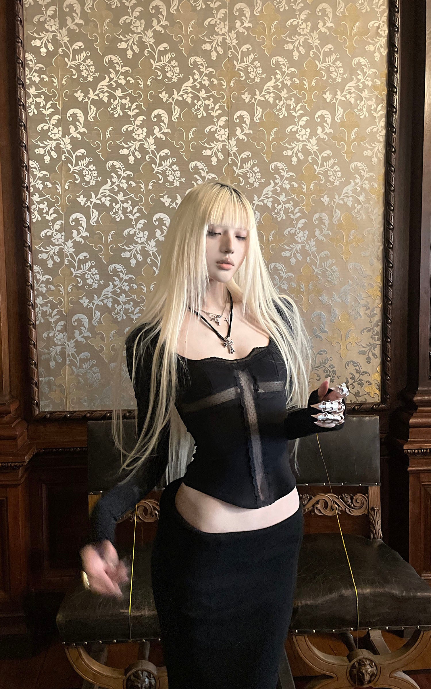 ROVENTE Backless Mesh Panel Long Sleeve Top