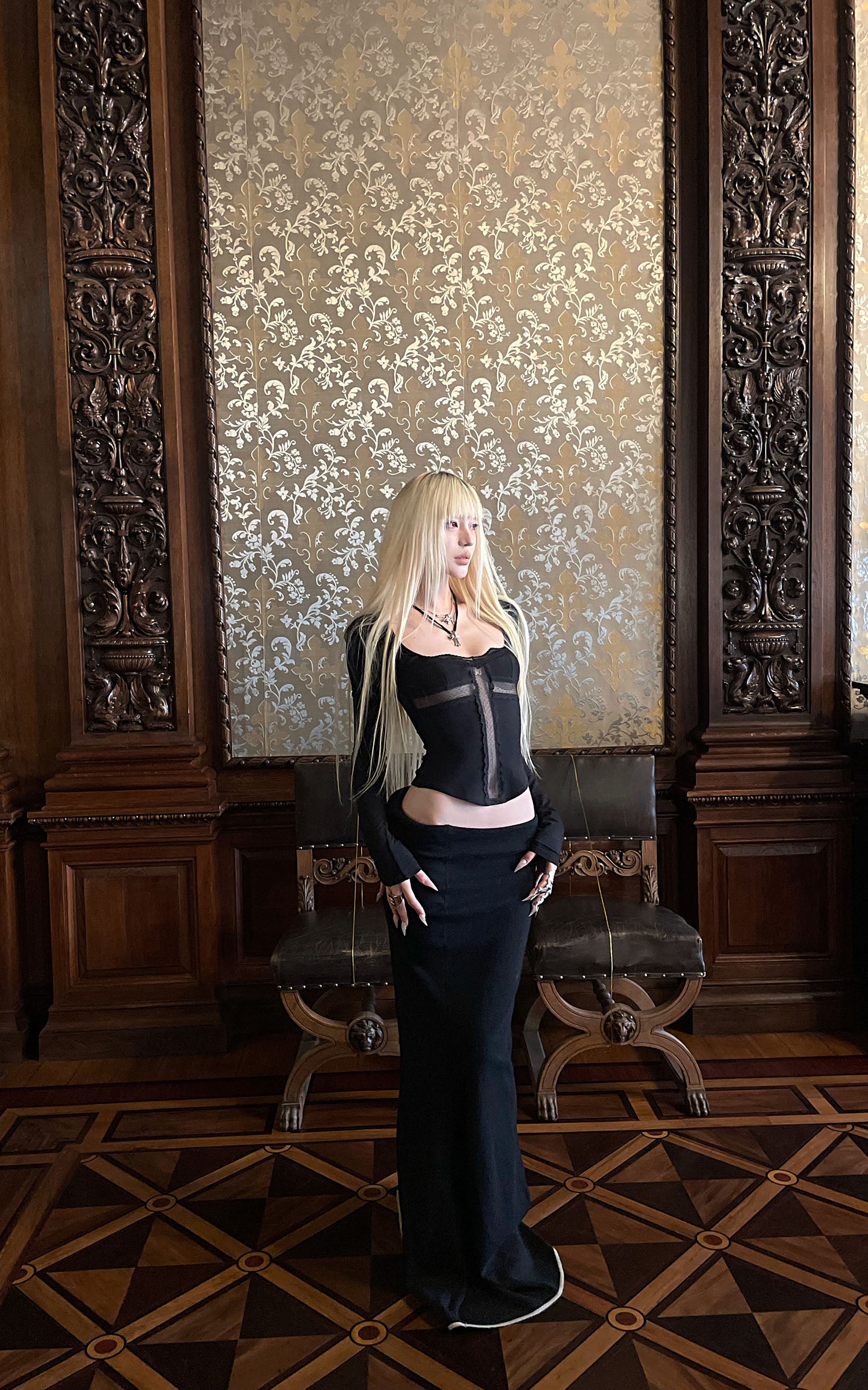 IAMXIAA Knit Maxi Skirt with Drawstring Waist and Back Slit