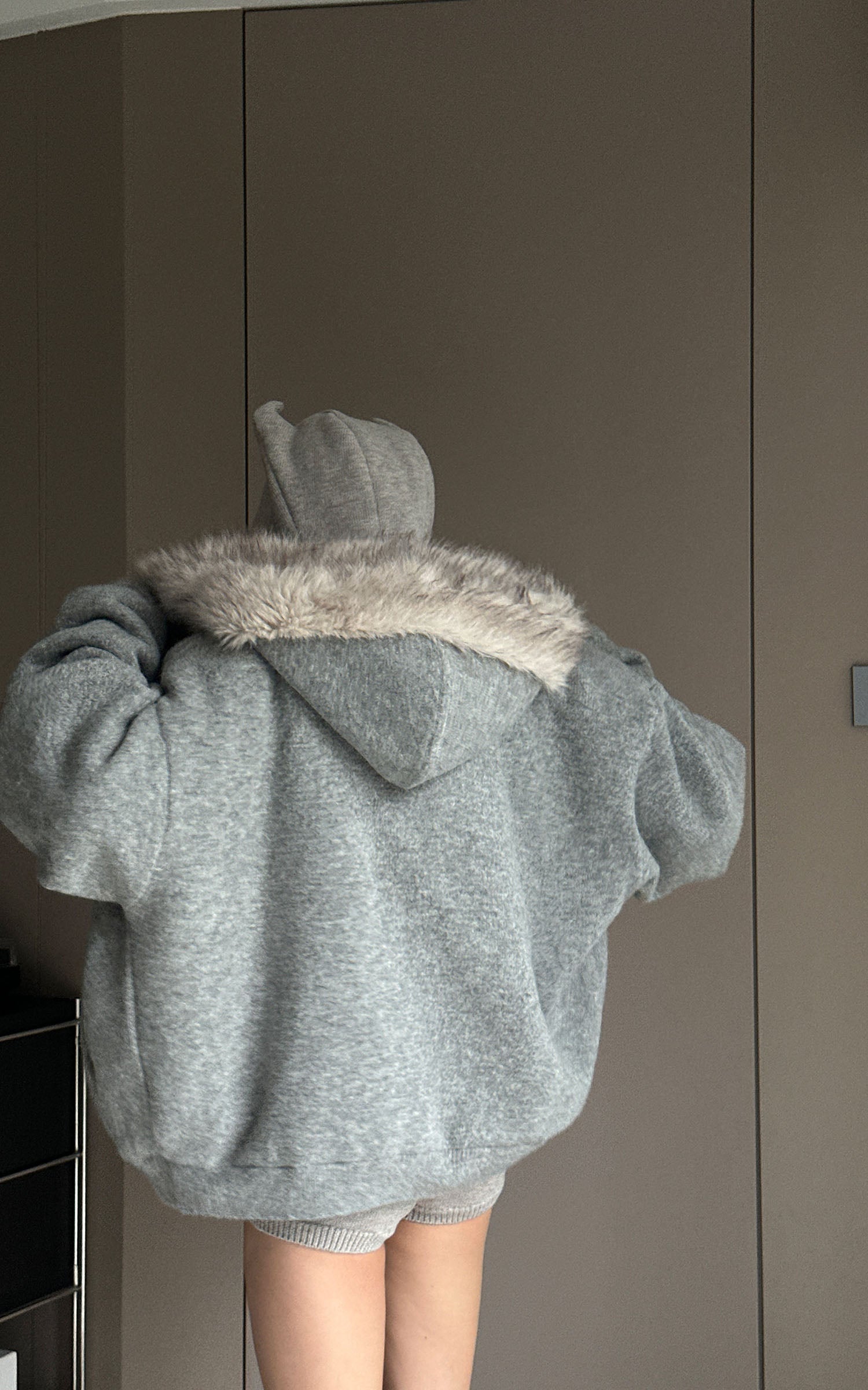 Rase le sol Faux Fur-Trimmed Hoodie Jacket
