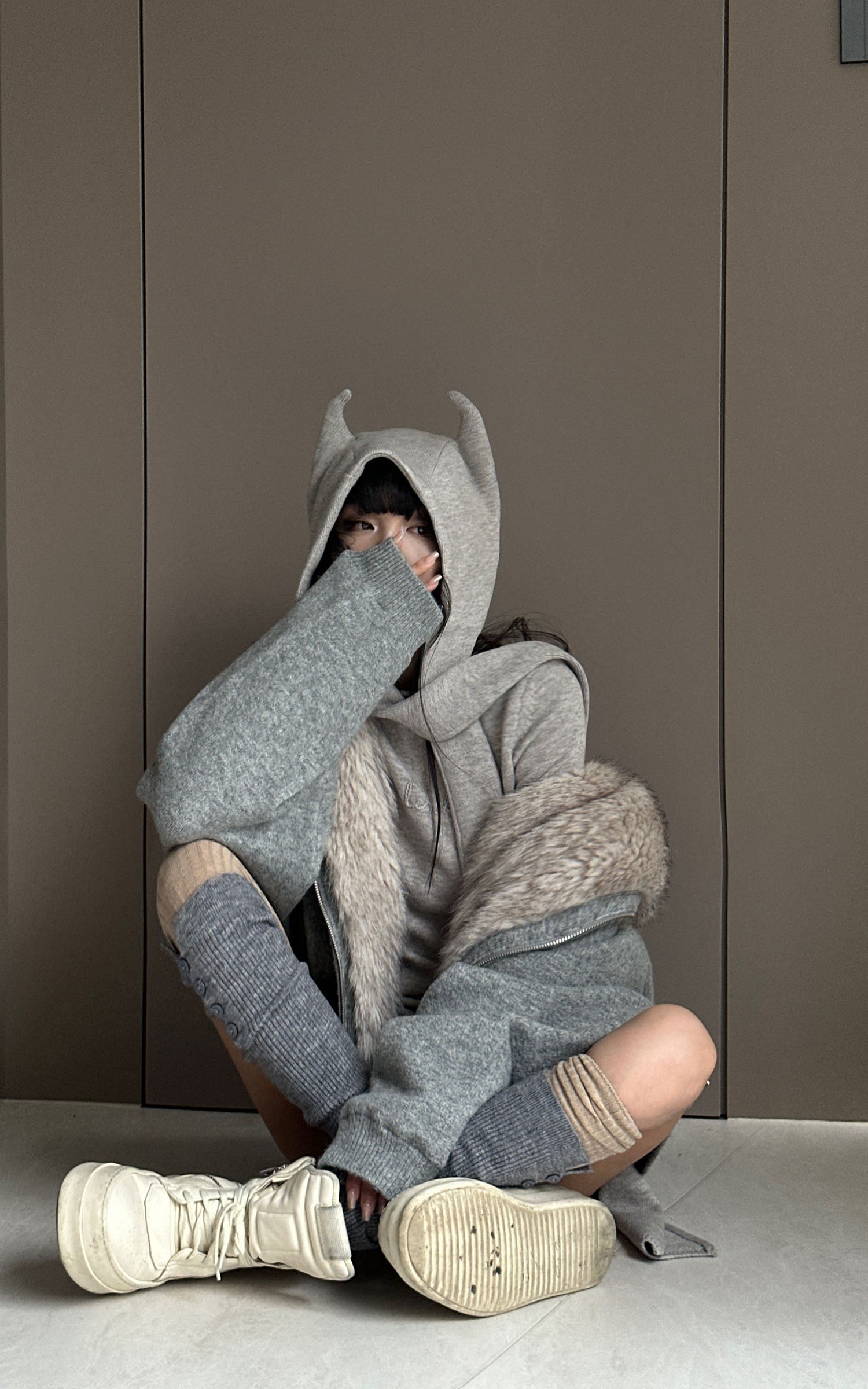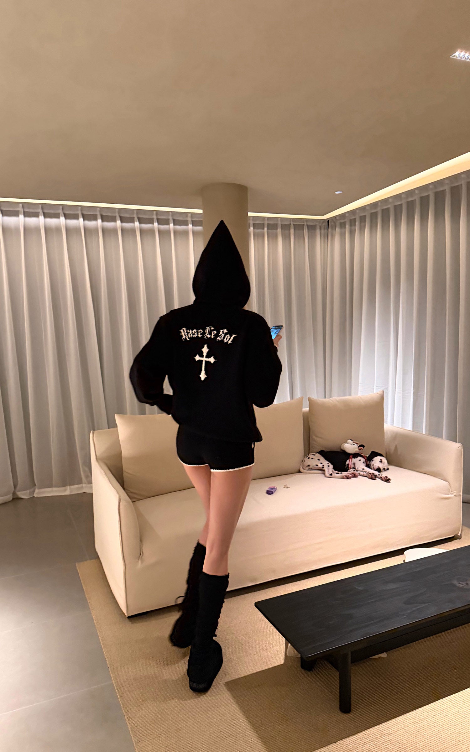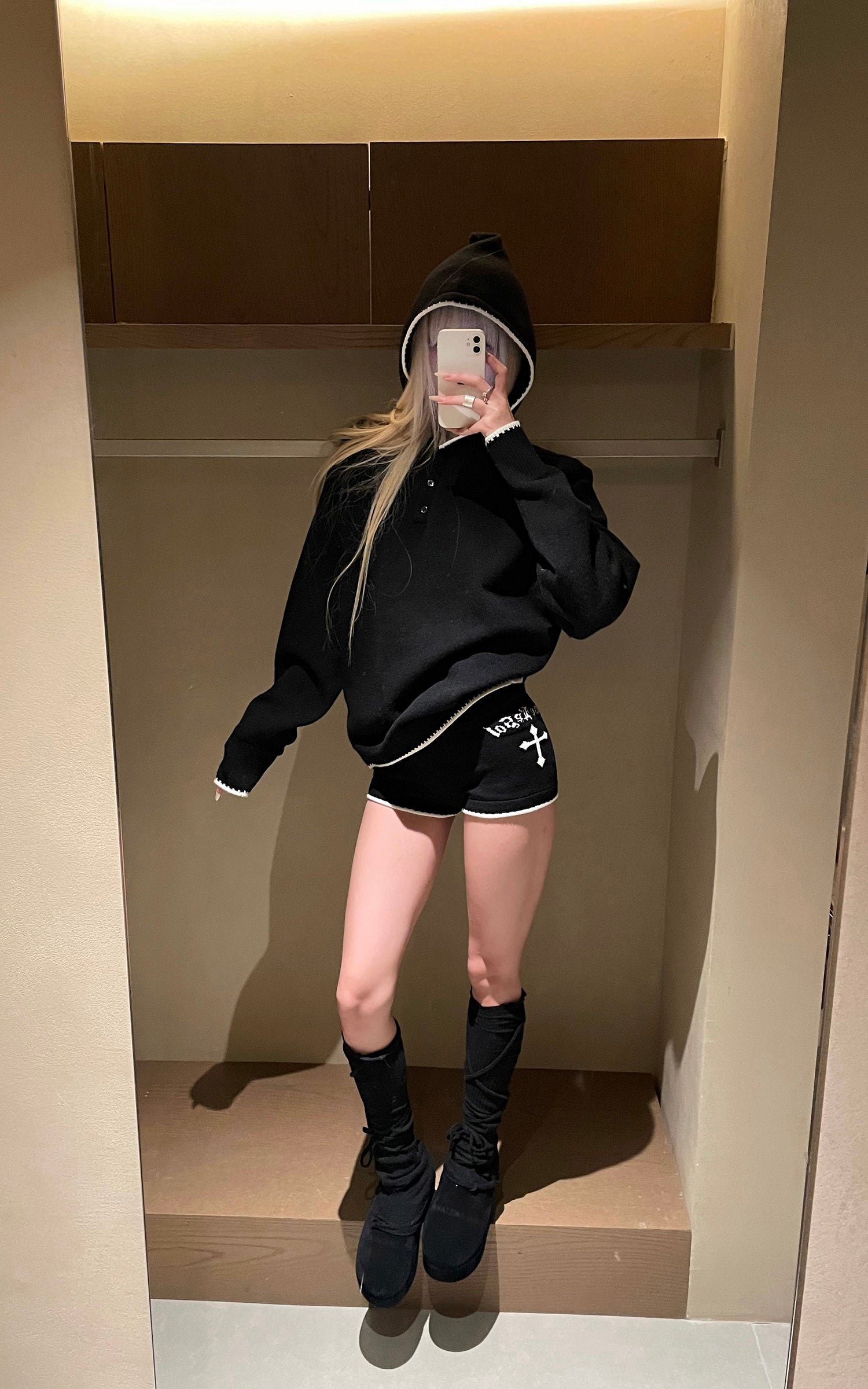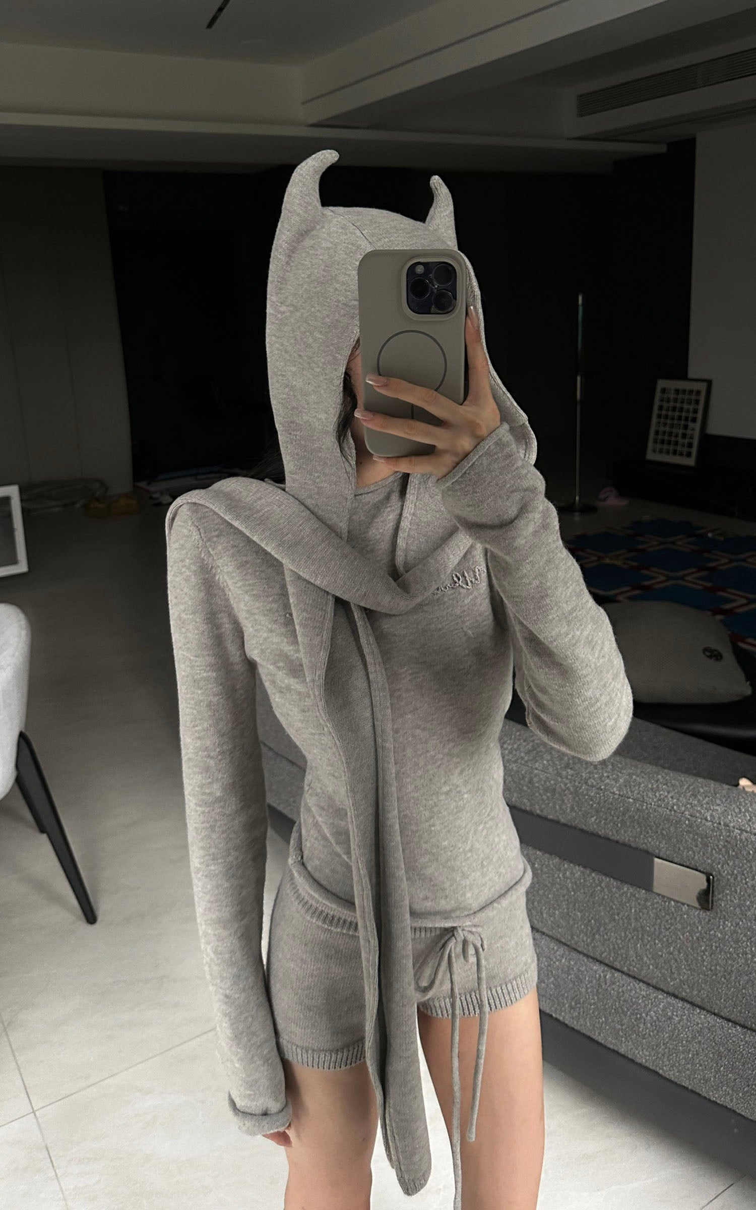 Rase le sol Monastic Knitwear Set with Hoodie Pullover and Shorts