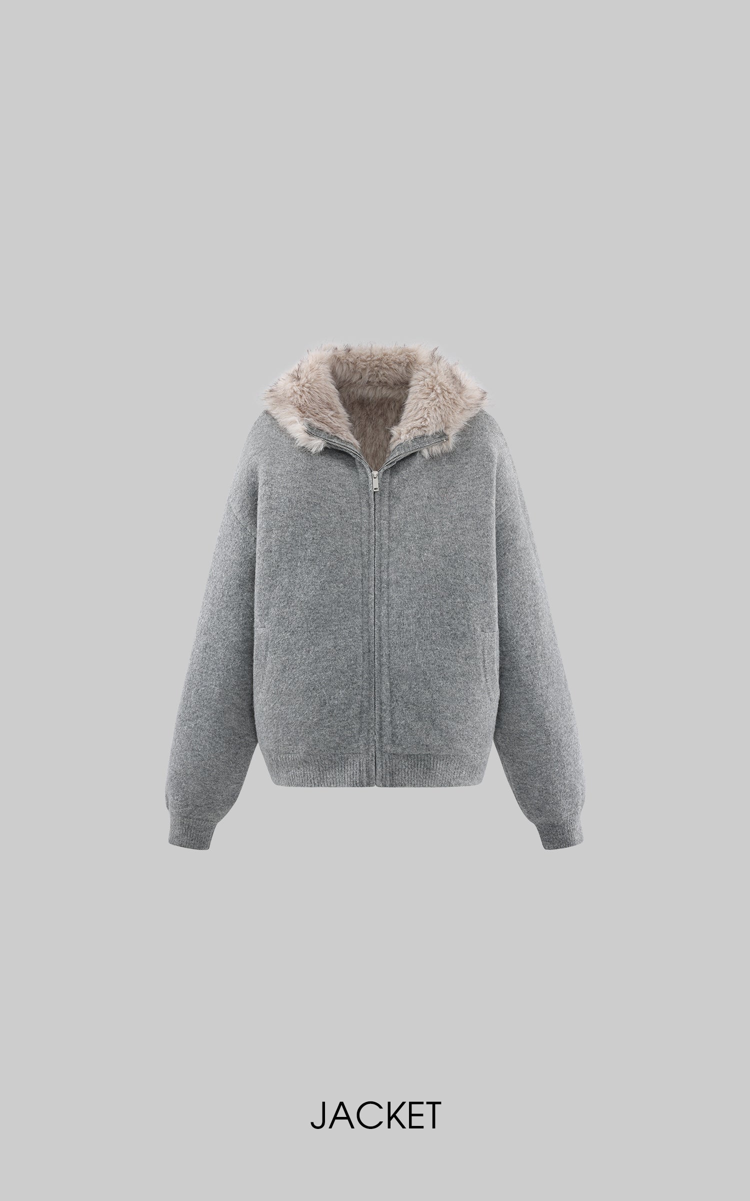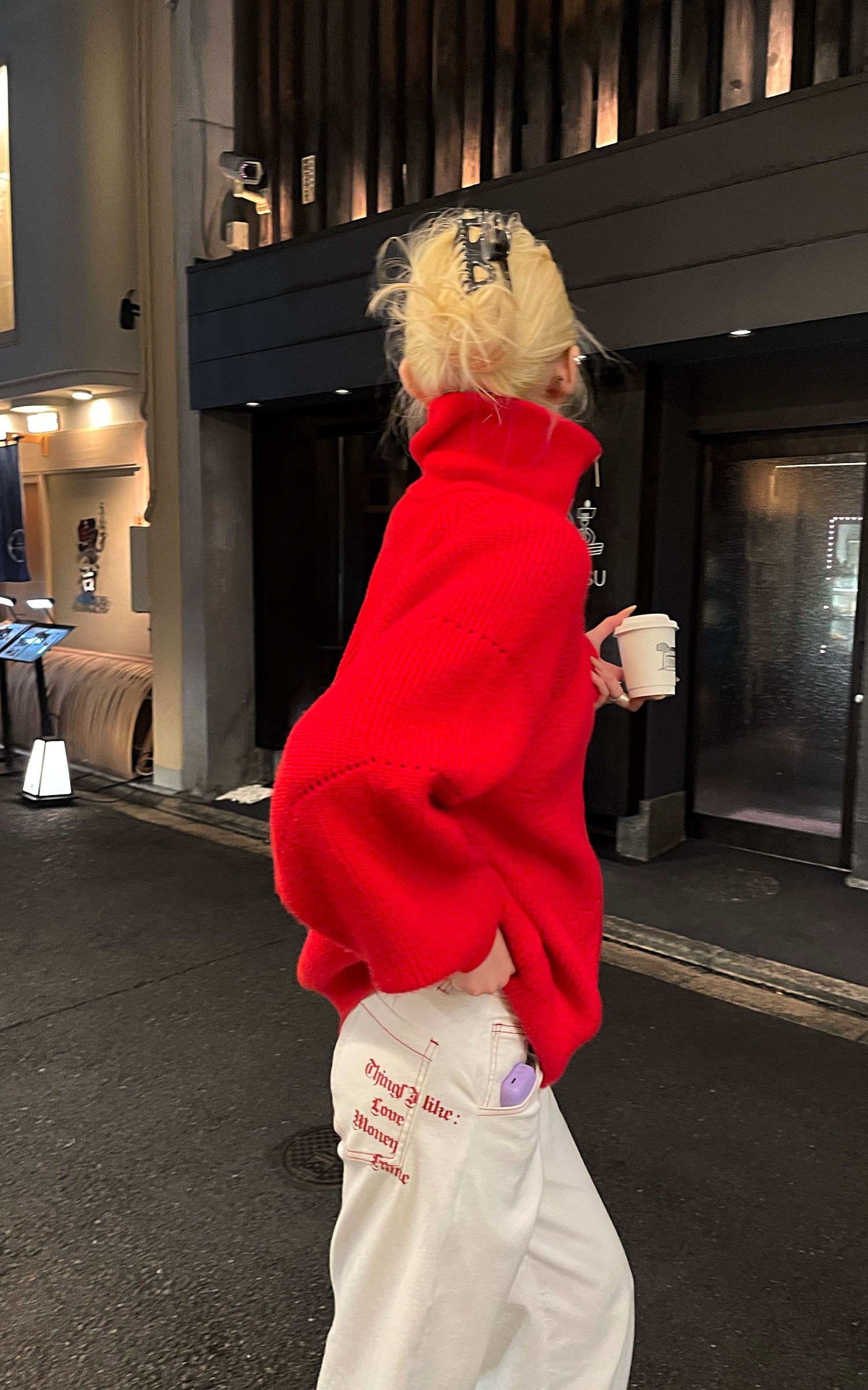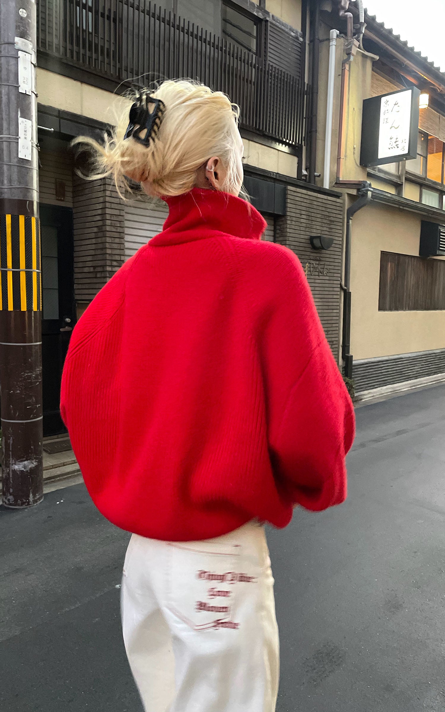 Rase le sol High Neck Oversized Wool Sweater Jacket