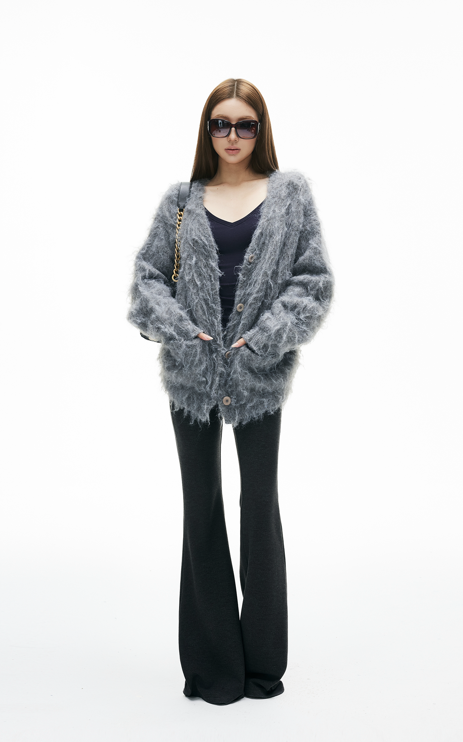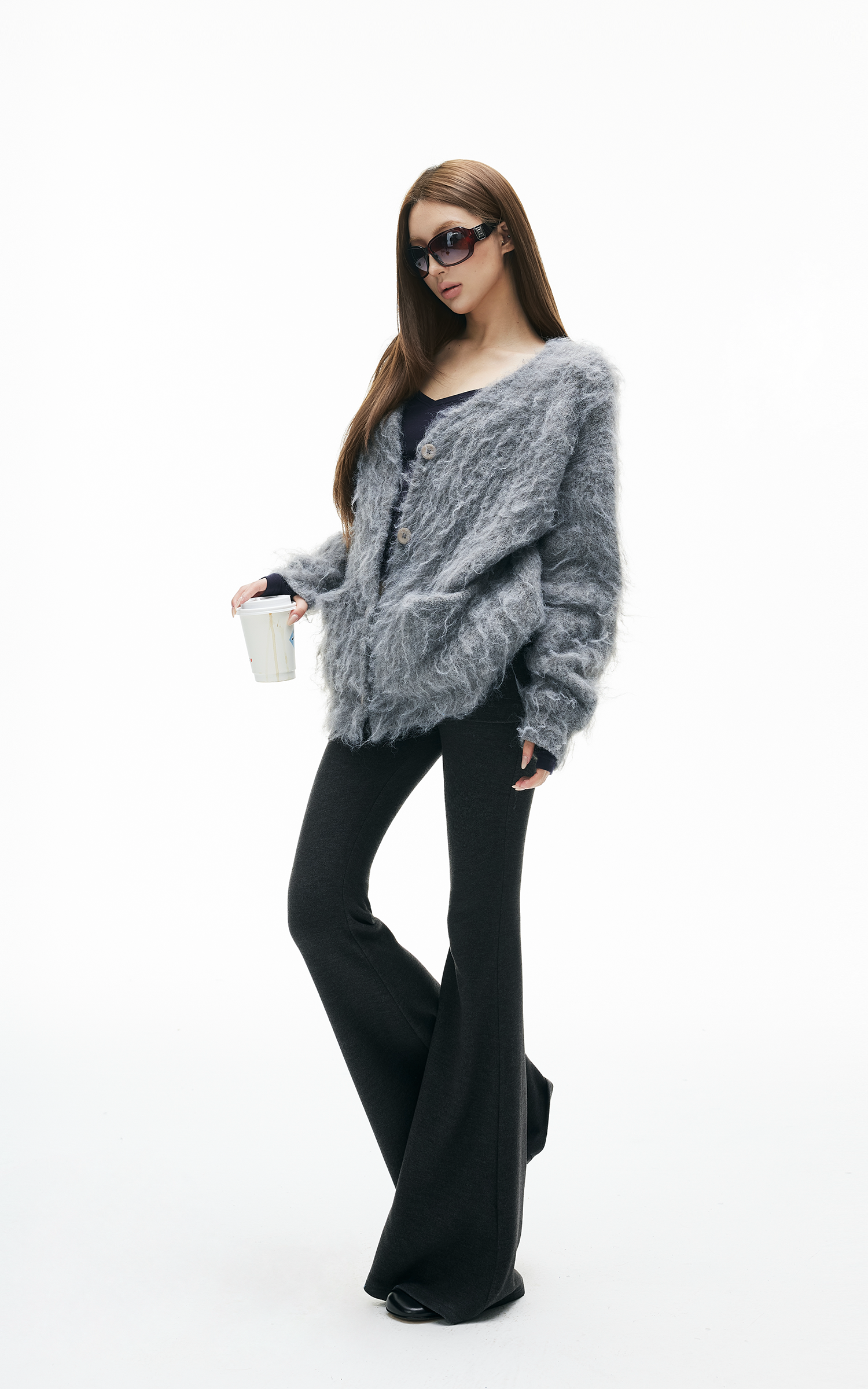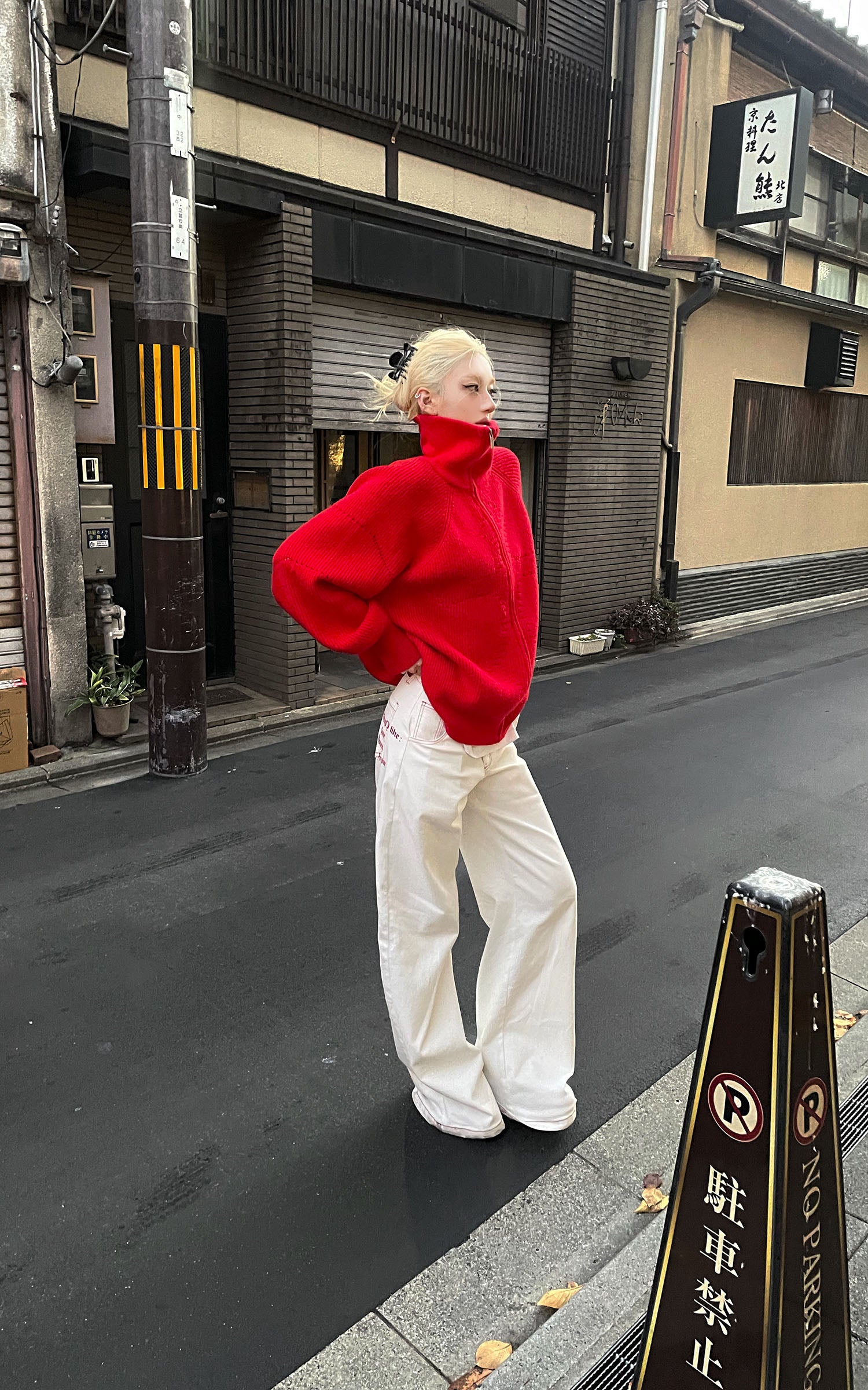 Rase le sol High Neck Oversized Wool Sweater Jacket