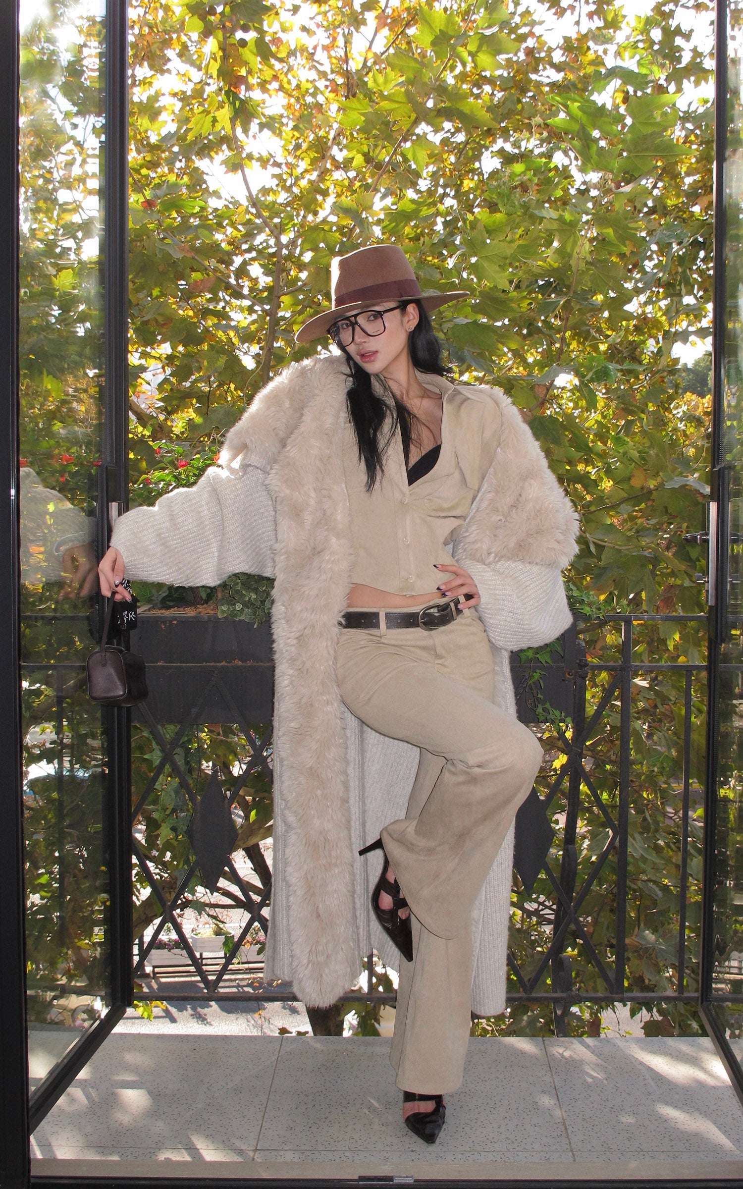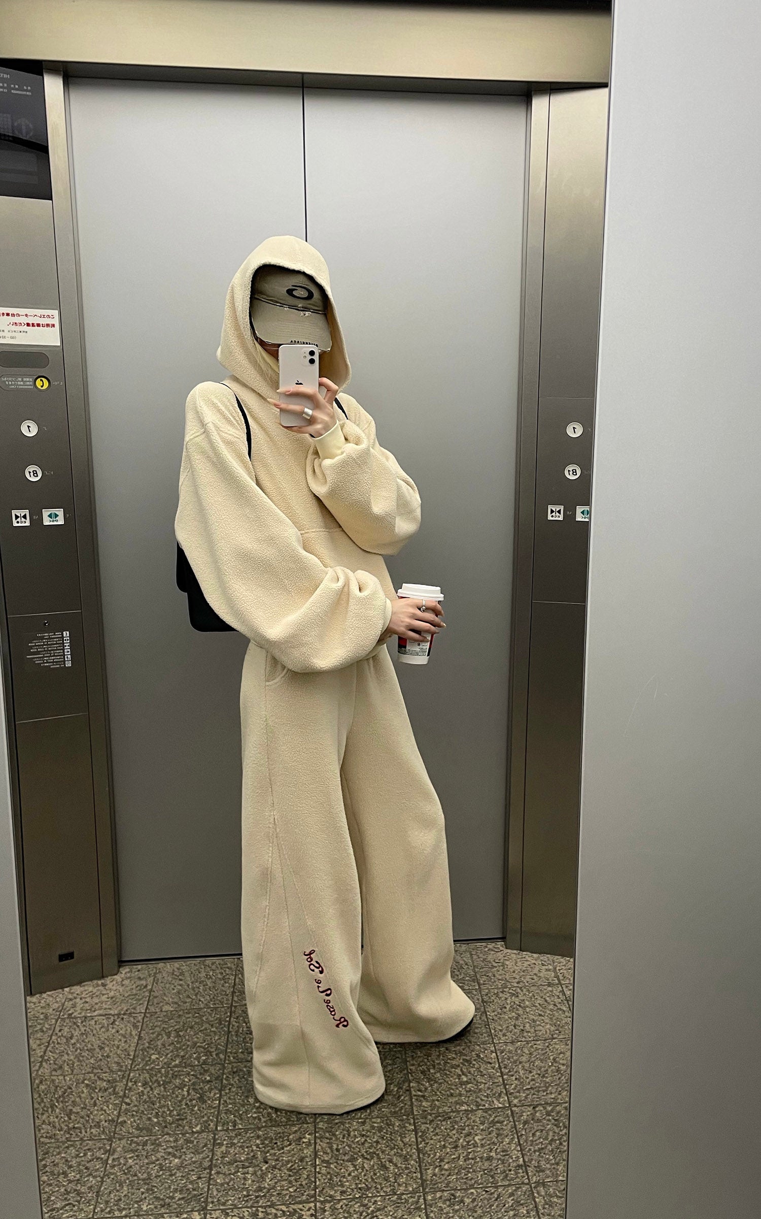 IAMXIAA Faux Fur Hooded Fleece Hoodie and Wide-Leg Sweatpants Set