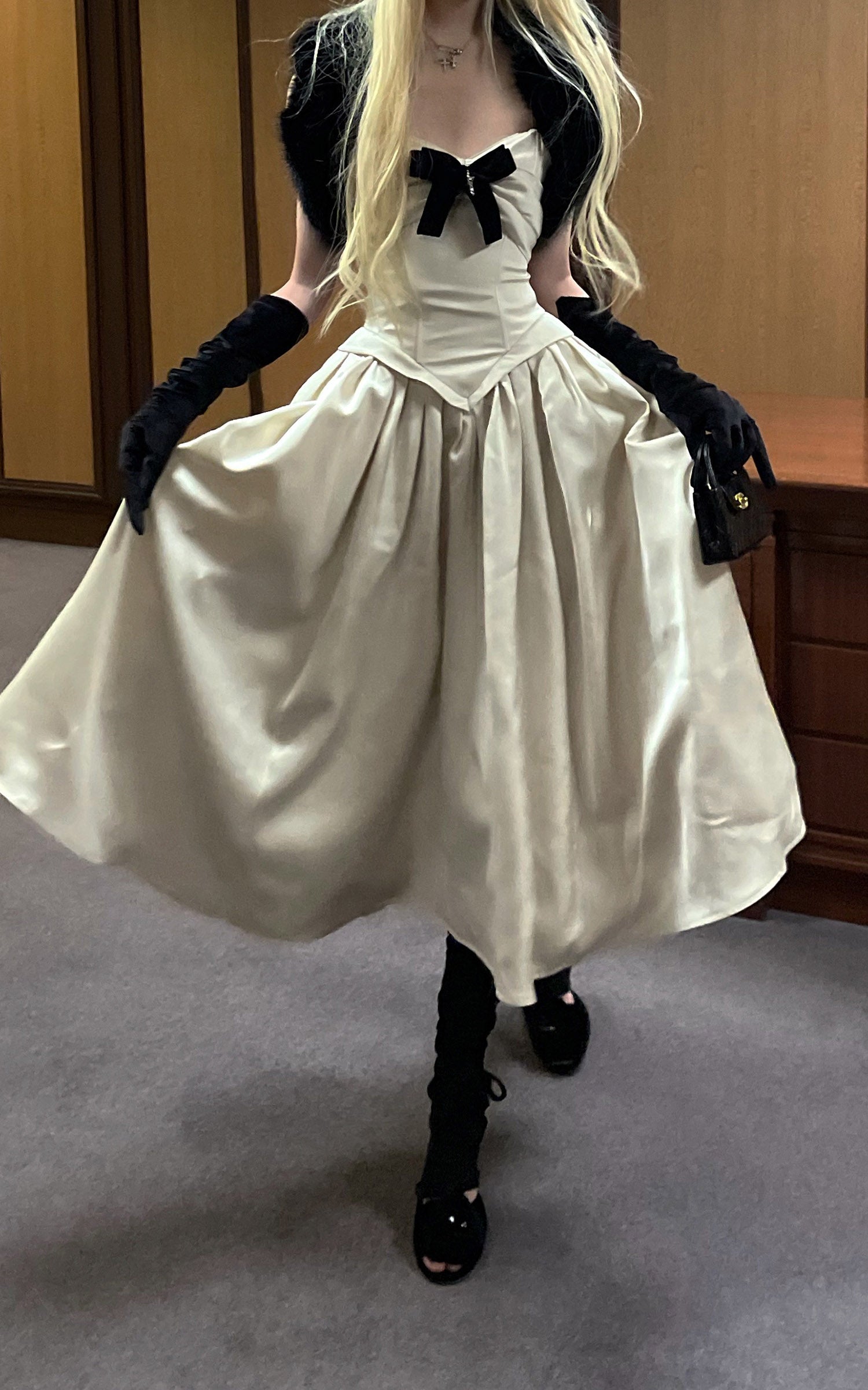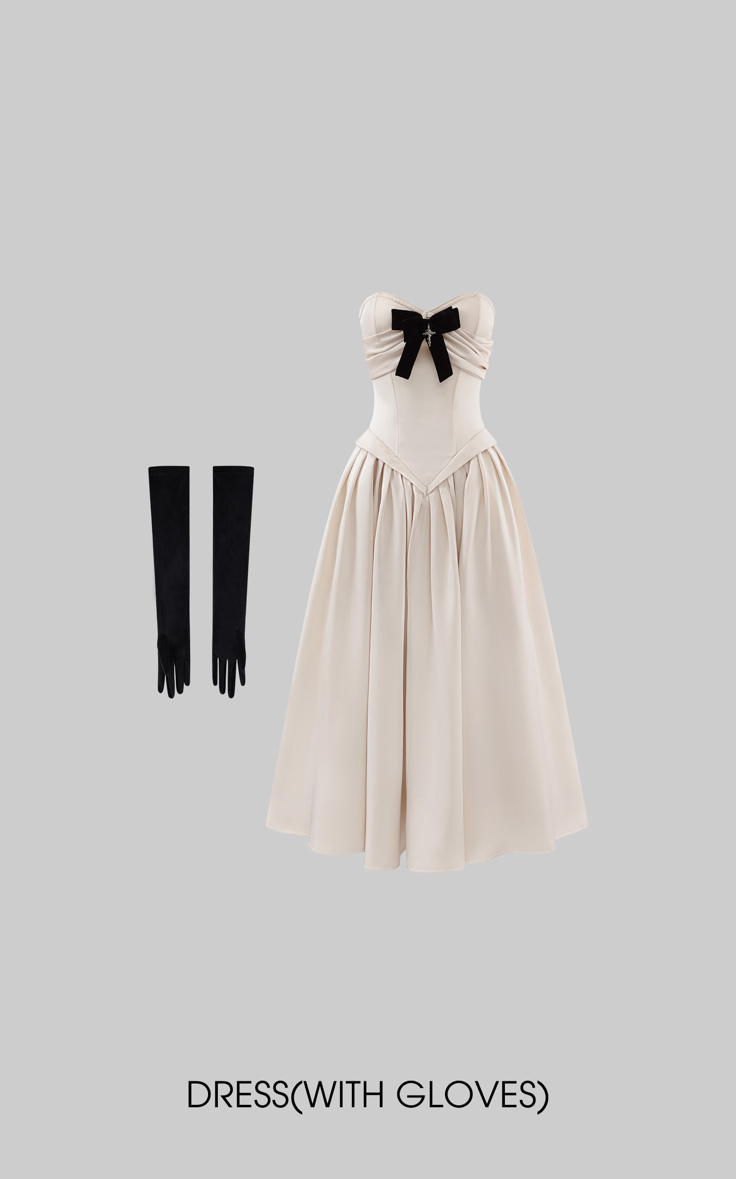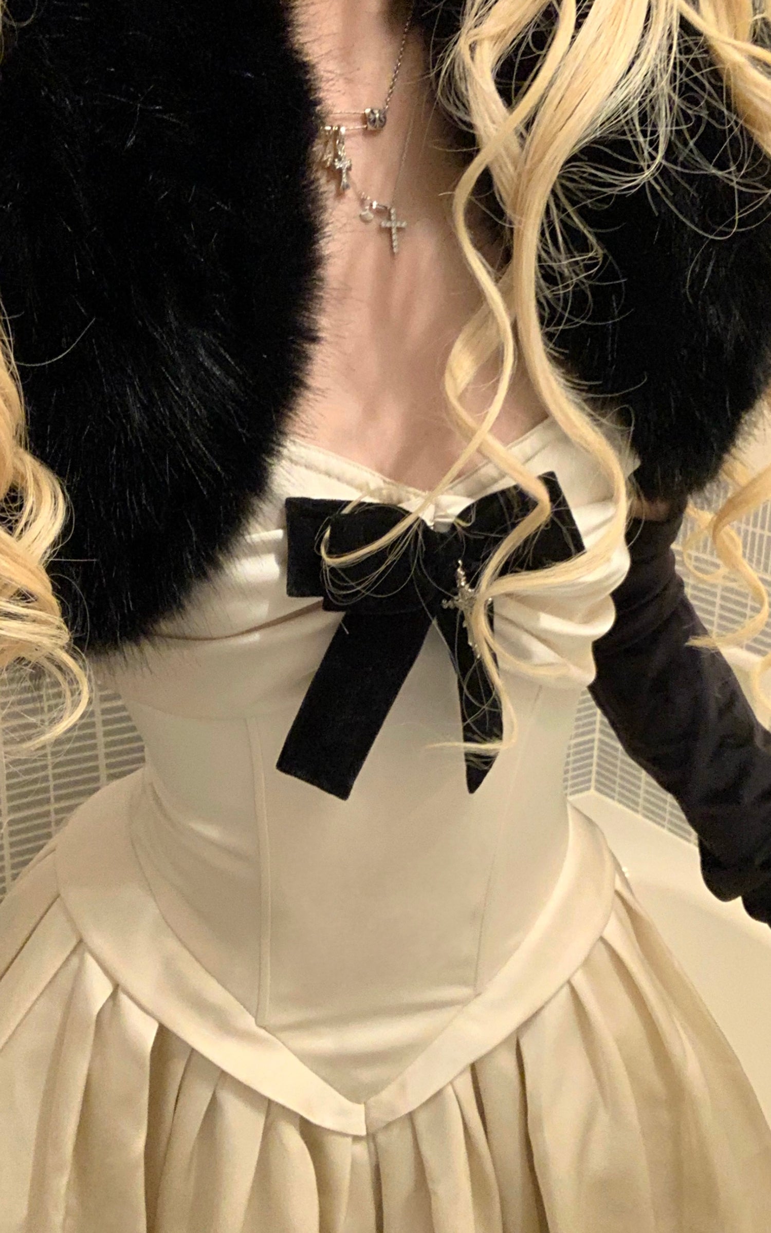 Rase Le Sol Strapless Dress Set With Gloves And Faux Fur Bolero