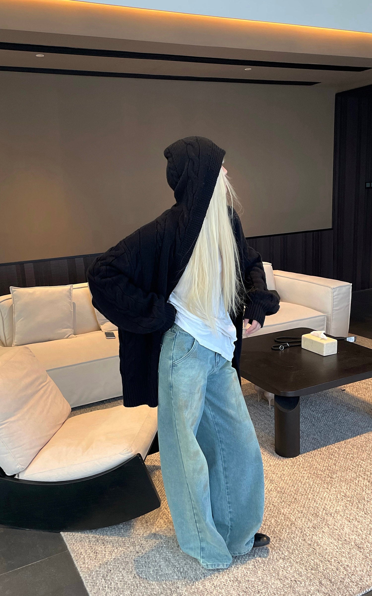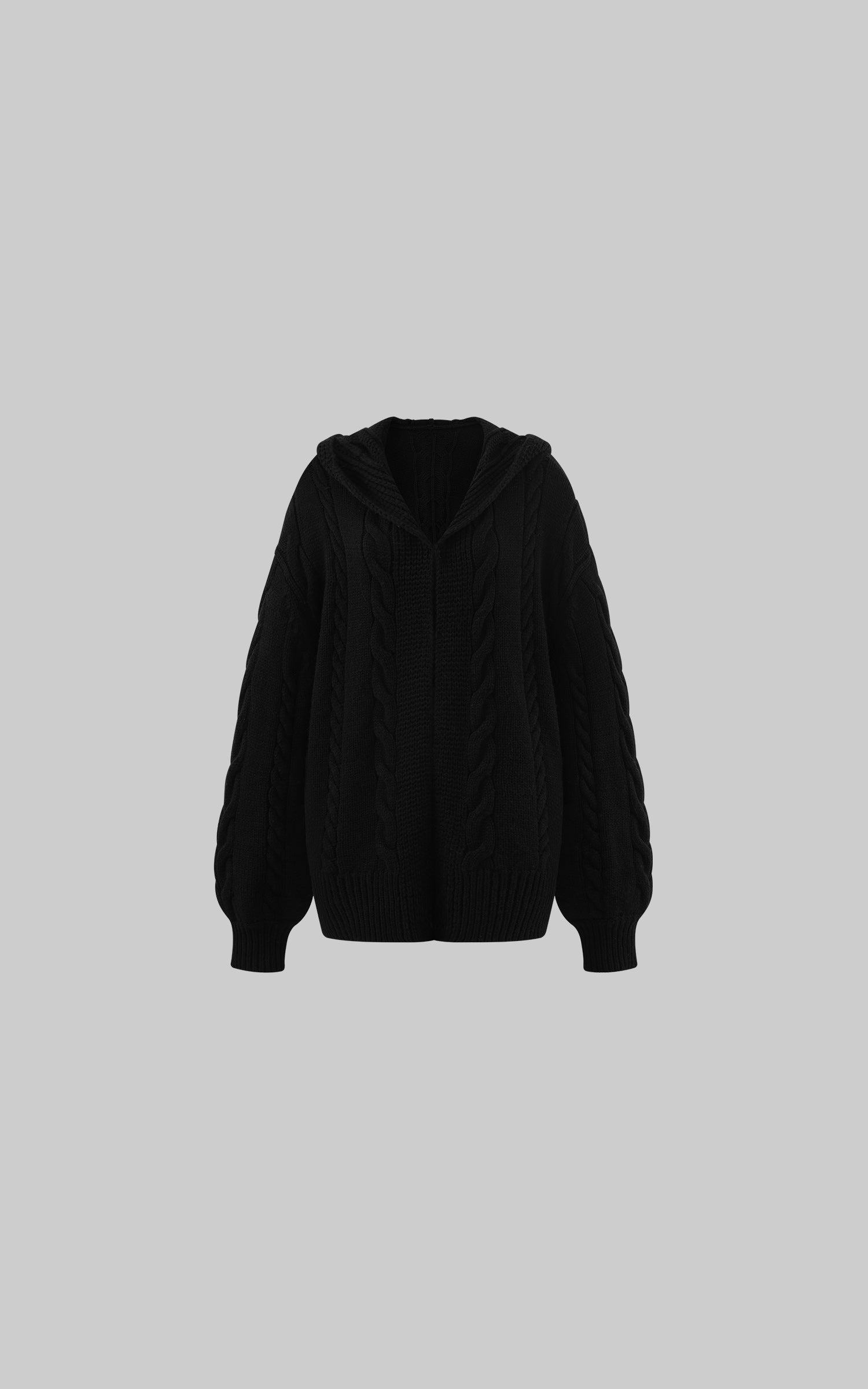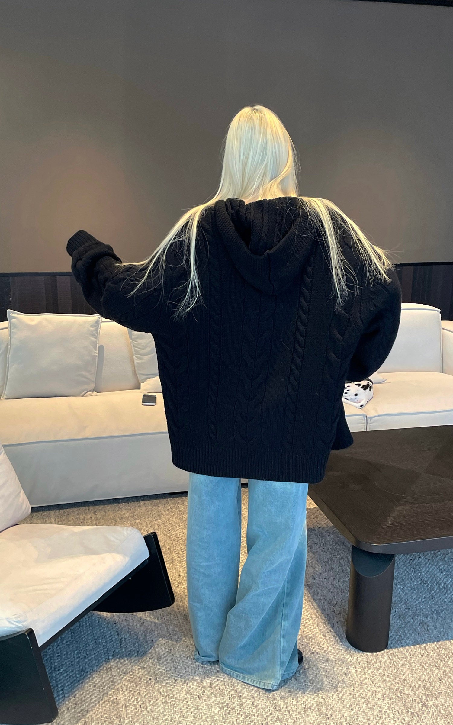 Rase le sol Oversized Cable Knit Hoodie Cardigan