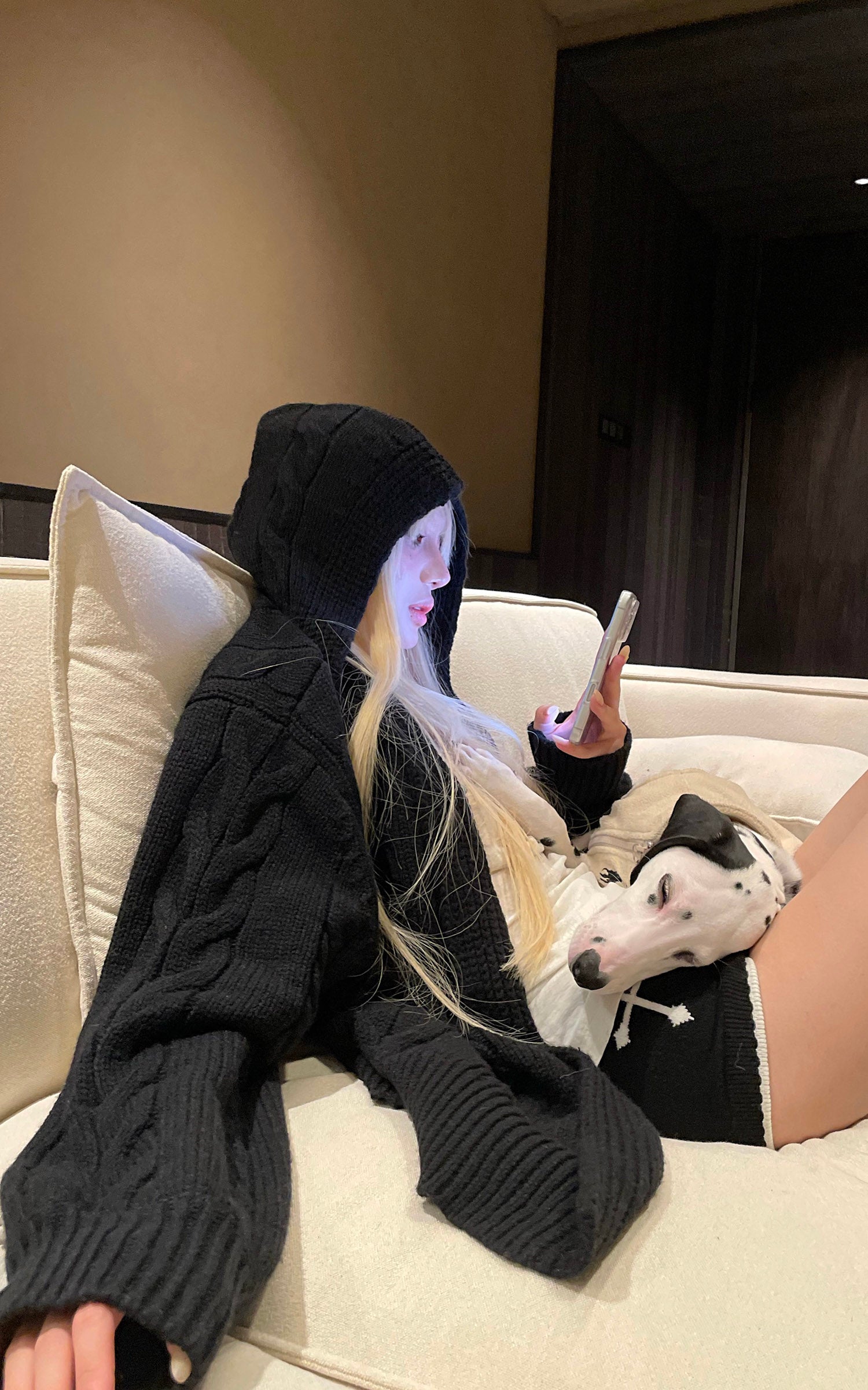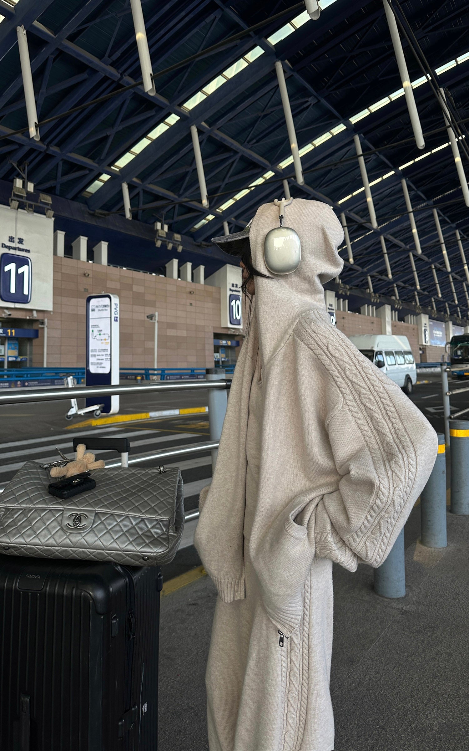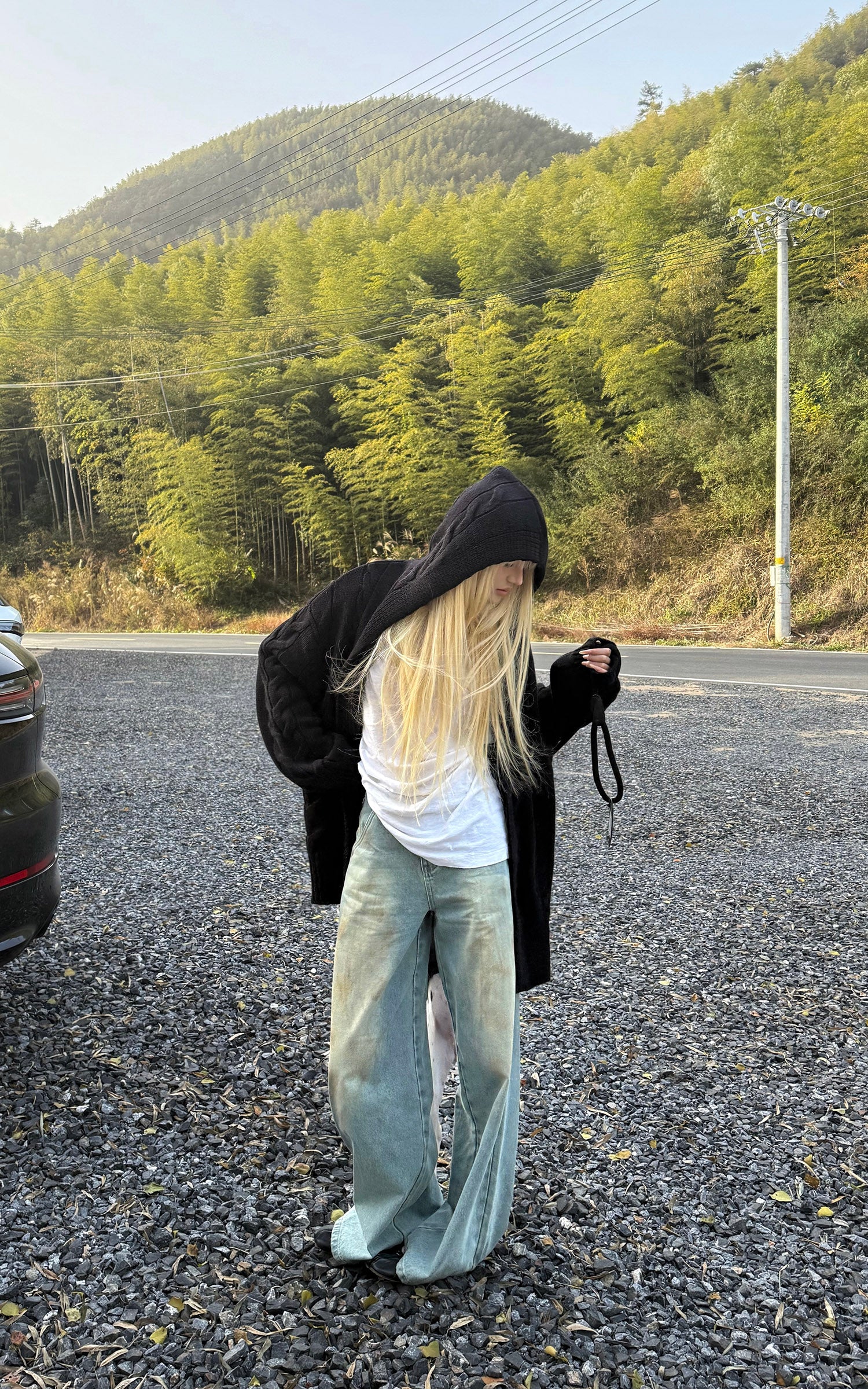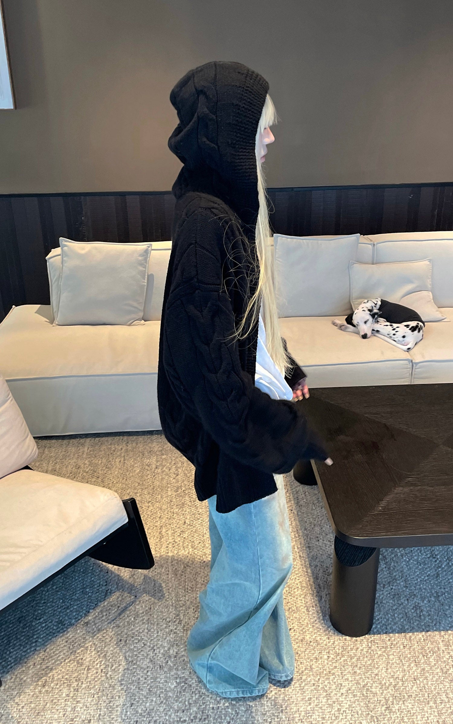 Rase le sol Oversized Cable Knit Hoodie Cardigan