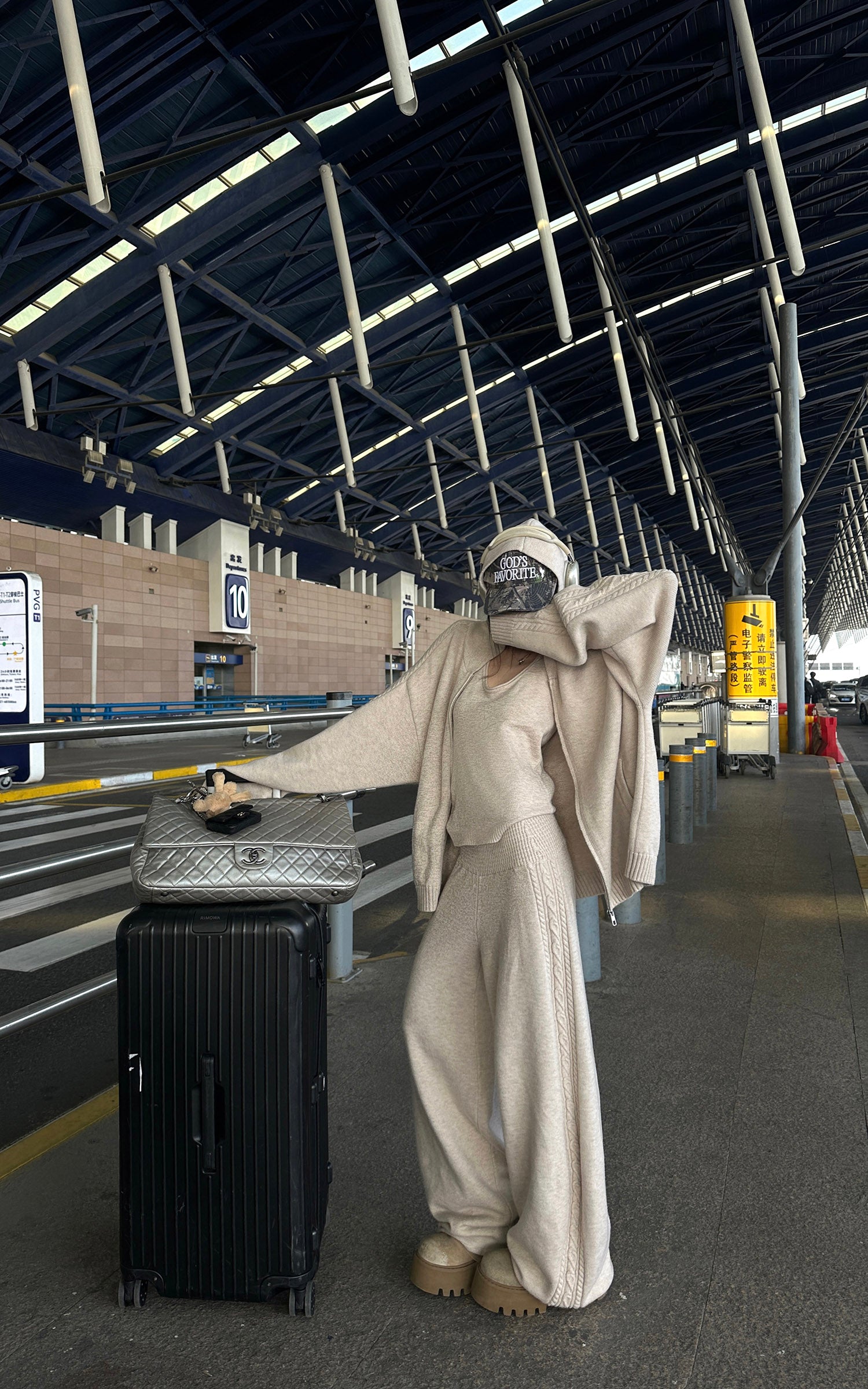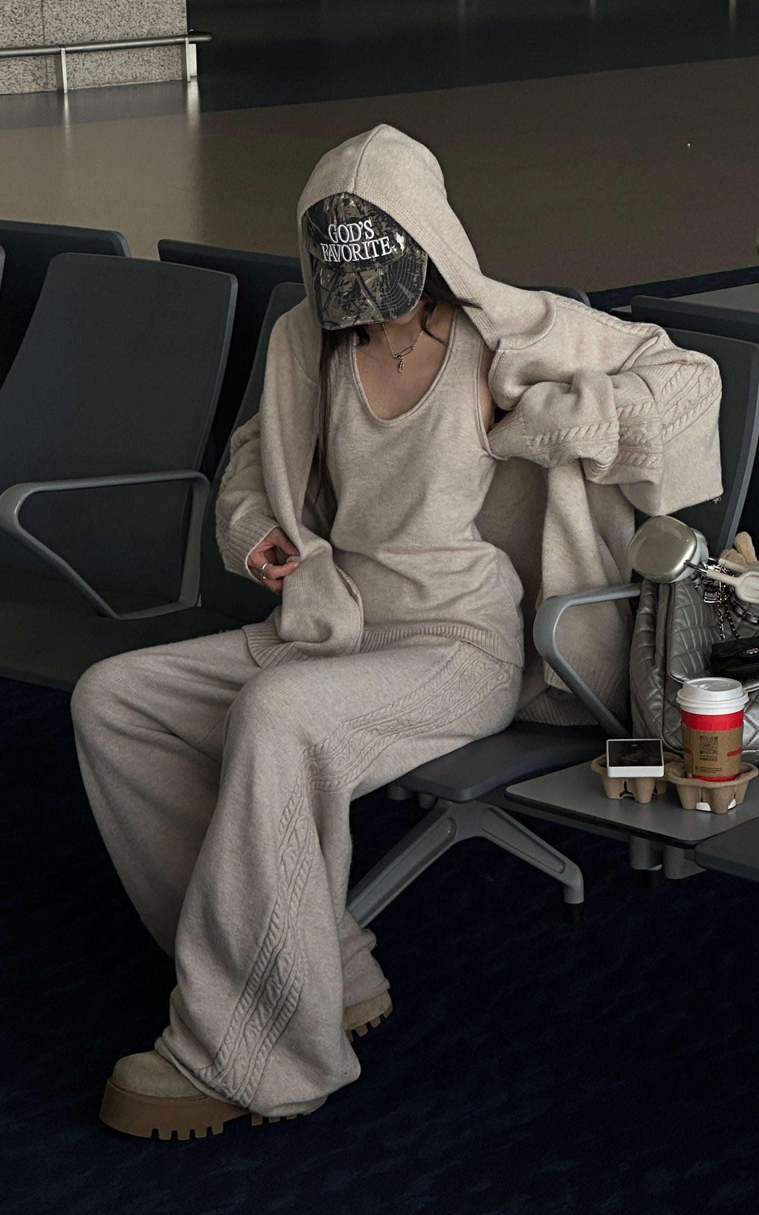WARDEN EDGE Knit Cardigan Tank and Wide Leg Pants Set
