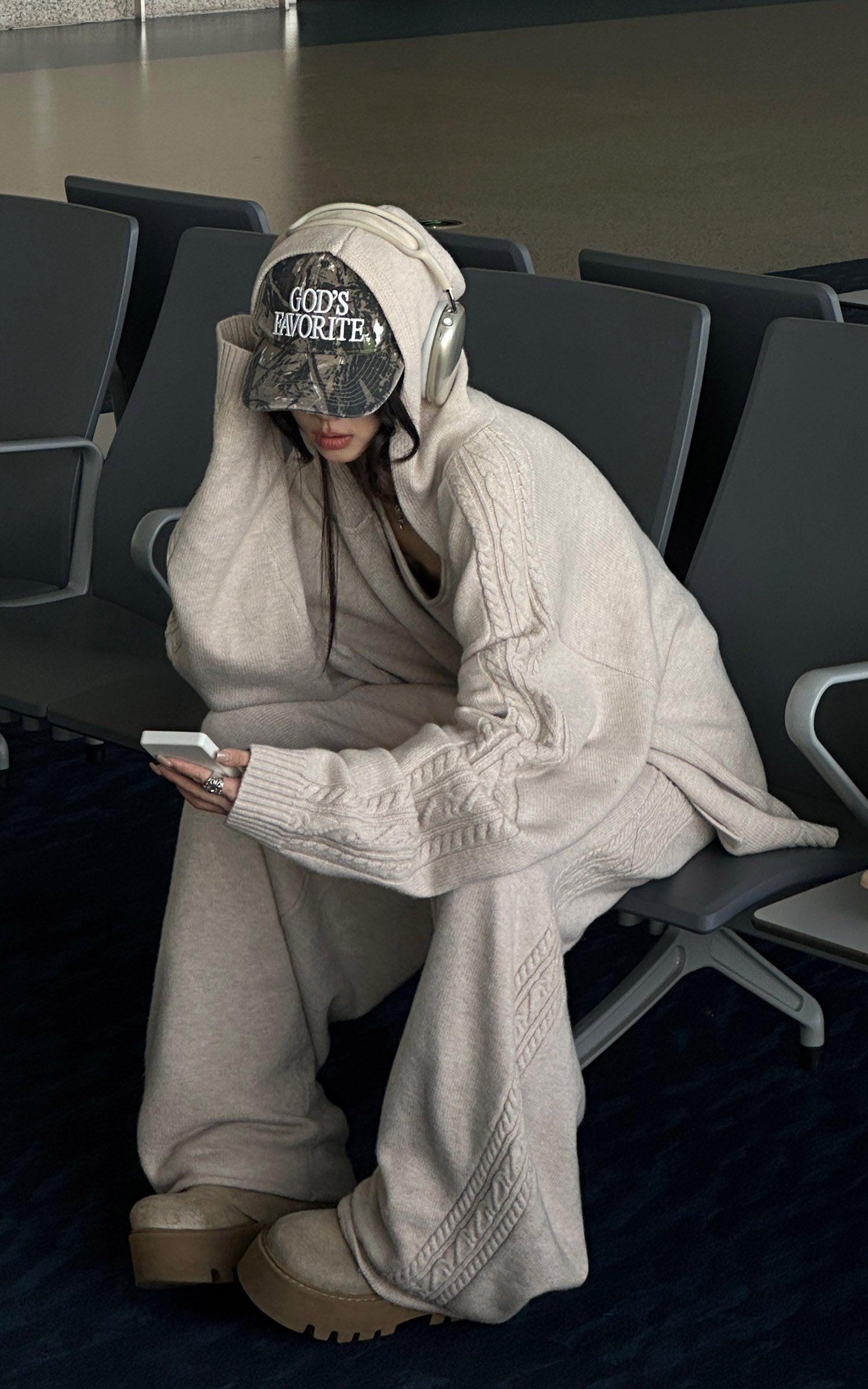 WARDEN EDGE Oversized Knit Hoodie and Wide-Leg Pants Set