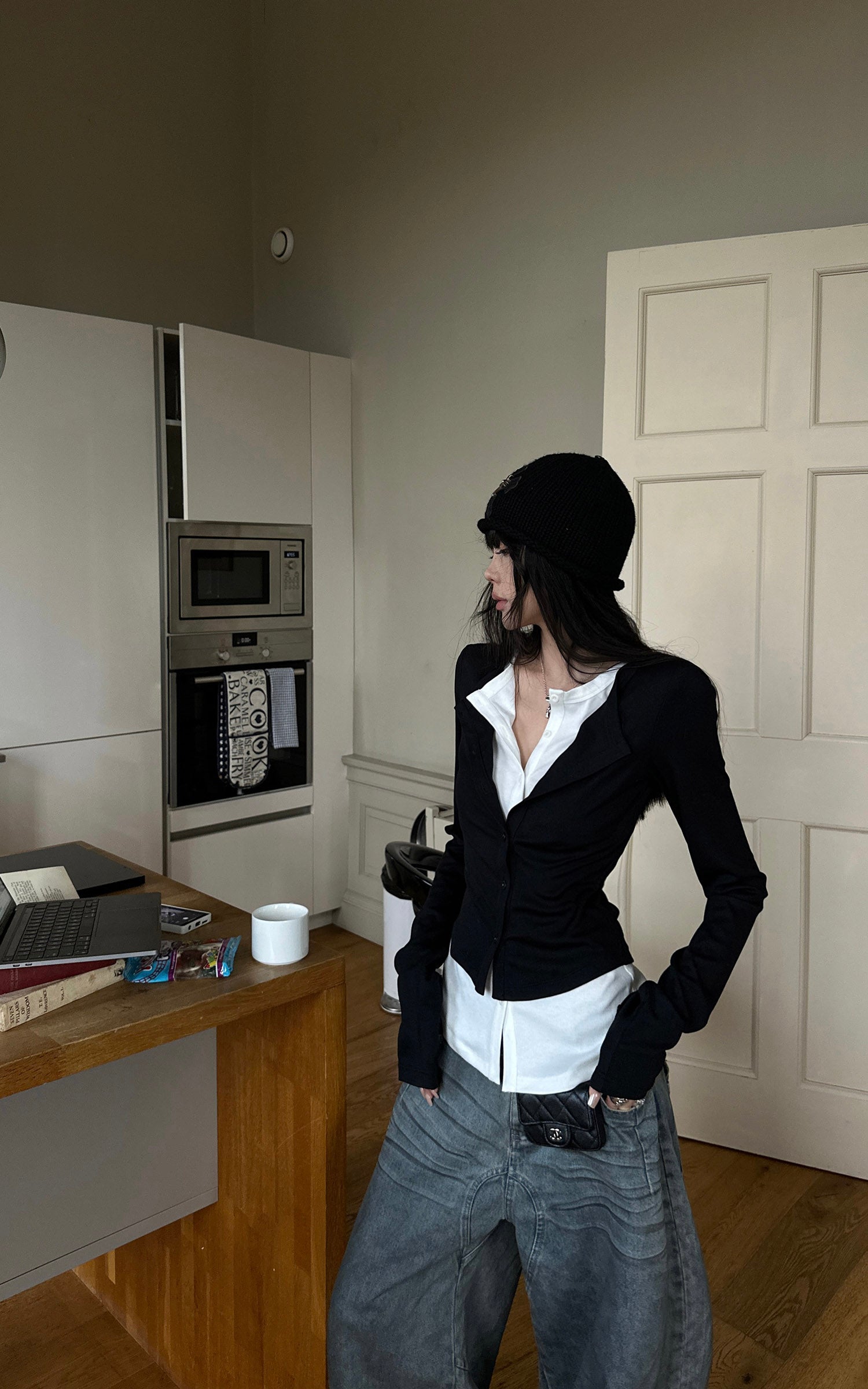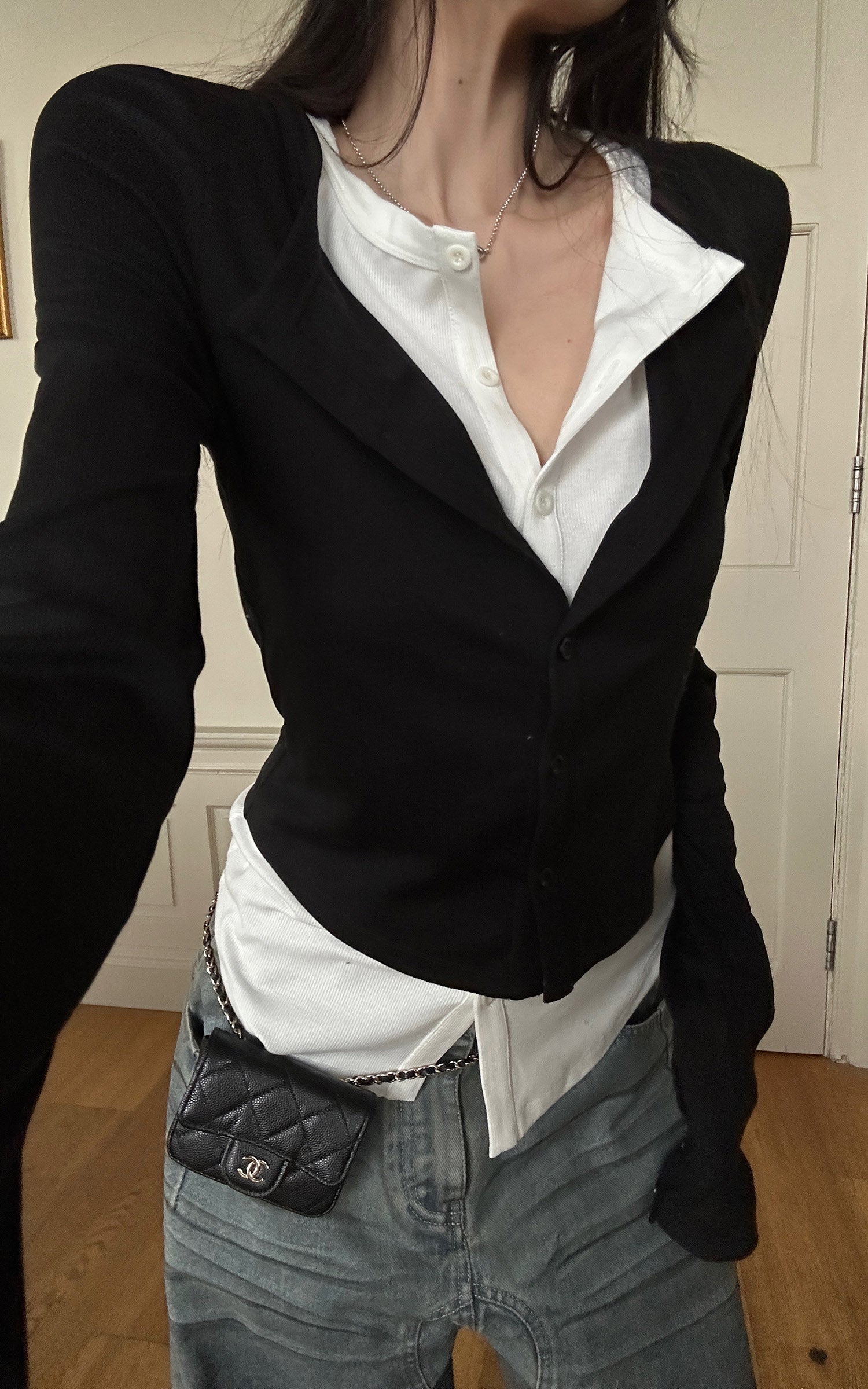 WARDEN EDGE Layered V-Neck Long Sleeve Top