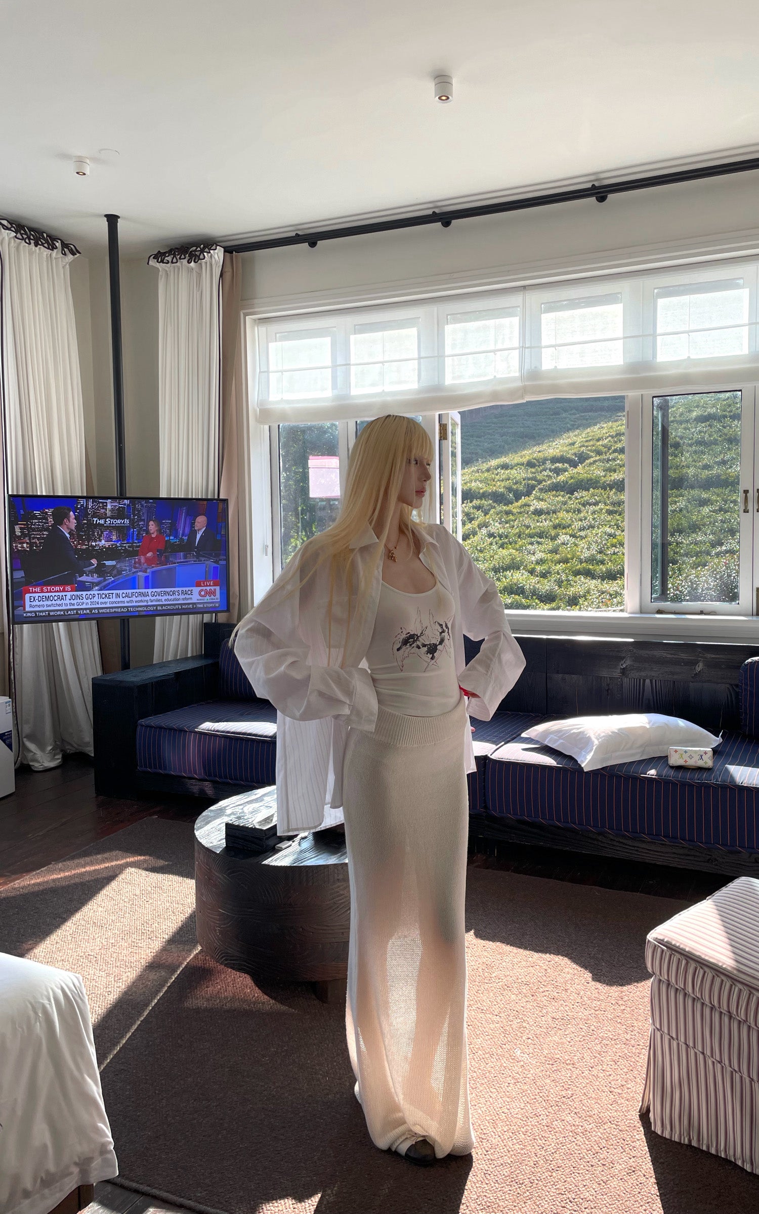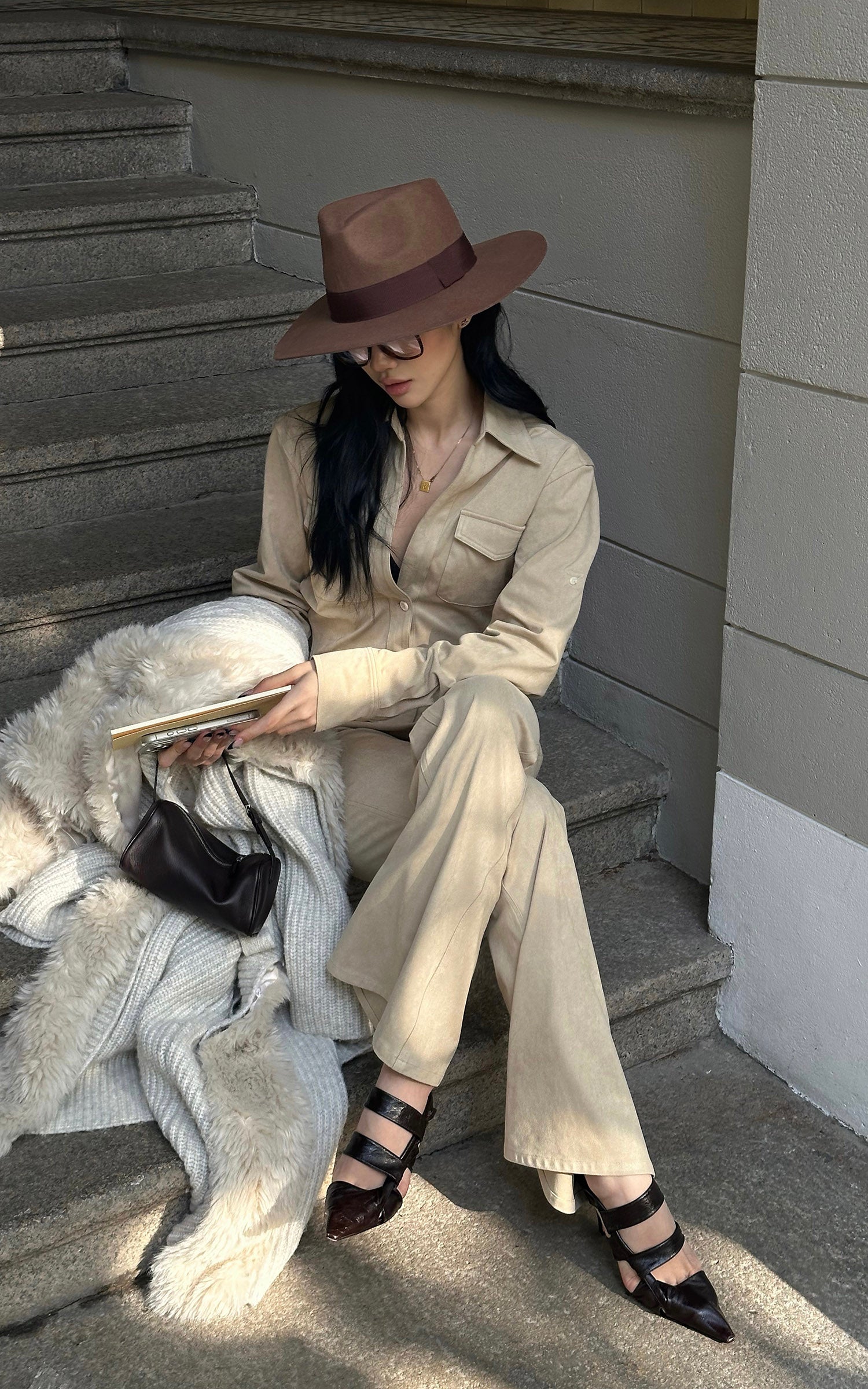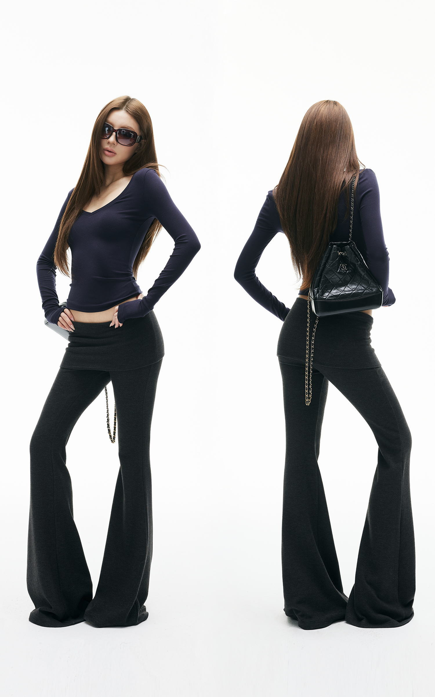 IAMXIAA V-Neck T-Shirt & Flared Pants Set