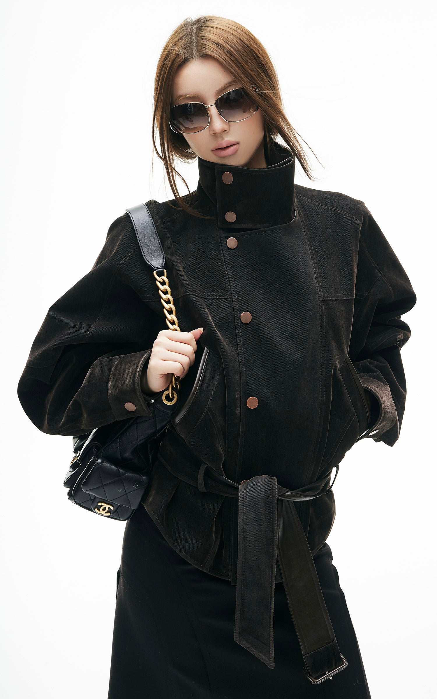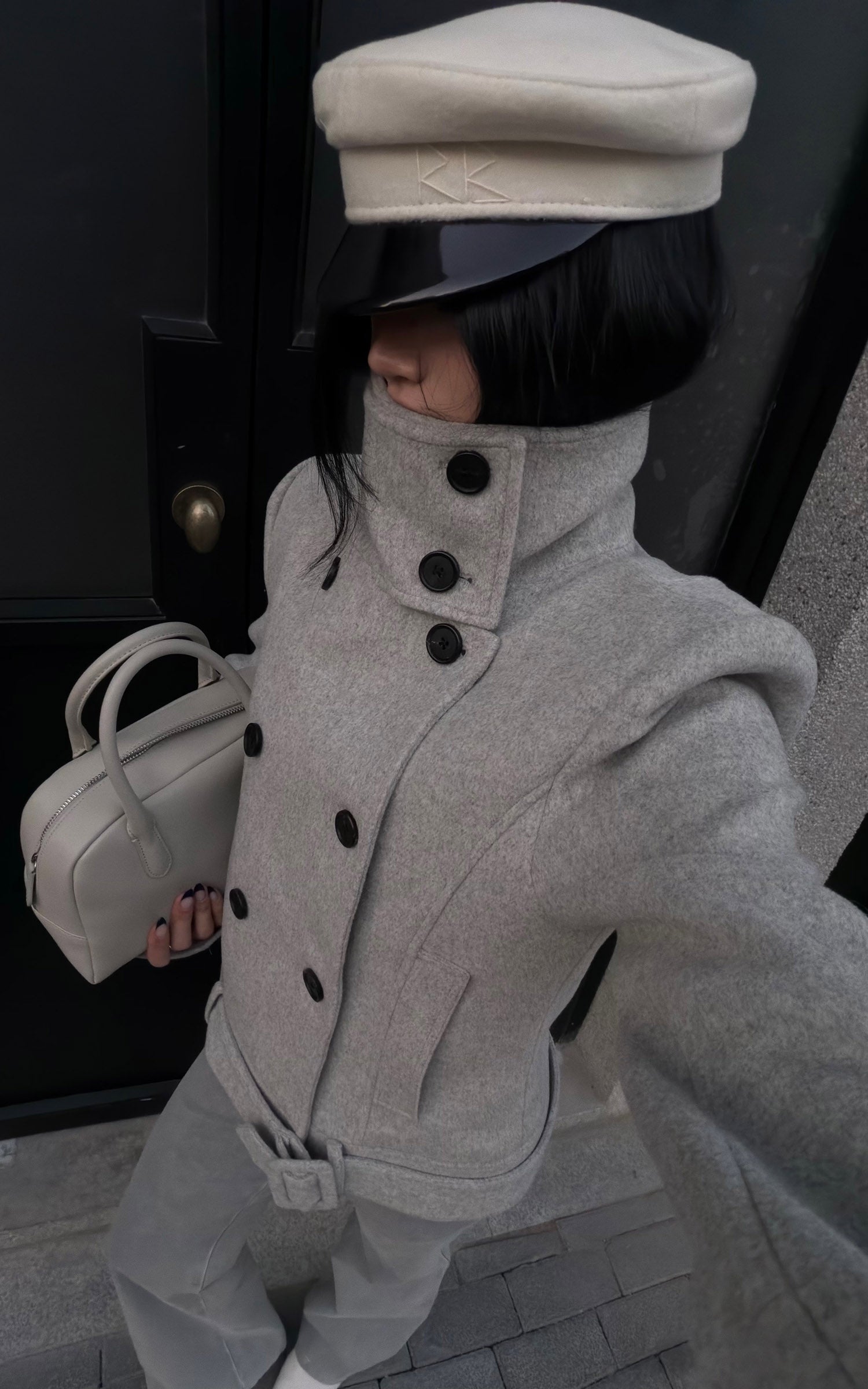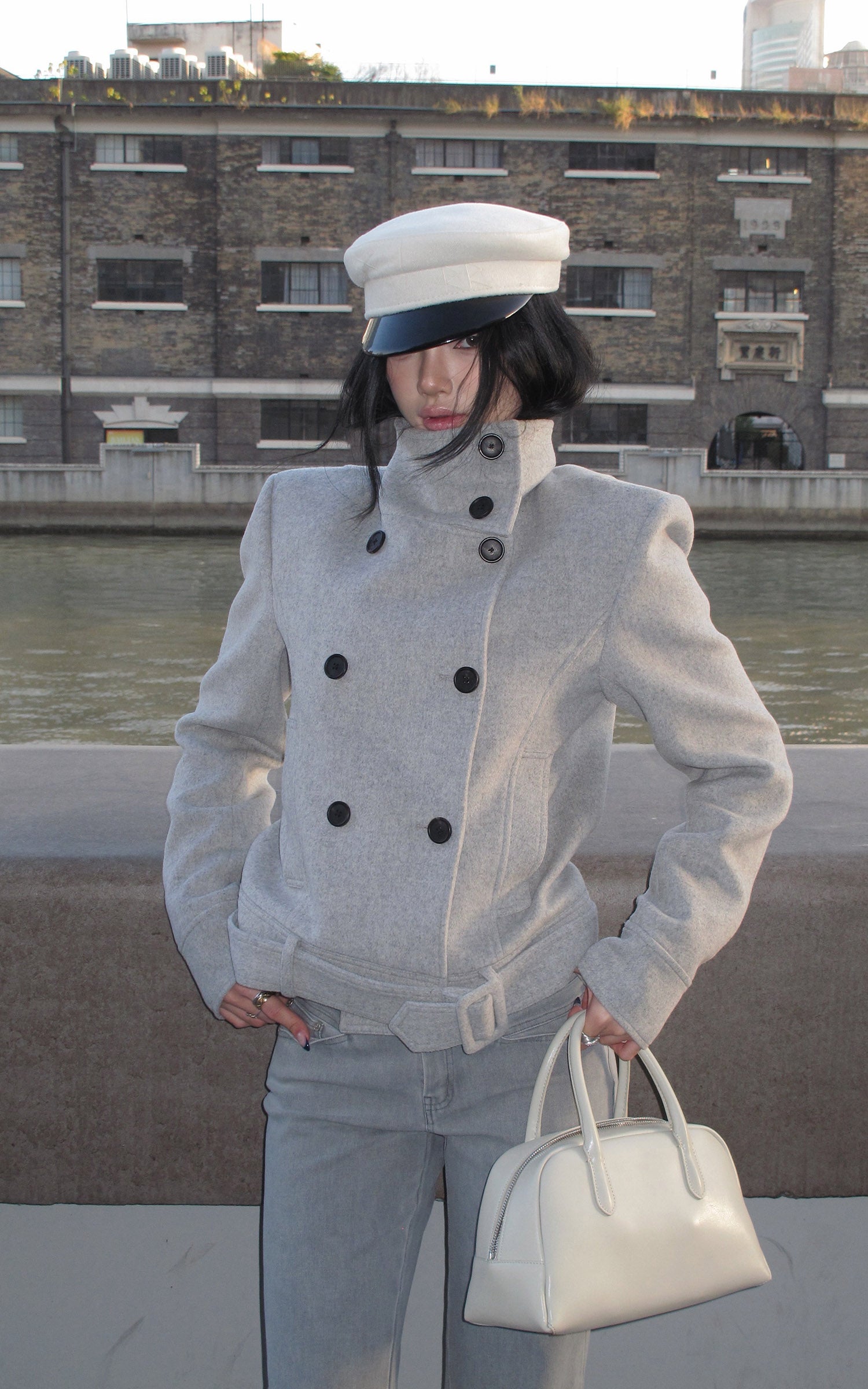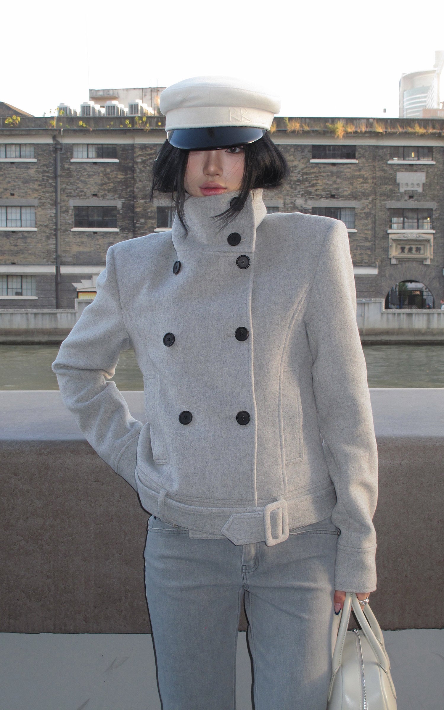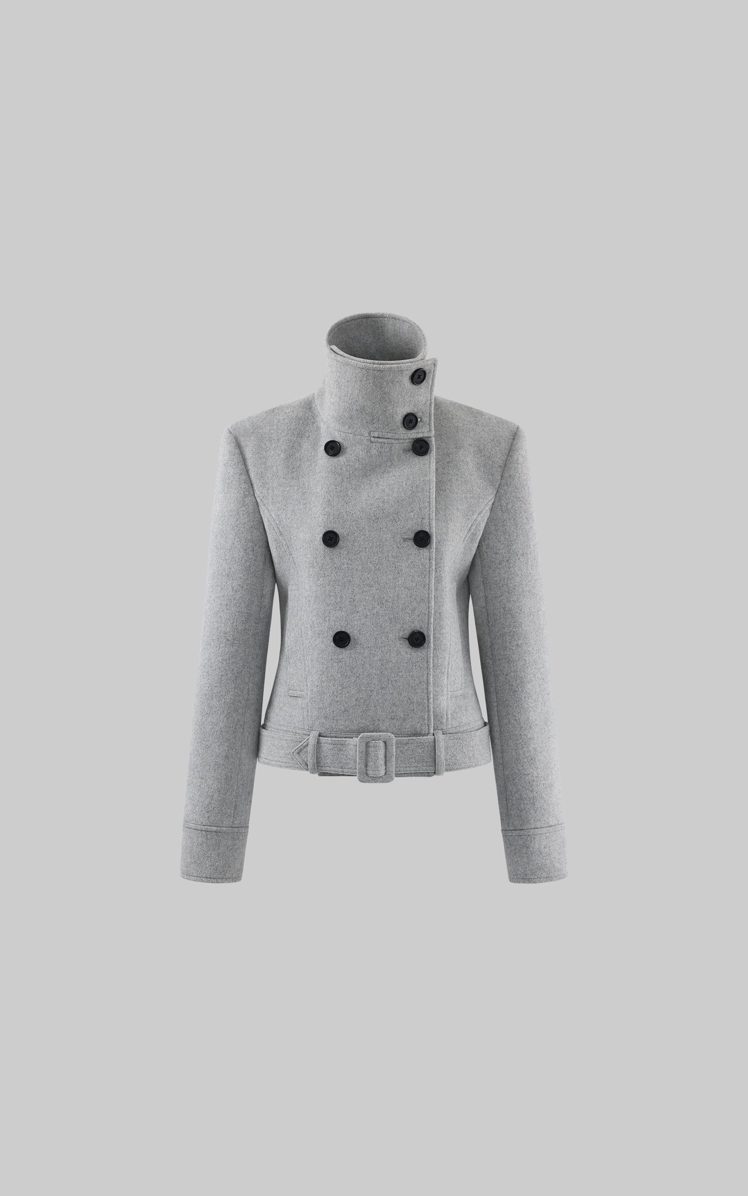 IAMXIAA Wool-Like High Neck Belted Double-Breasted Jacket