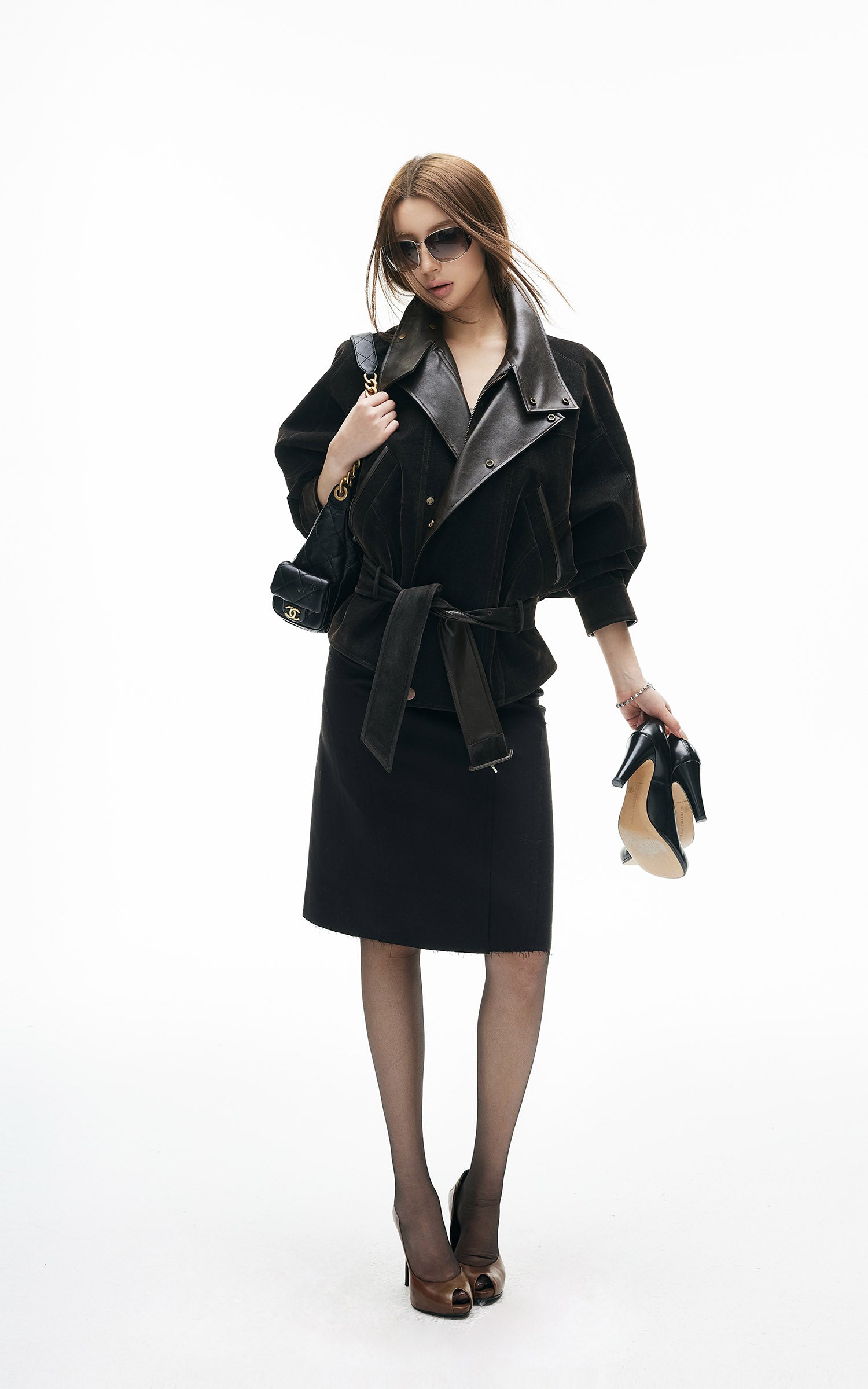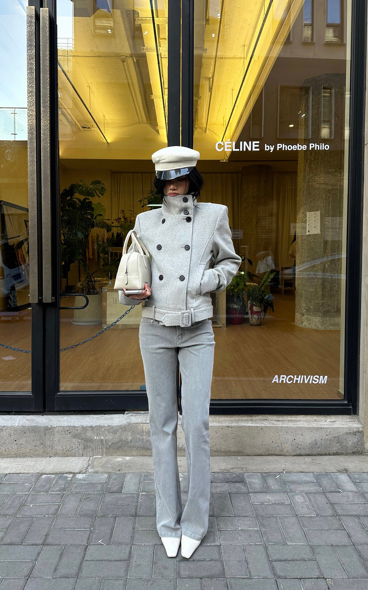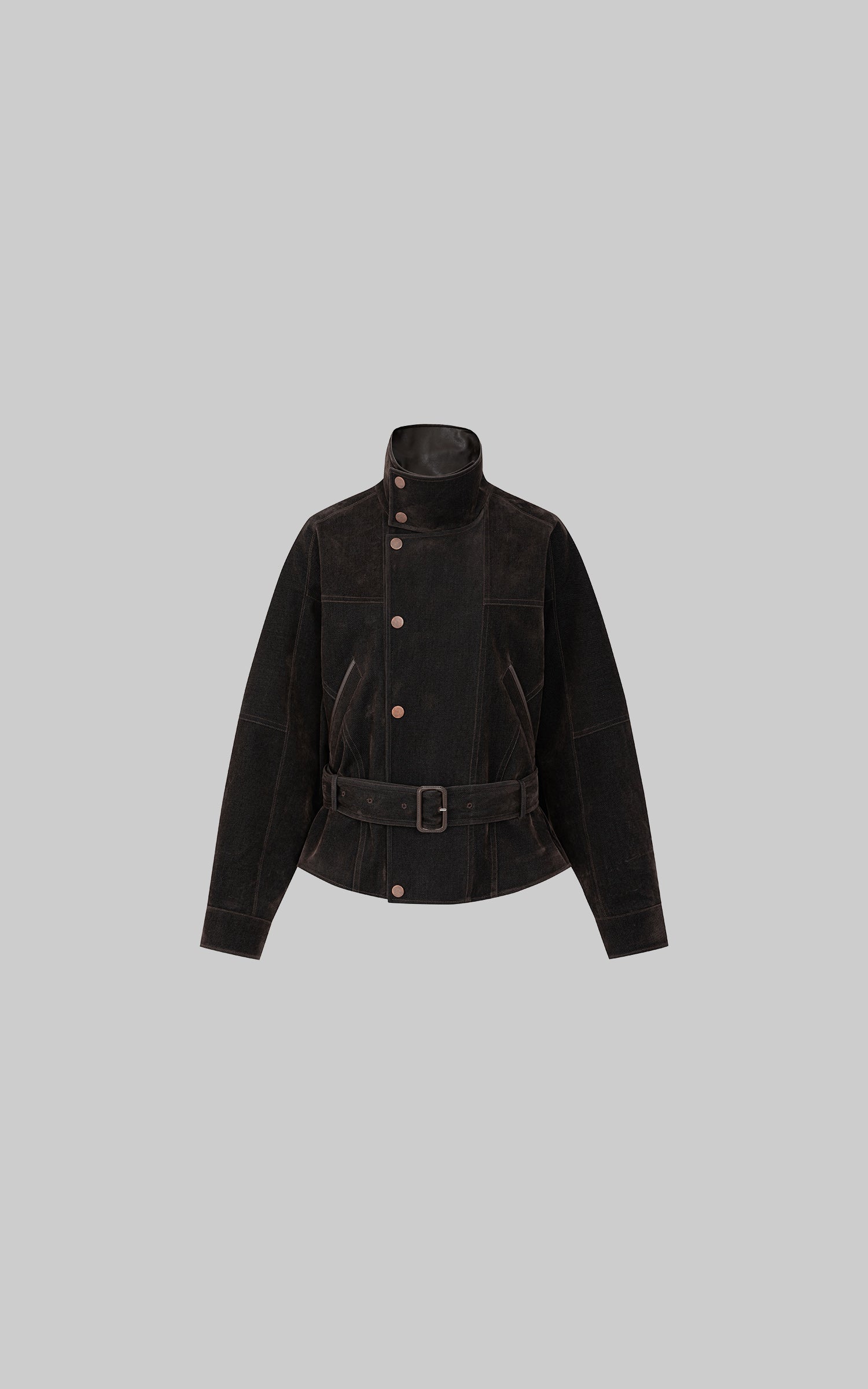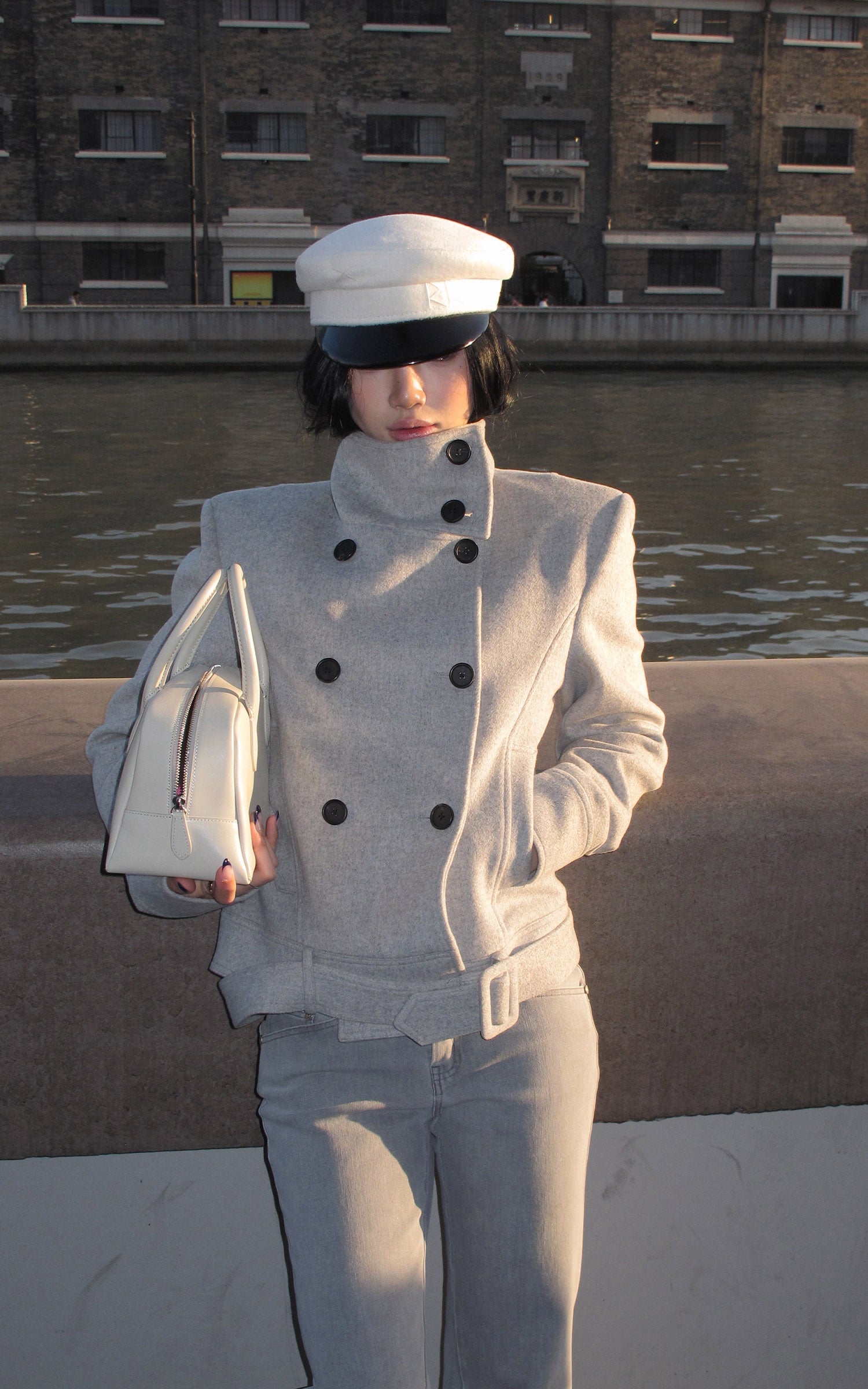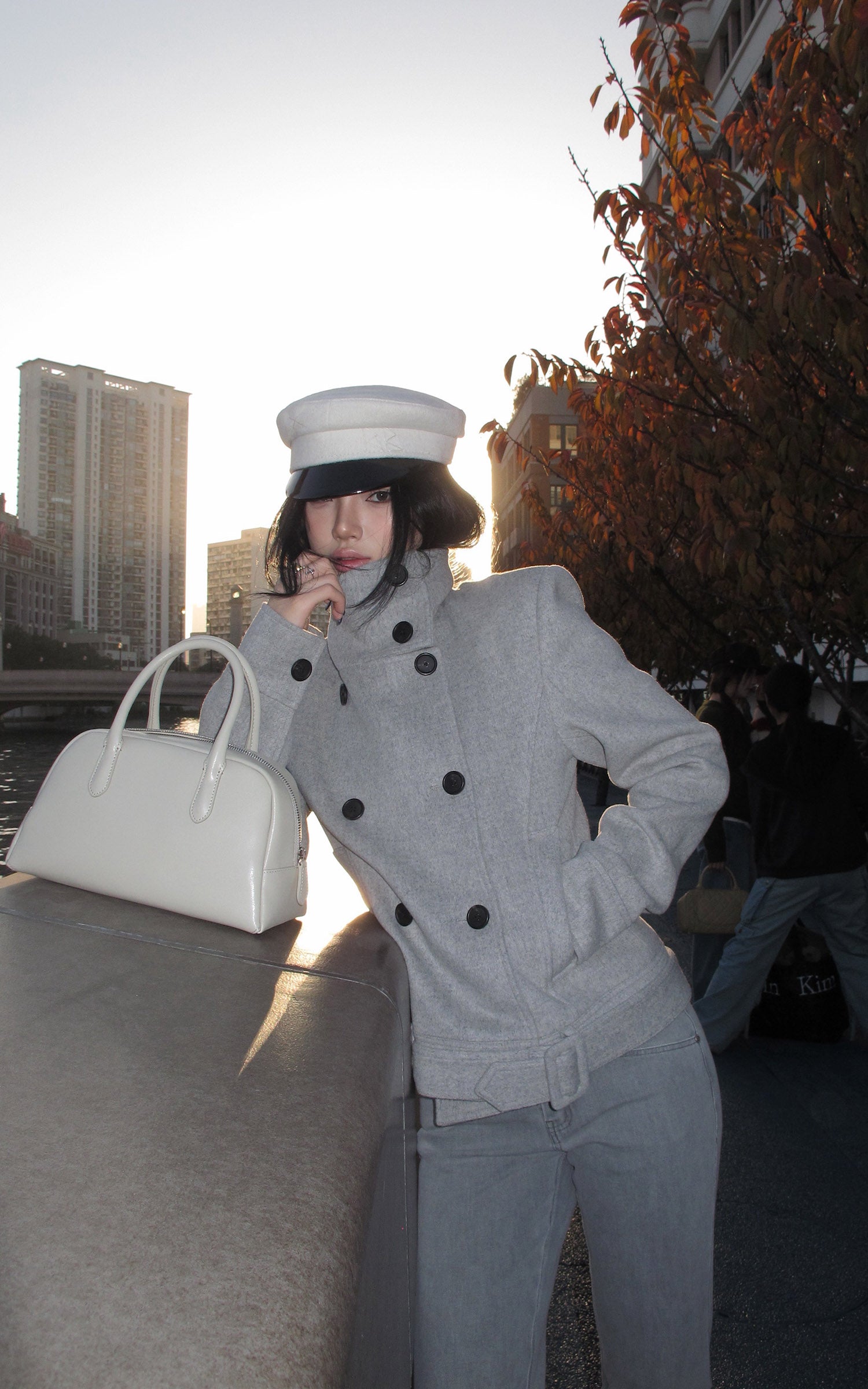 IAMXIAA Wool-Like High Neck Belted Double-Breasted Jacket