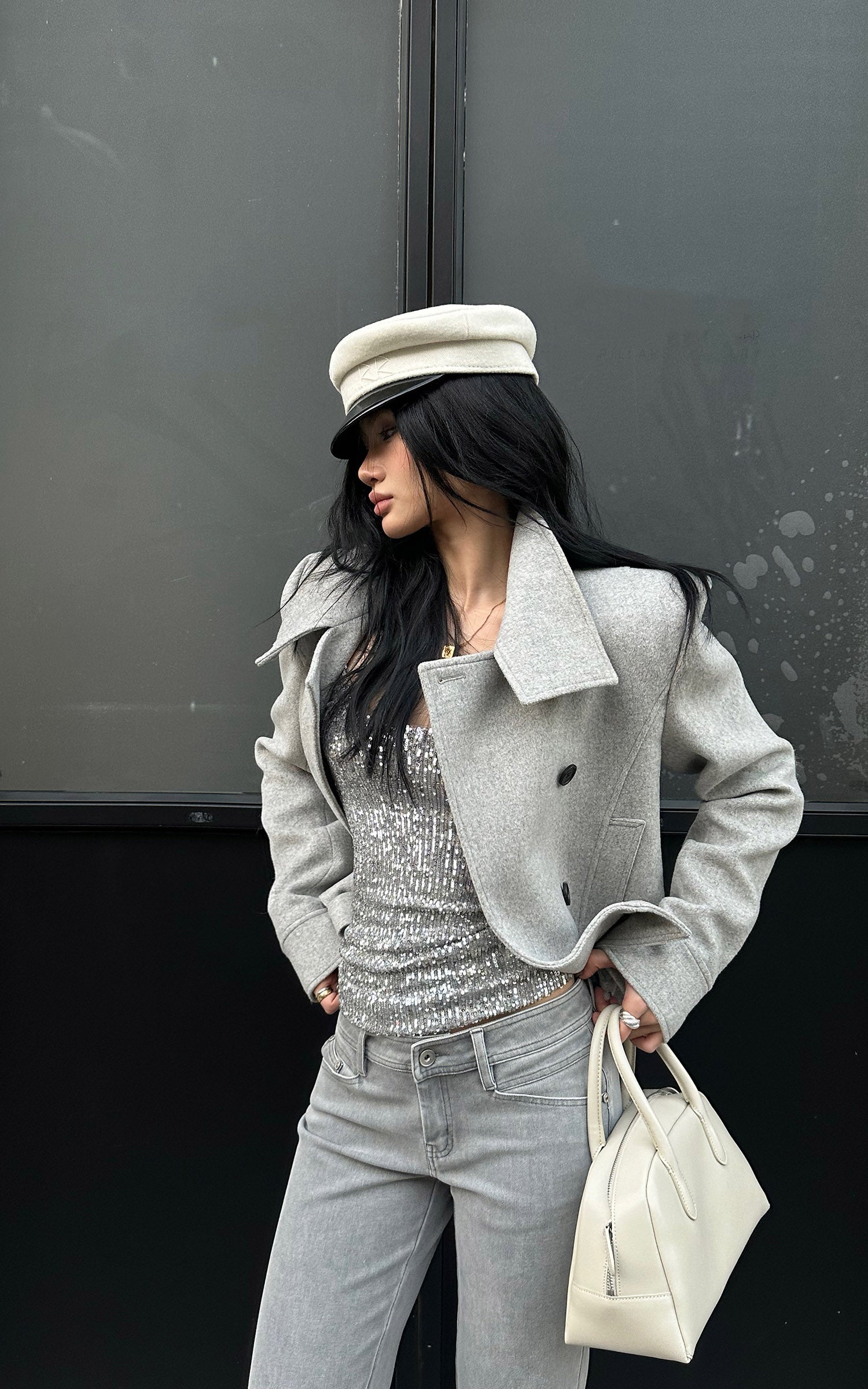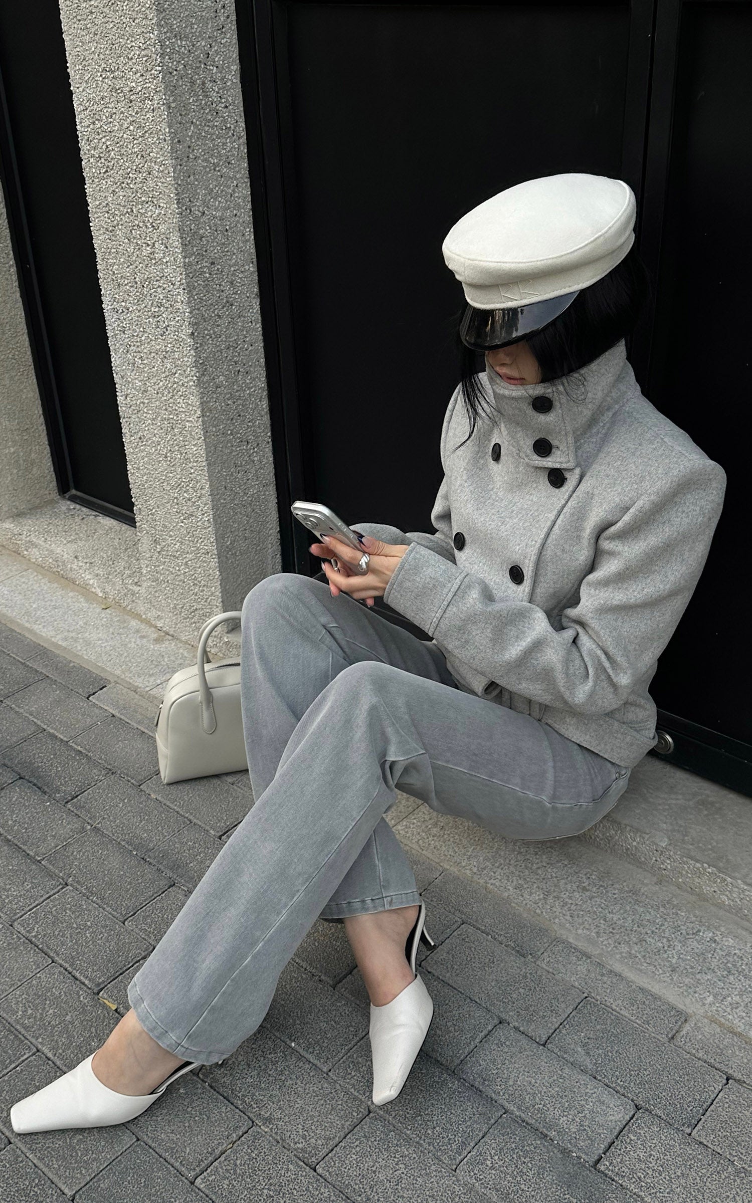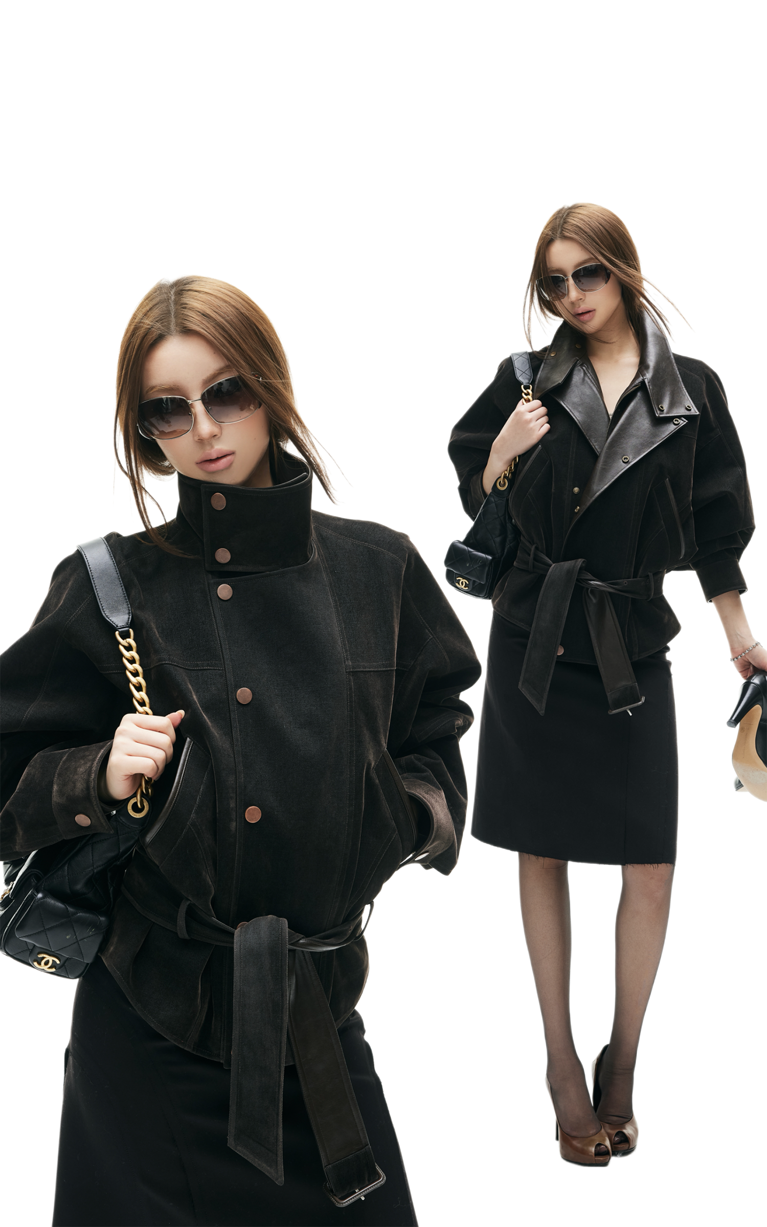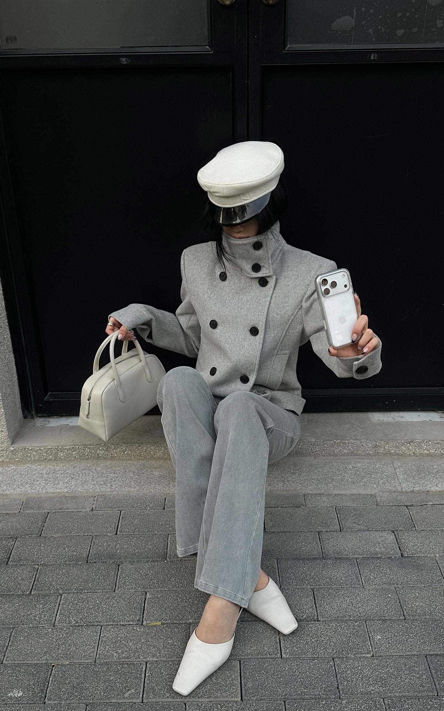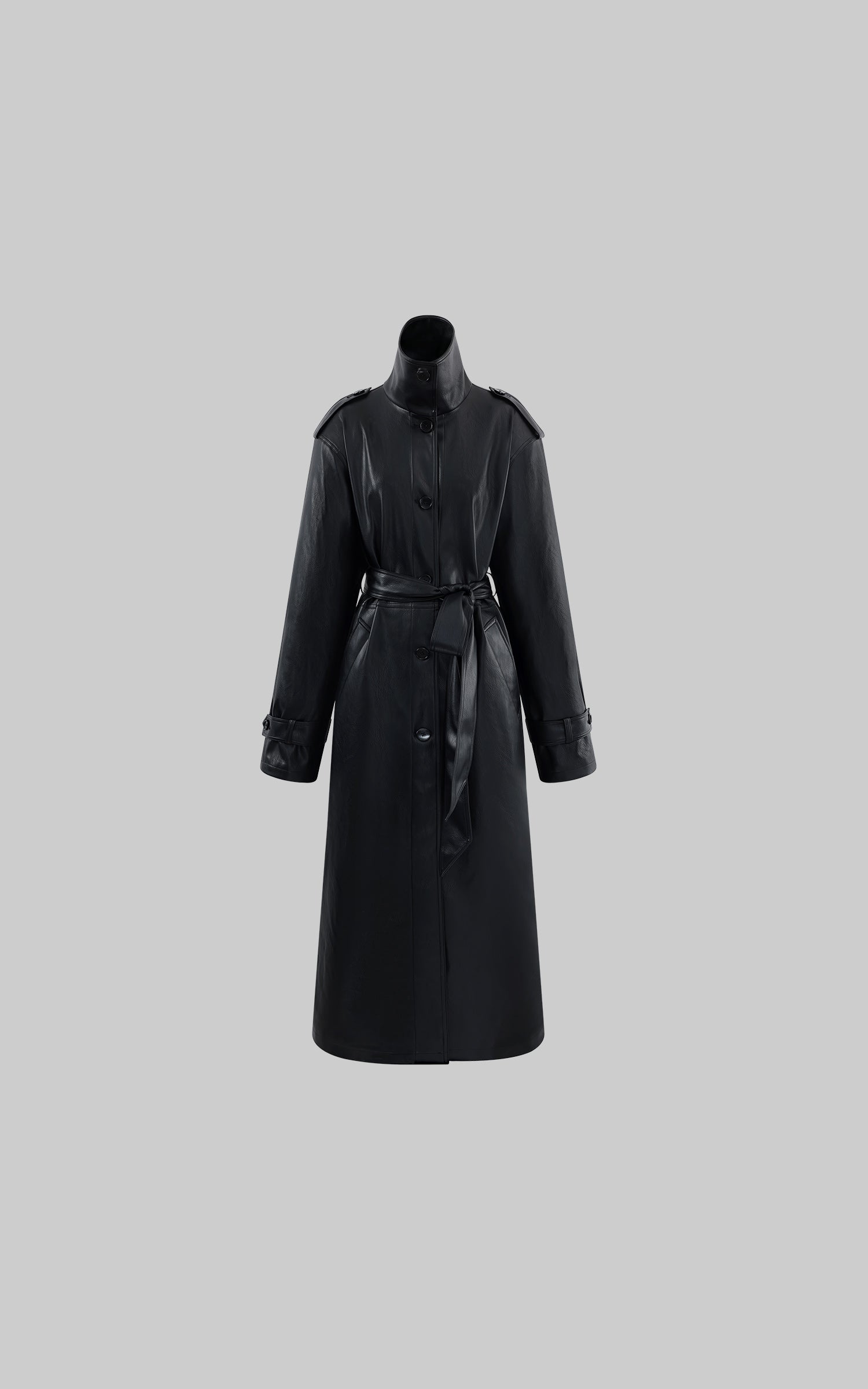 IAMXIAA Wool-Like High Neck Belted Double-Breasted Jacket