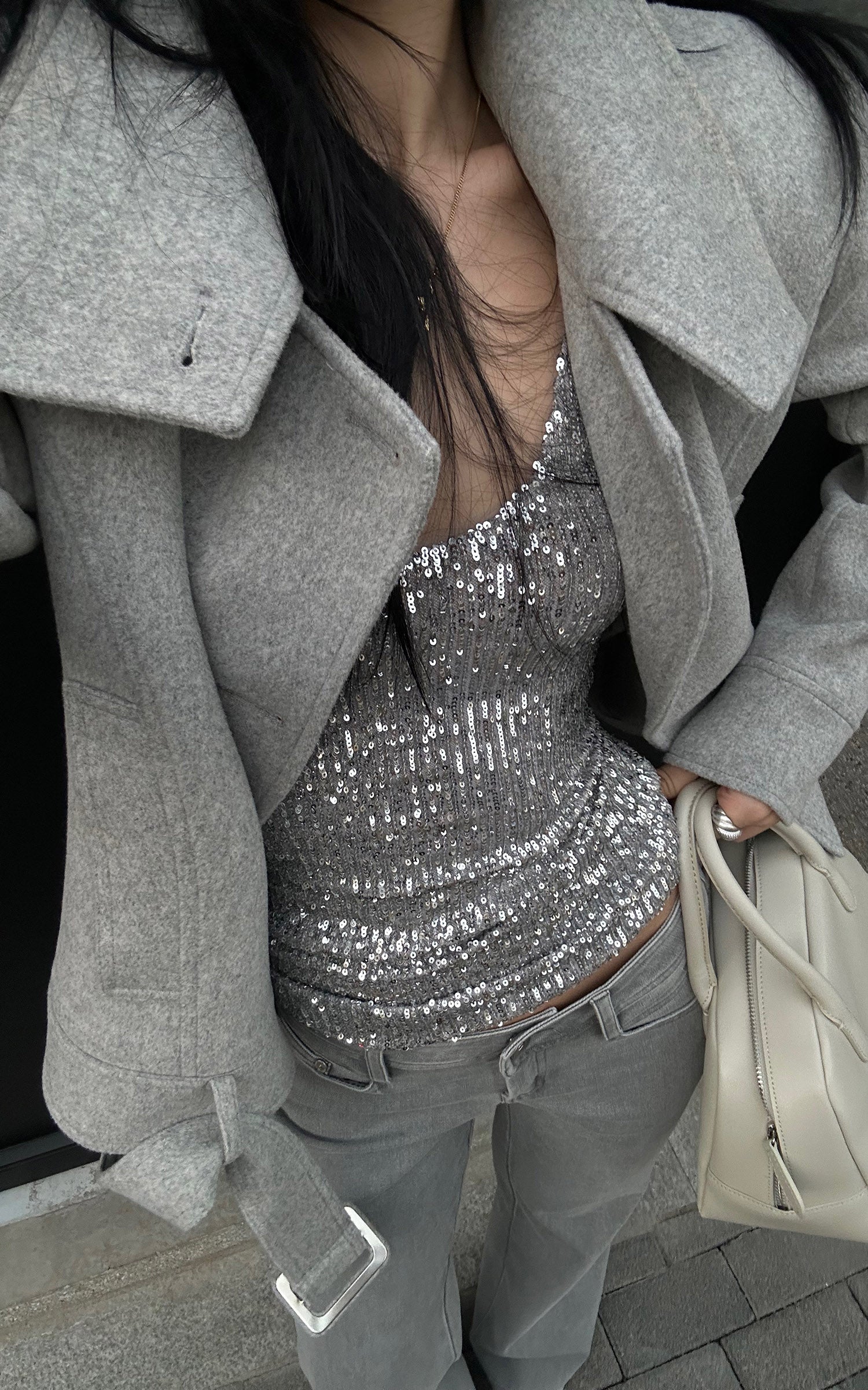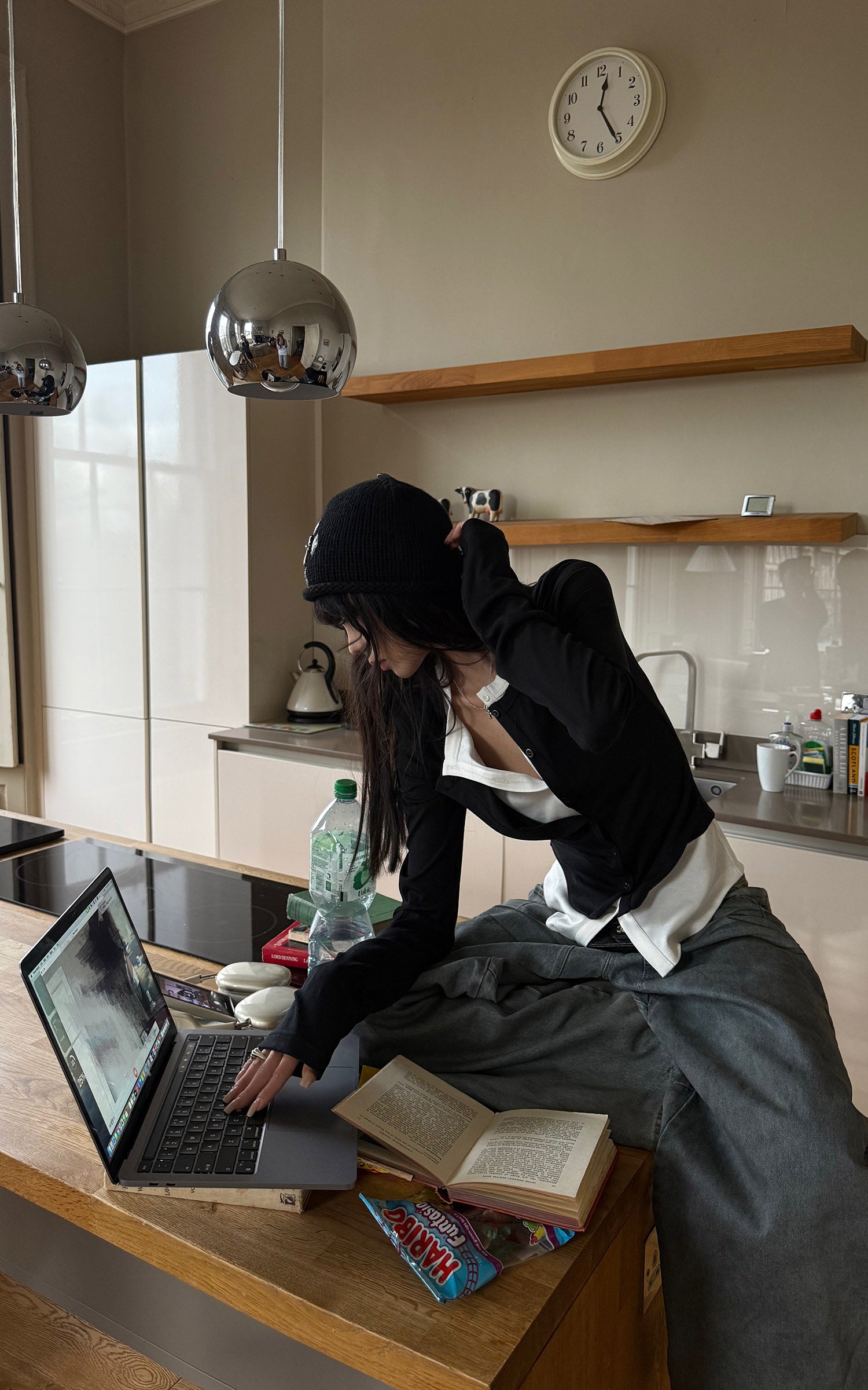 IAMXIAA Knit Cape & Ribbed Base Top Two-Piece Set
