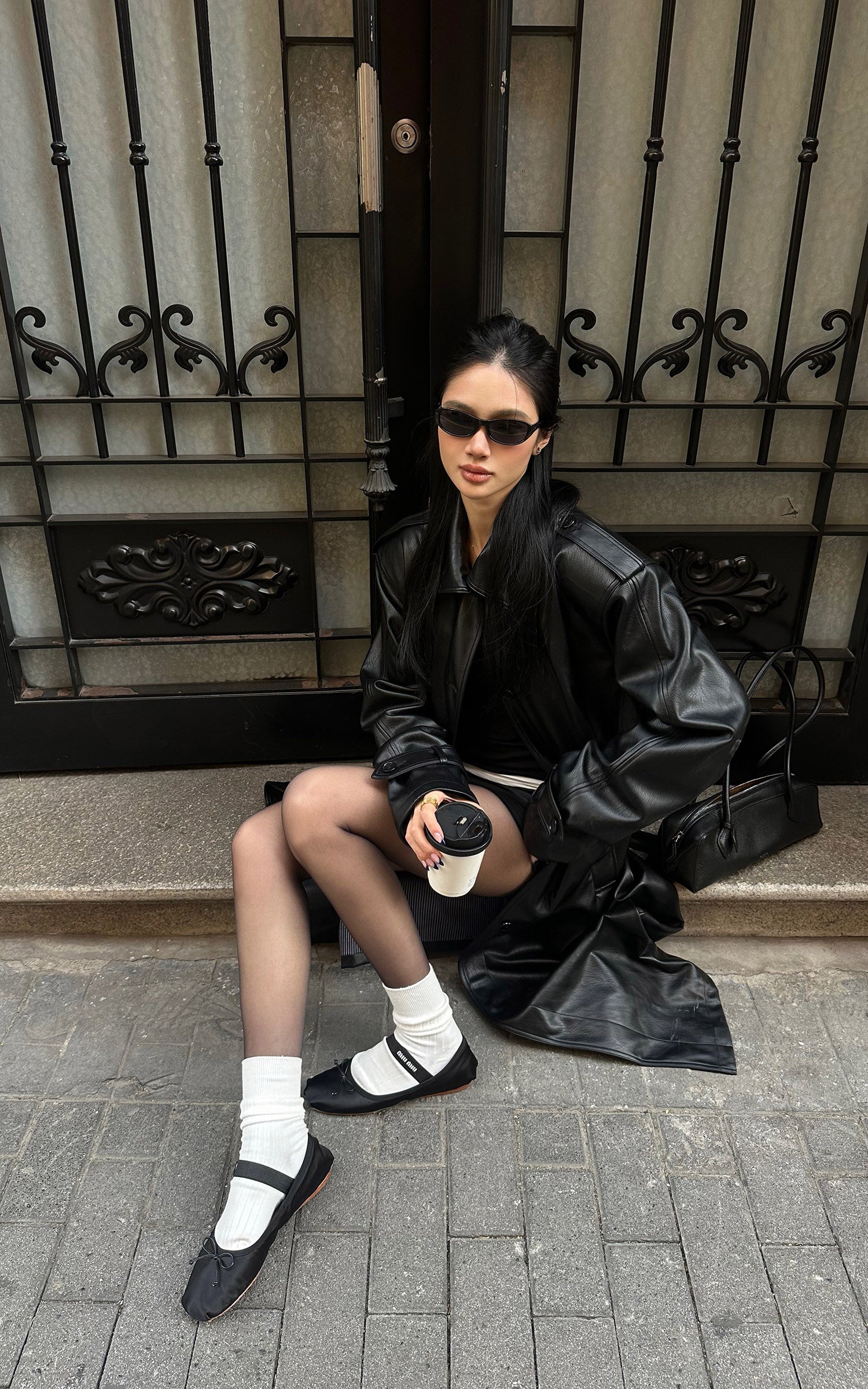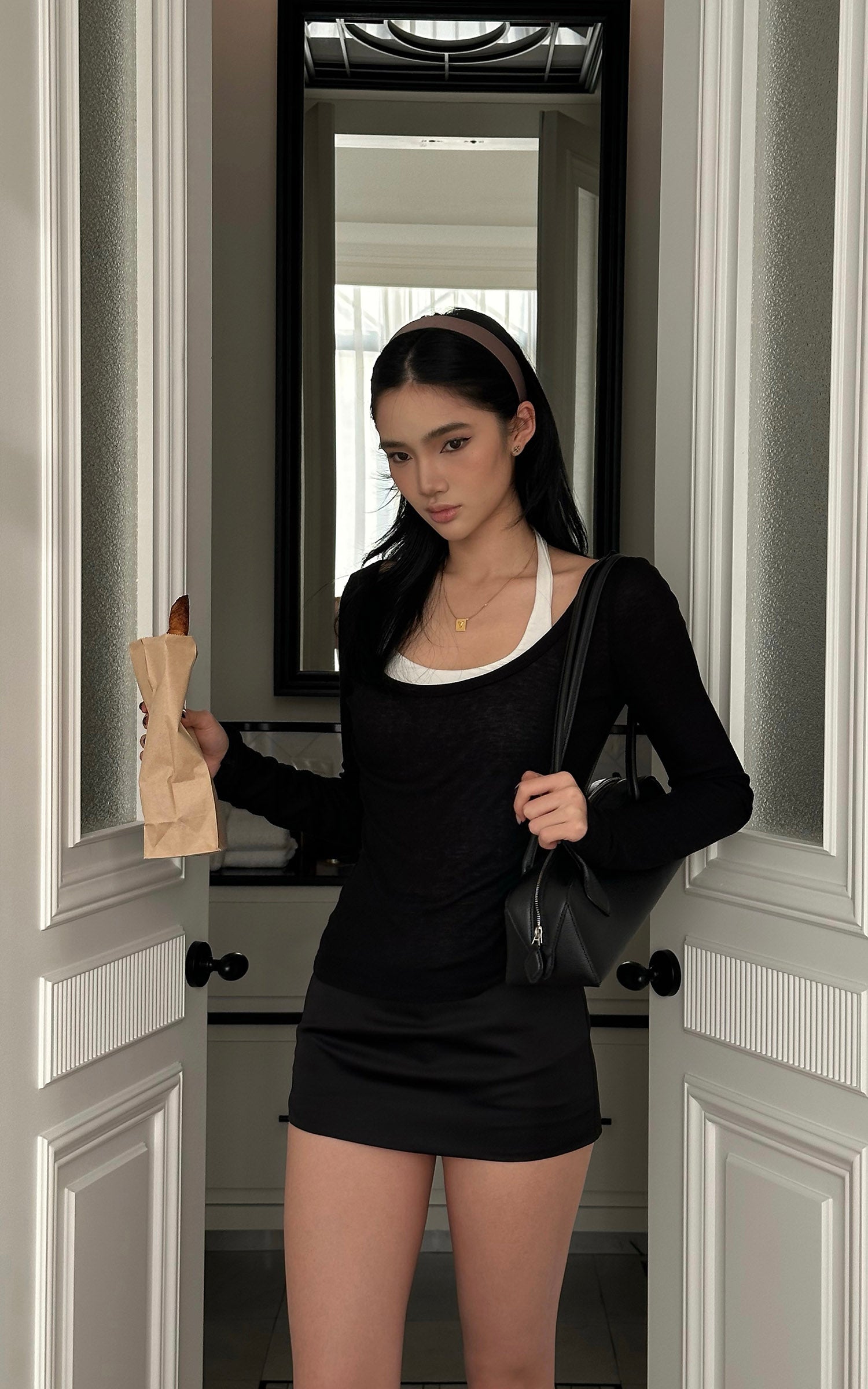 ROVENTE Layered Long Sleeve Top and Fitted Mini Skirt Two-Piece Set