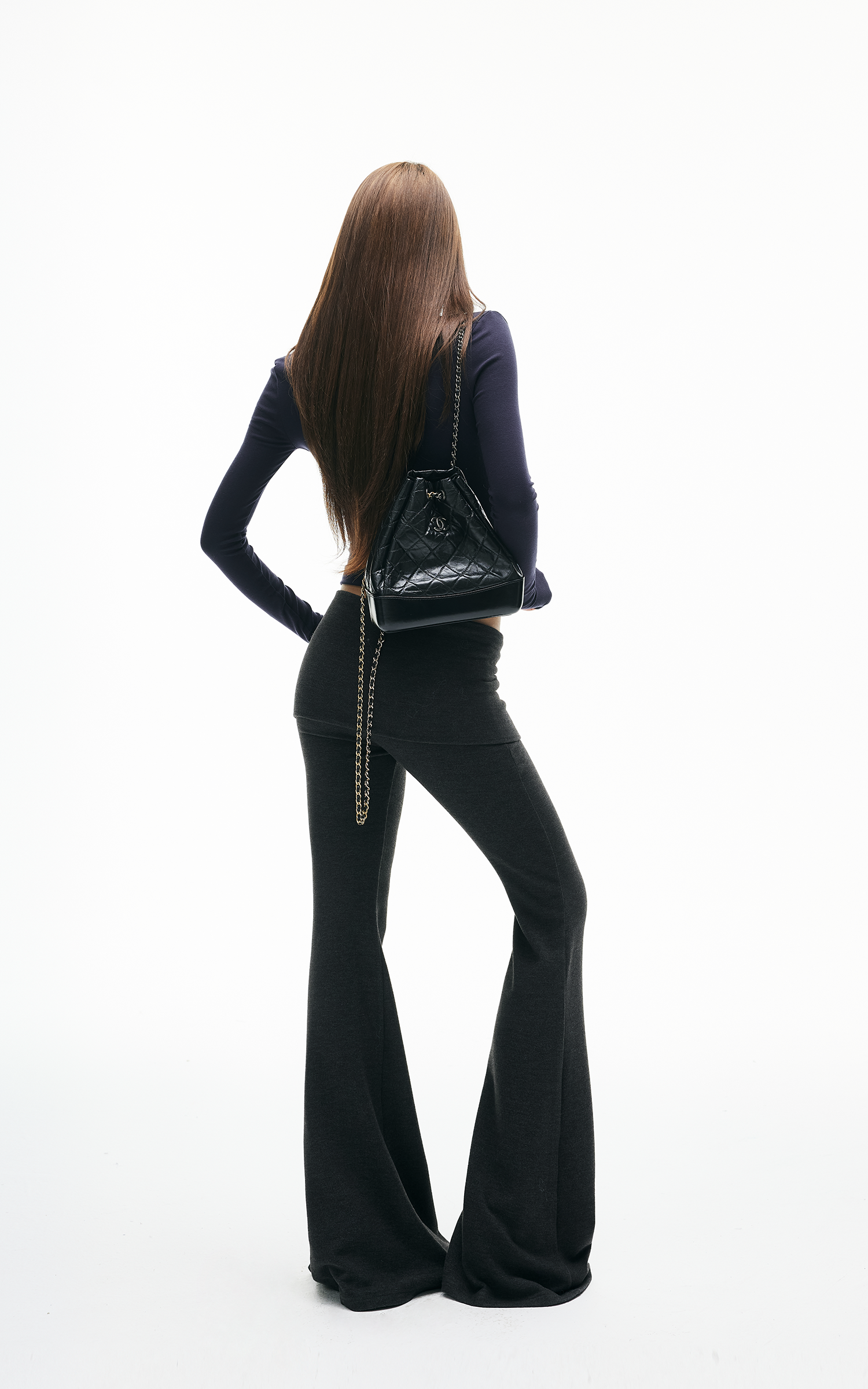 Rase le sol Gray Knot Detail High-Waisted Flared Pants