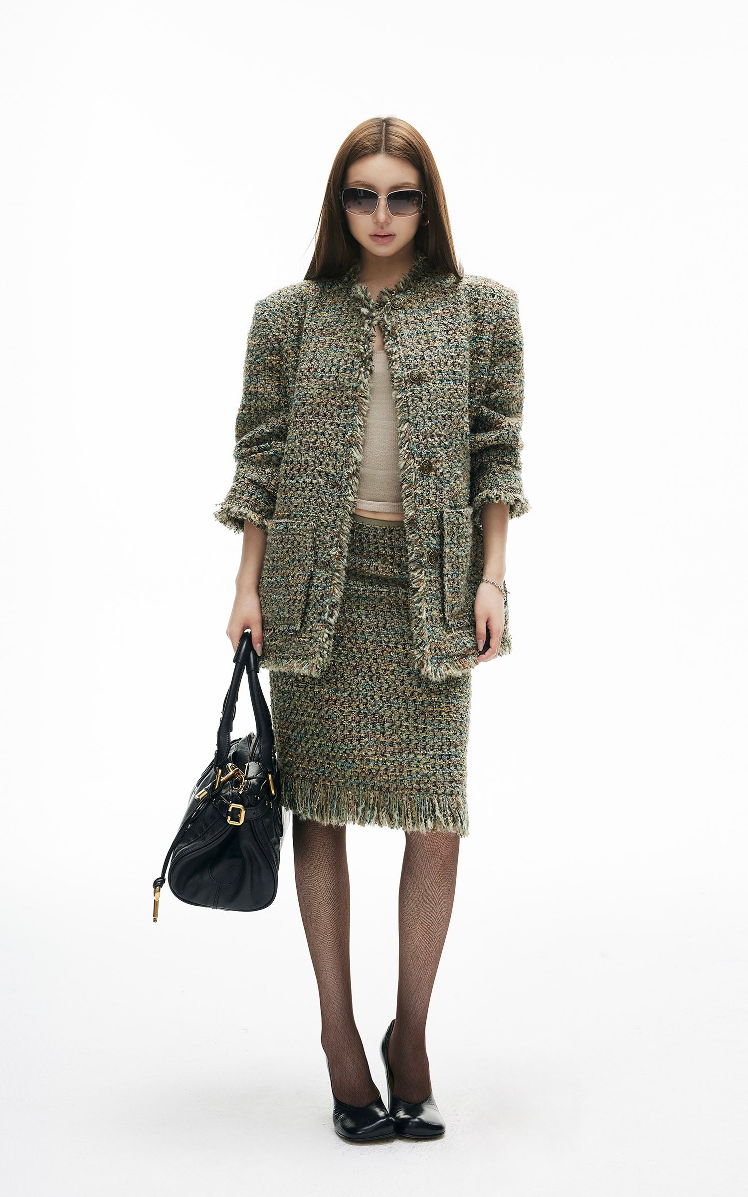 IAMXIAA Textured Tweed Jacket and Skirt Set