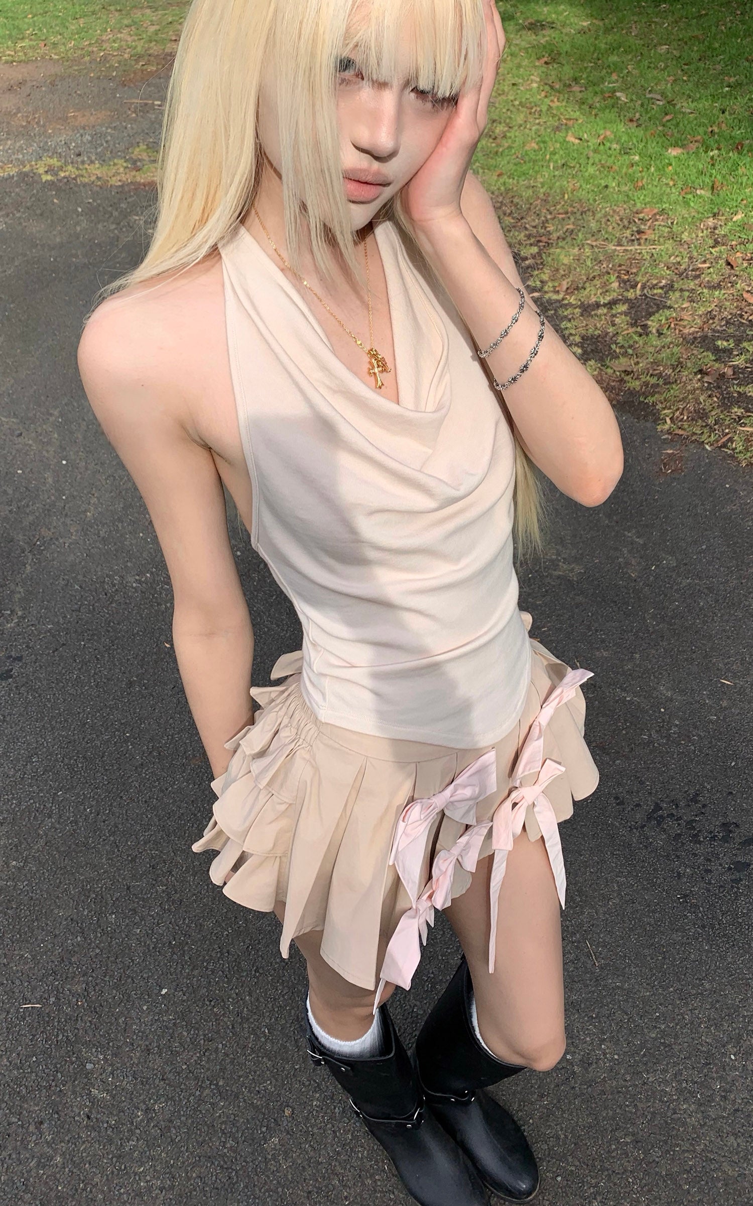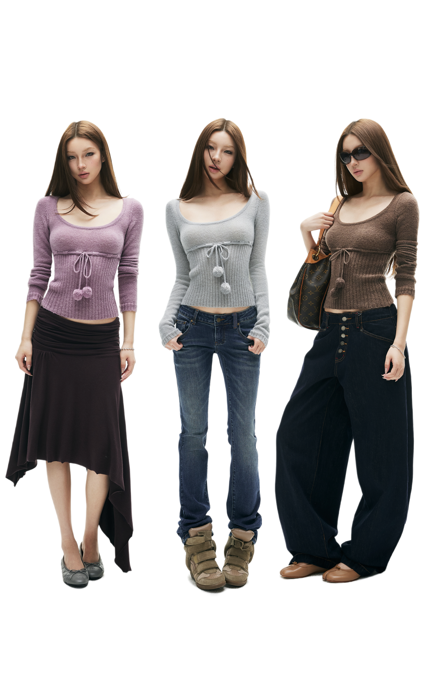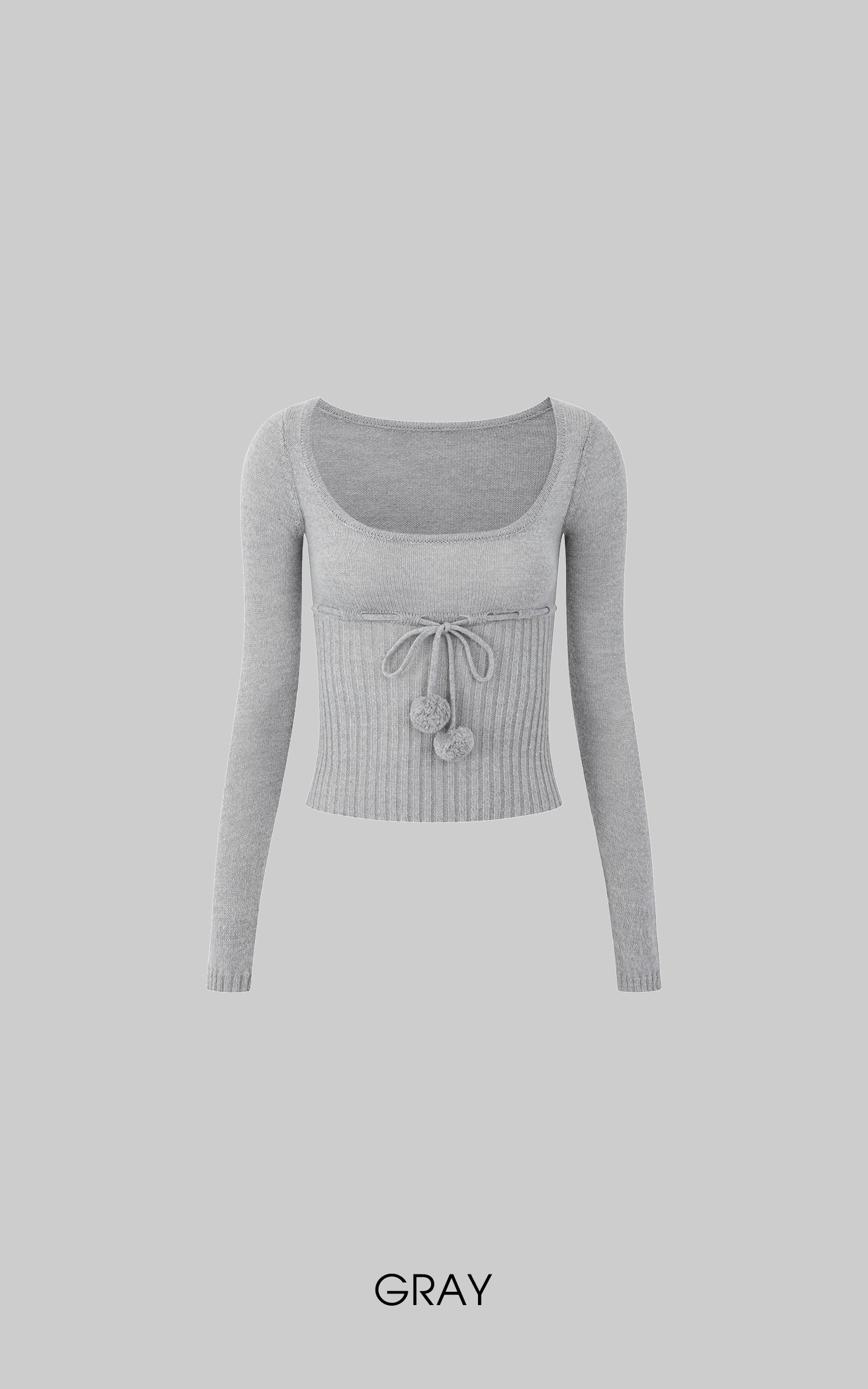 IAMXIAA Drawstring Ribbed Knit Long Sleeve Top