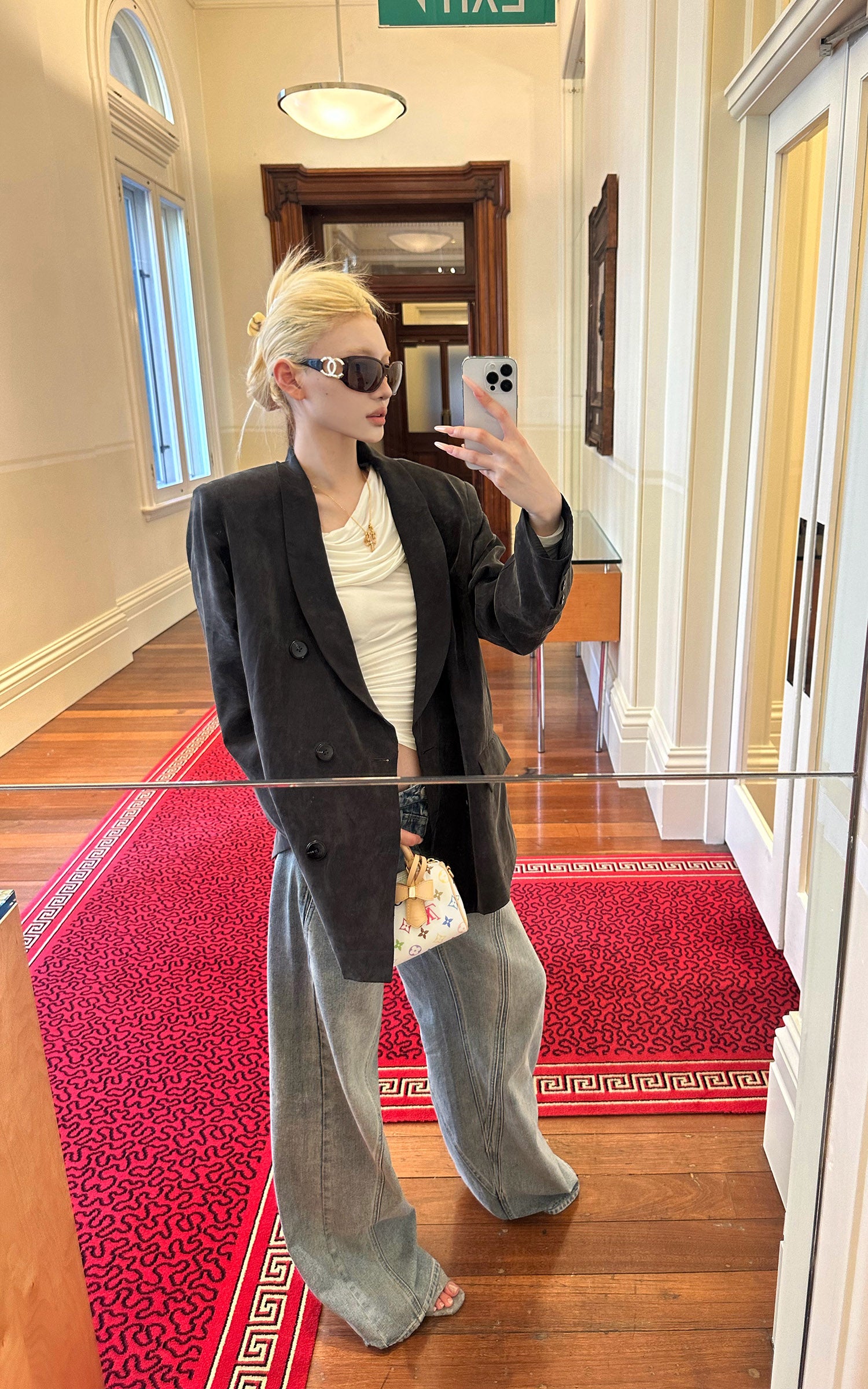 IAMXIAA Flocked Denim Belted Jacket