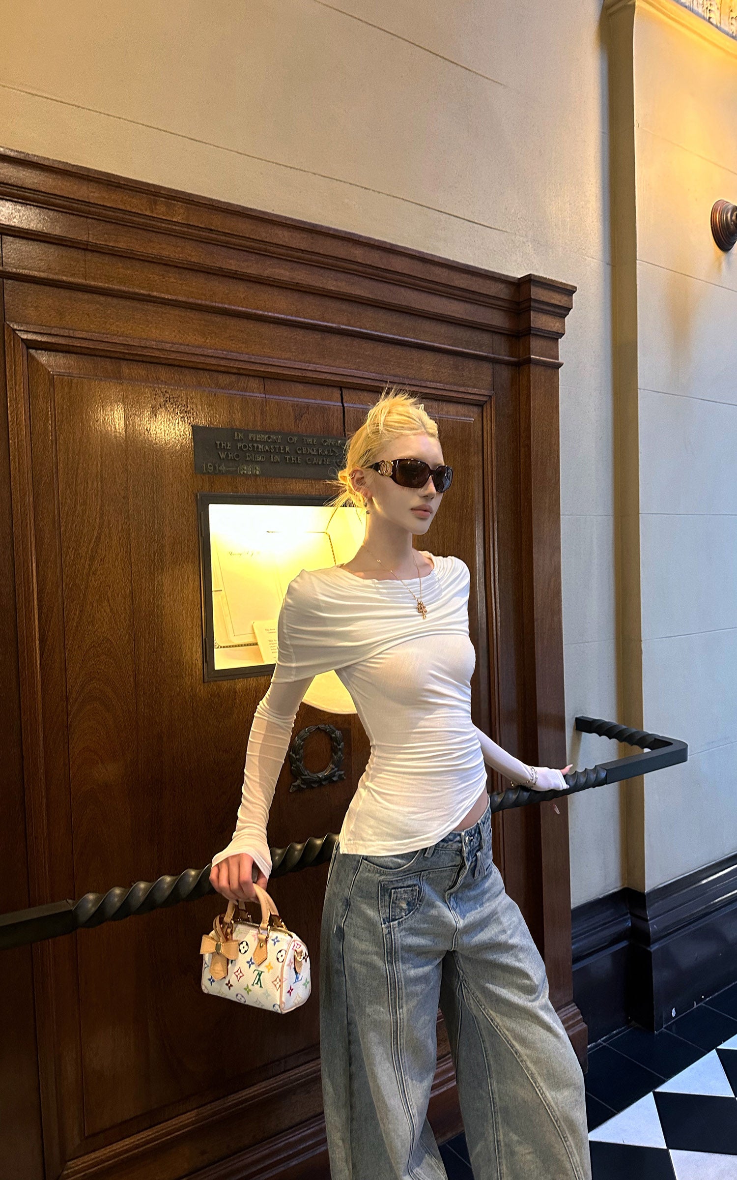 IAMXIAA Deep V Long Sleeve Slim Top