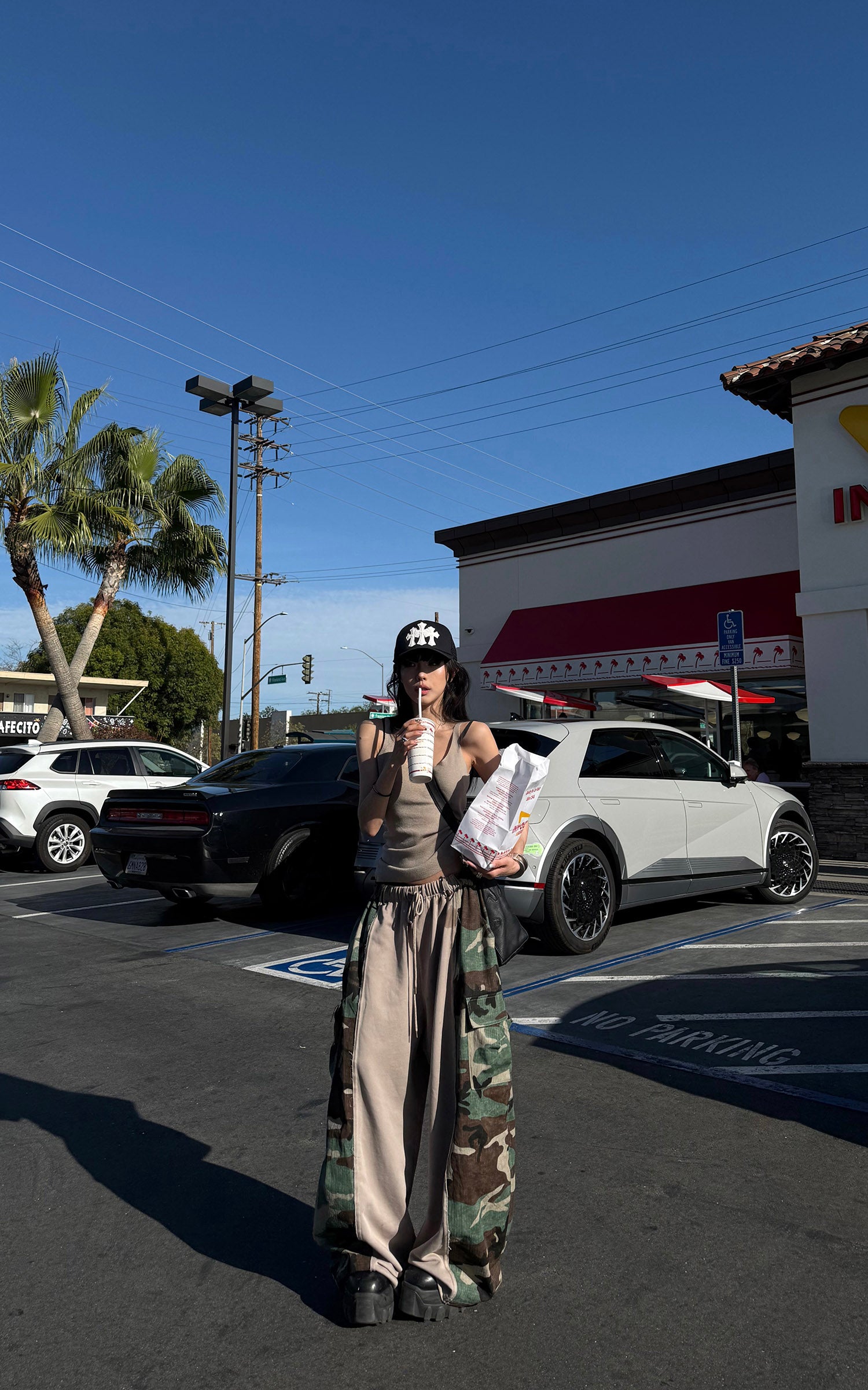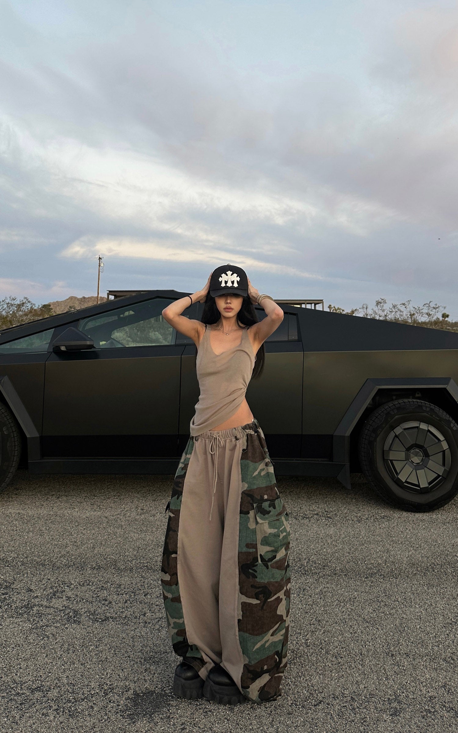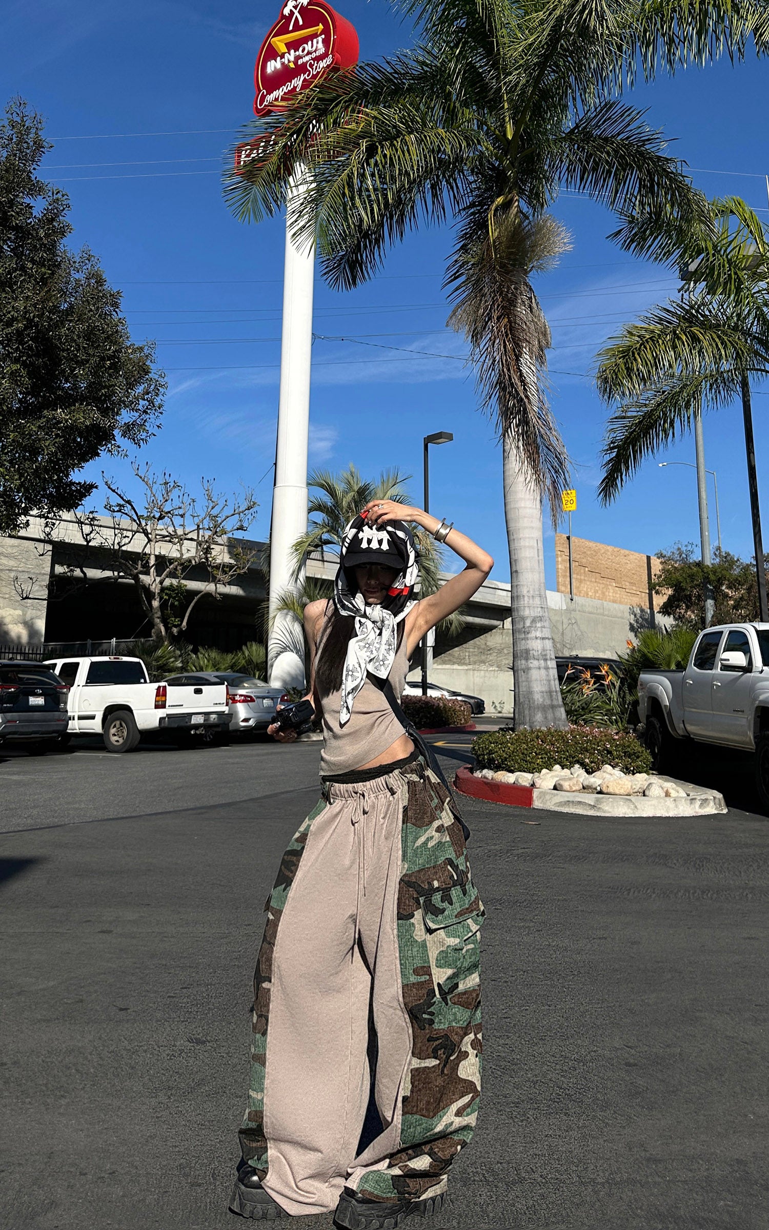 WARDEN EDGE Camo Panel Wide Leg Pants Drawstring Utility Cargo Pants