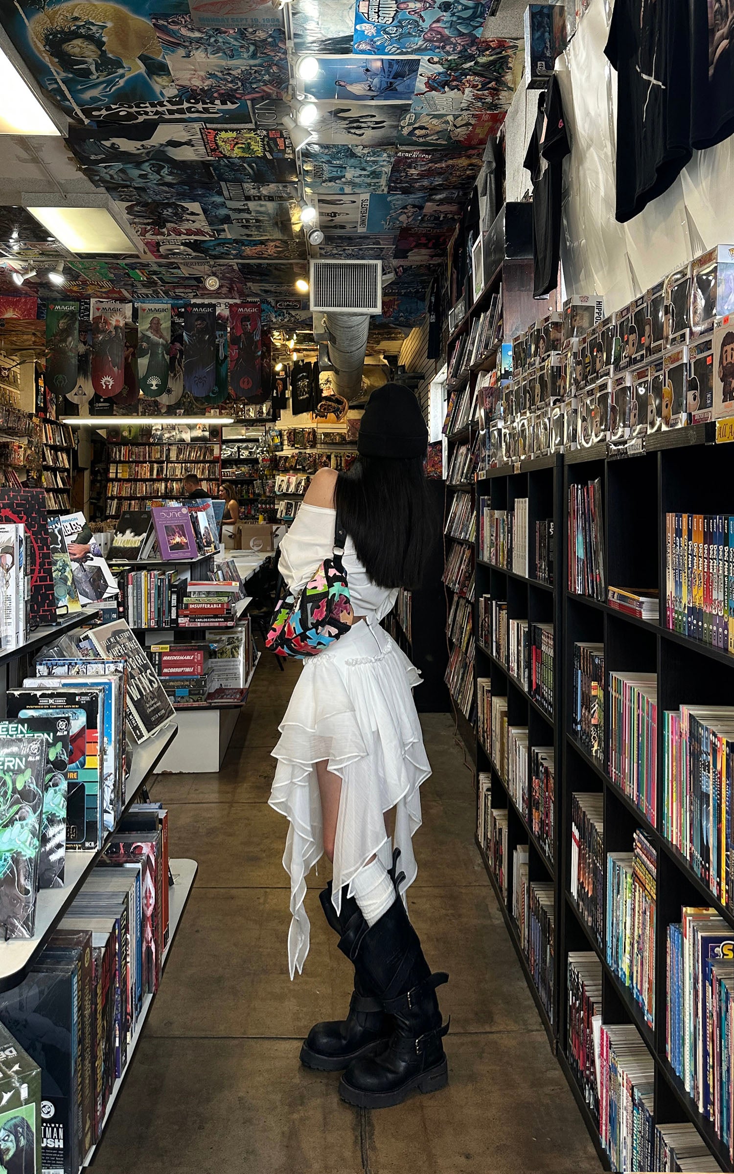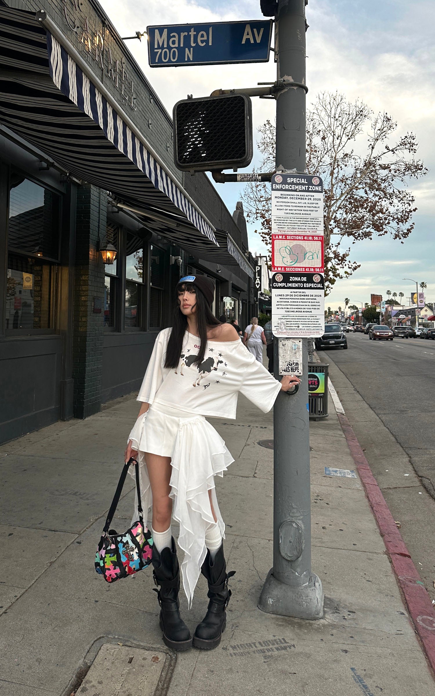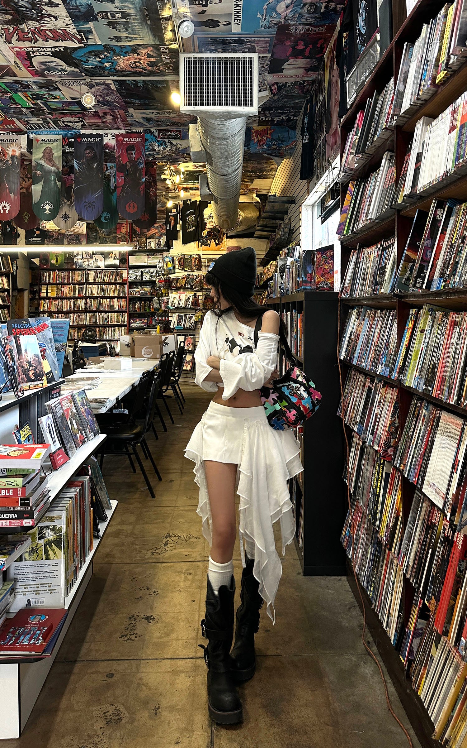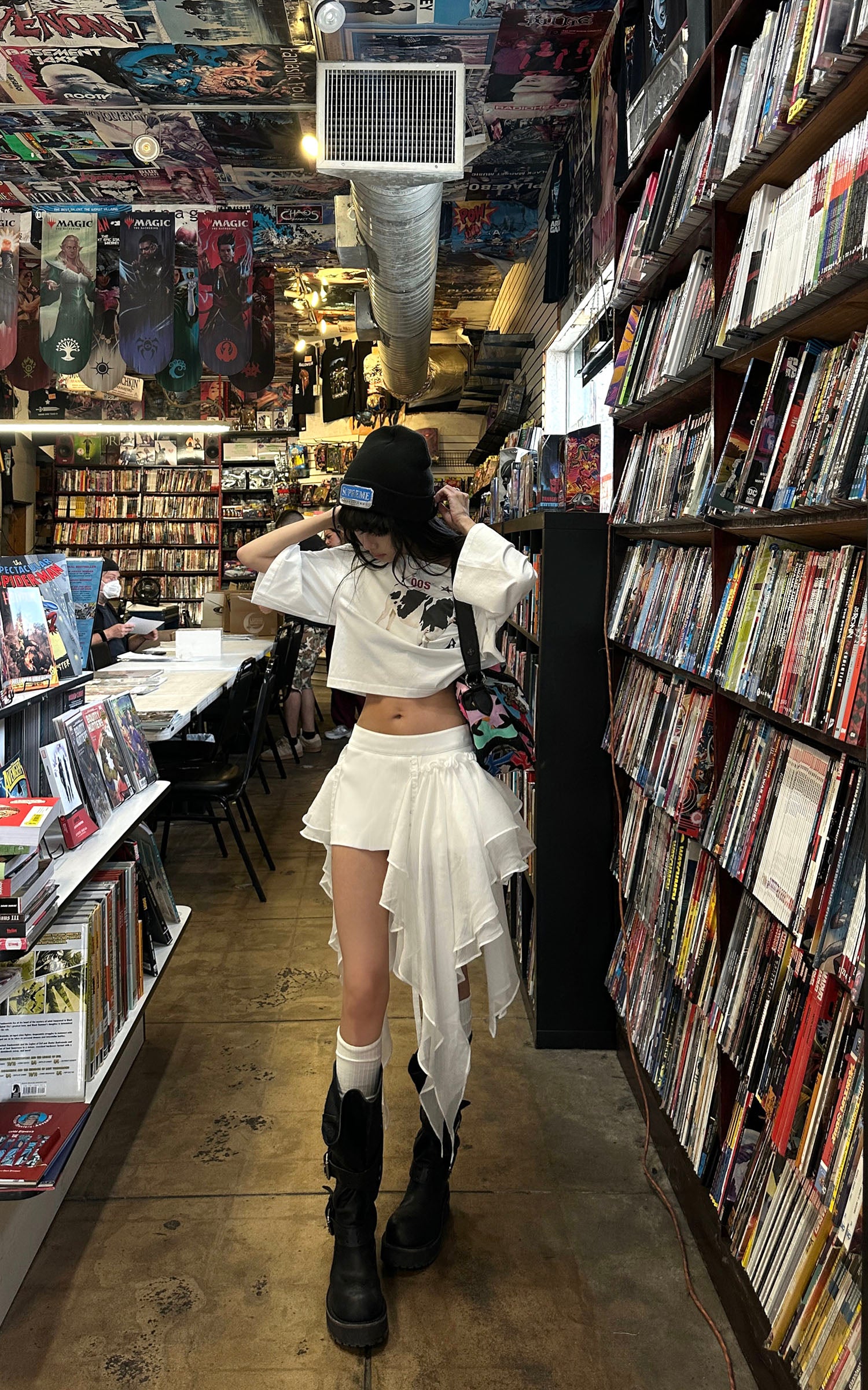 WARDEN EDGE Asymmetric Graphic Cropped Top Loose Off Shoulder Tee
