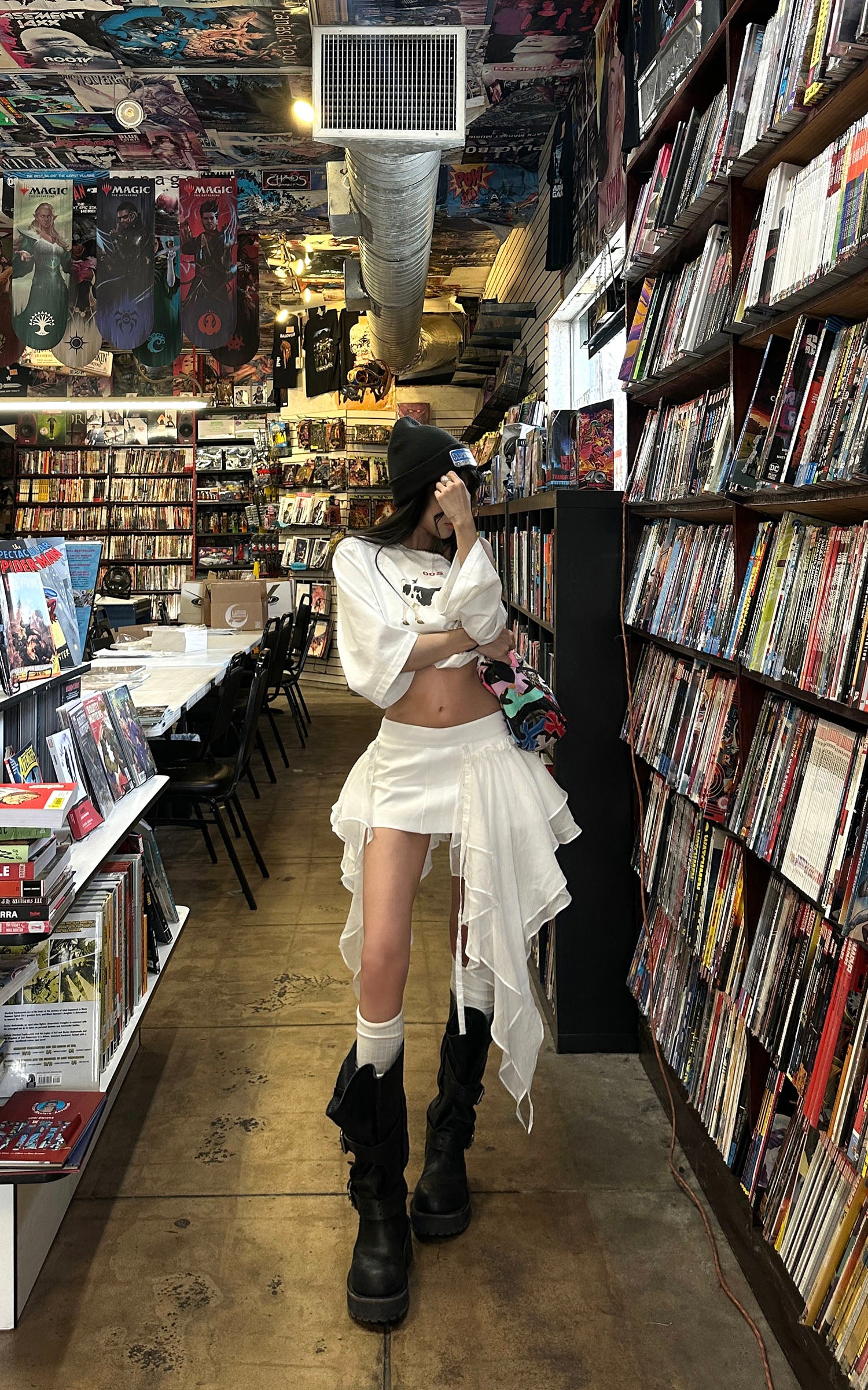 WARDEN EDGE Bow Hood Cropped Zip Hoodie and Pleated Mini Skirt Set