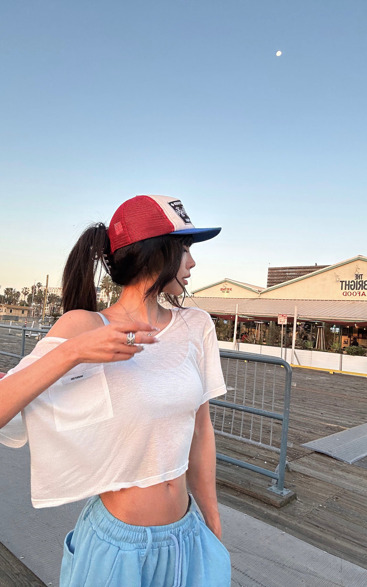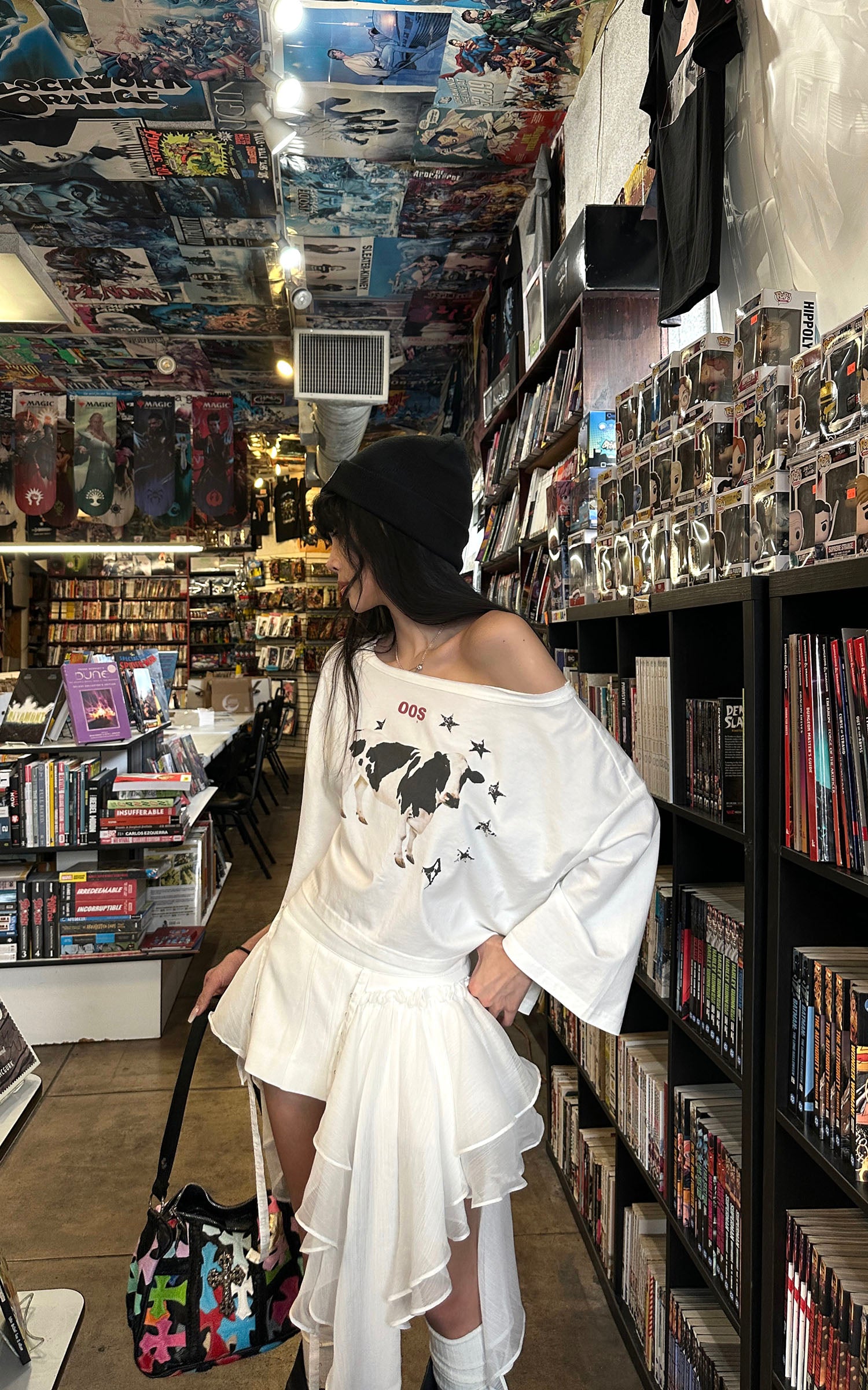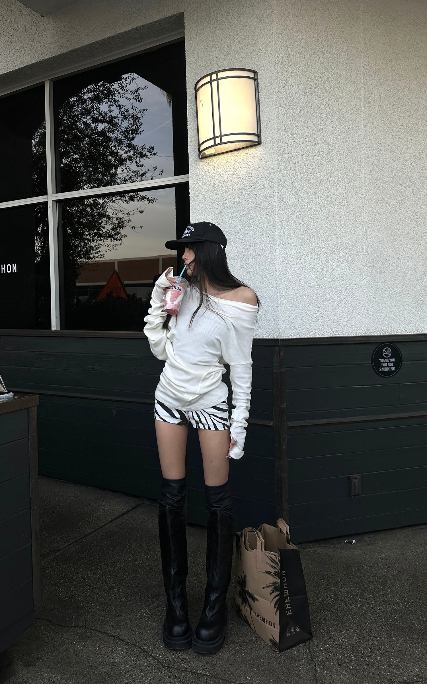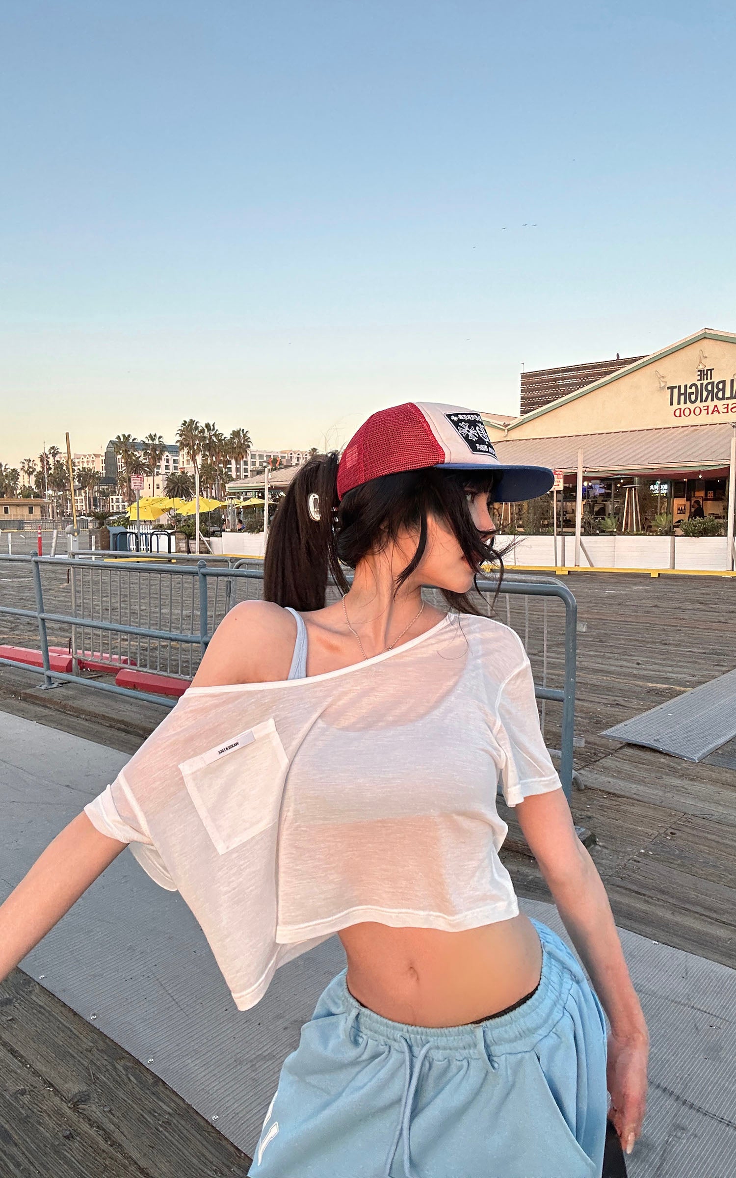 IAMXIAA Off-Shoulder Drawstring Hem Oversized Sweatshirt