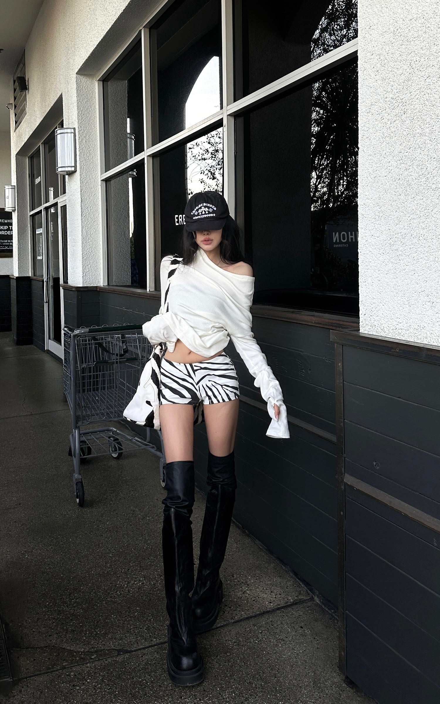 WARDEN EDGE Asymmetric Off-Shoulder Long Sleeve T-Shirt