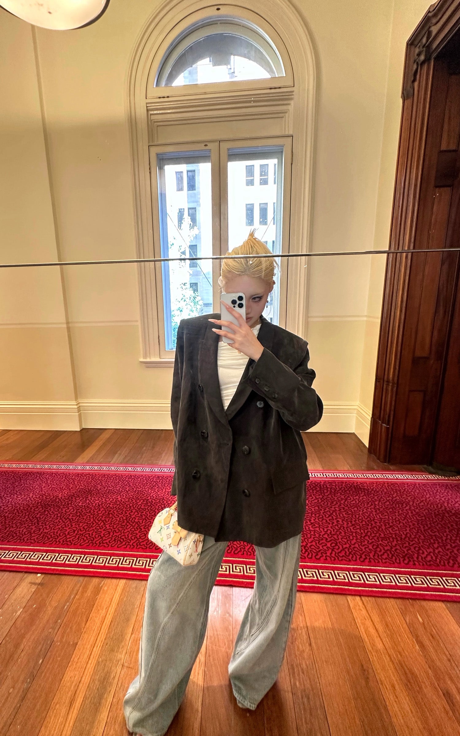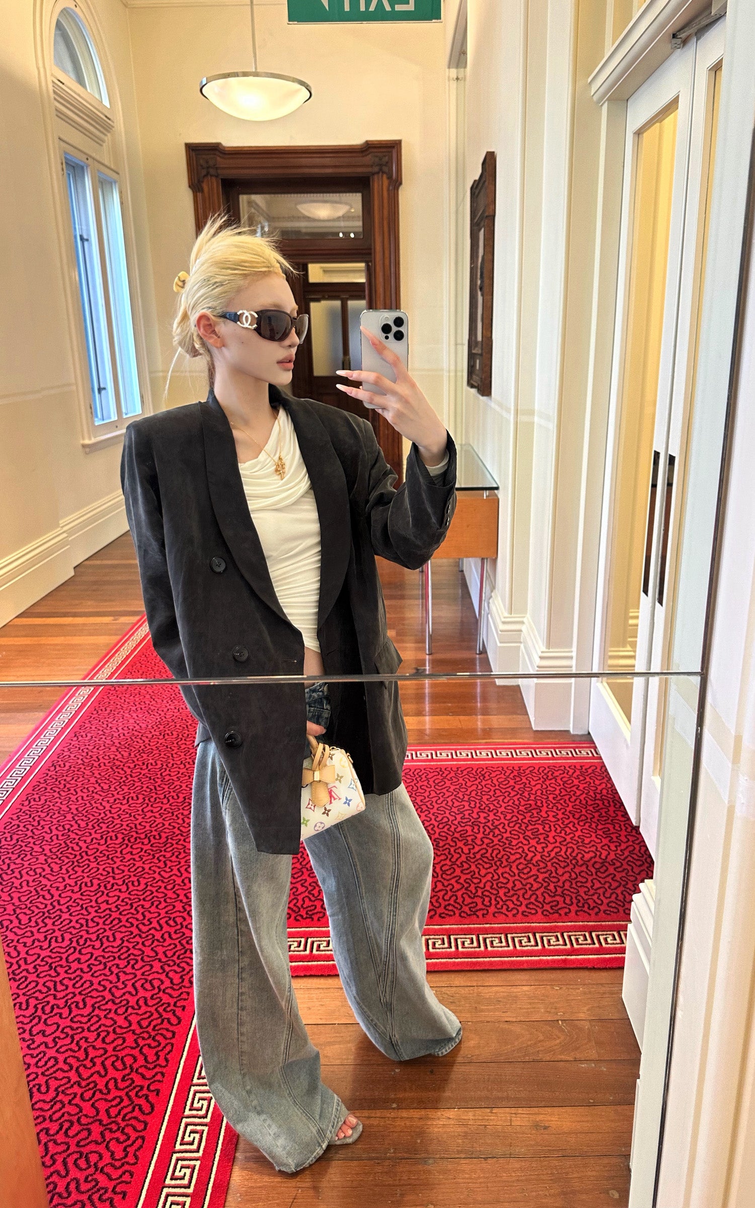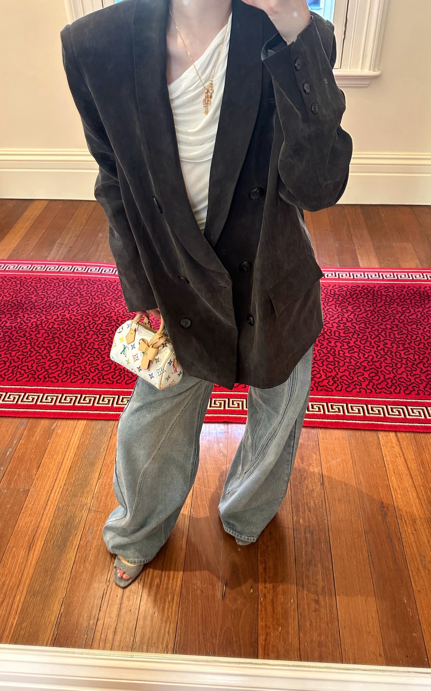 Rase Le Sol Washed Double-Breasted Blazer Oversized Tailored Jacket