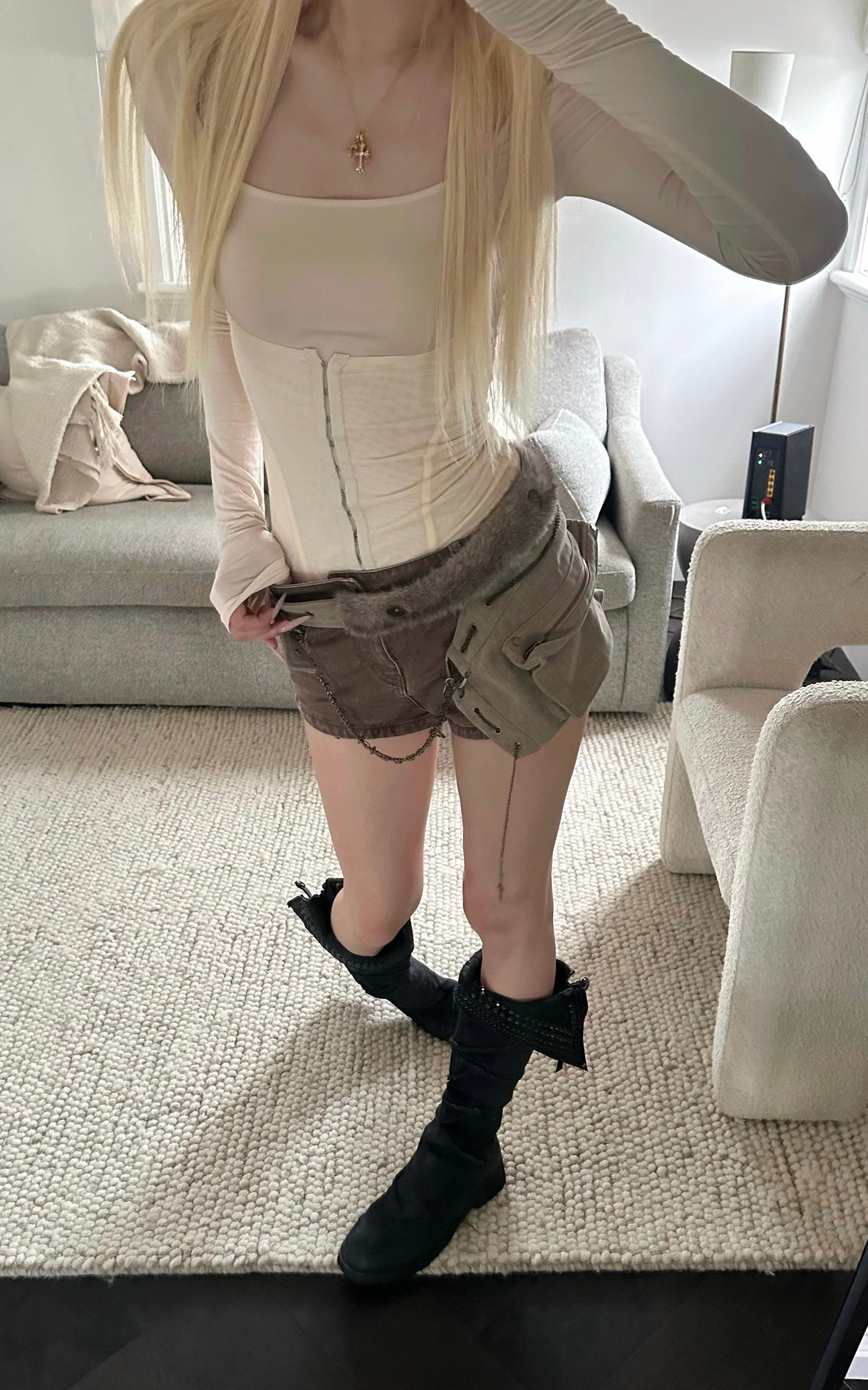WARDEN EDGE Cable Knit Sweater & Shorts Set with Matching Leg Warmers