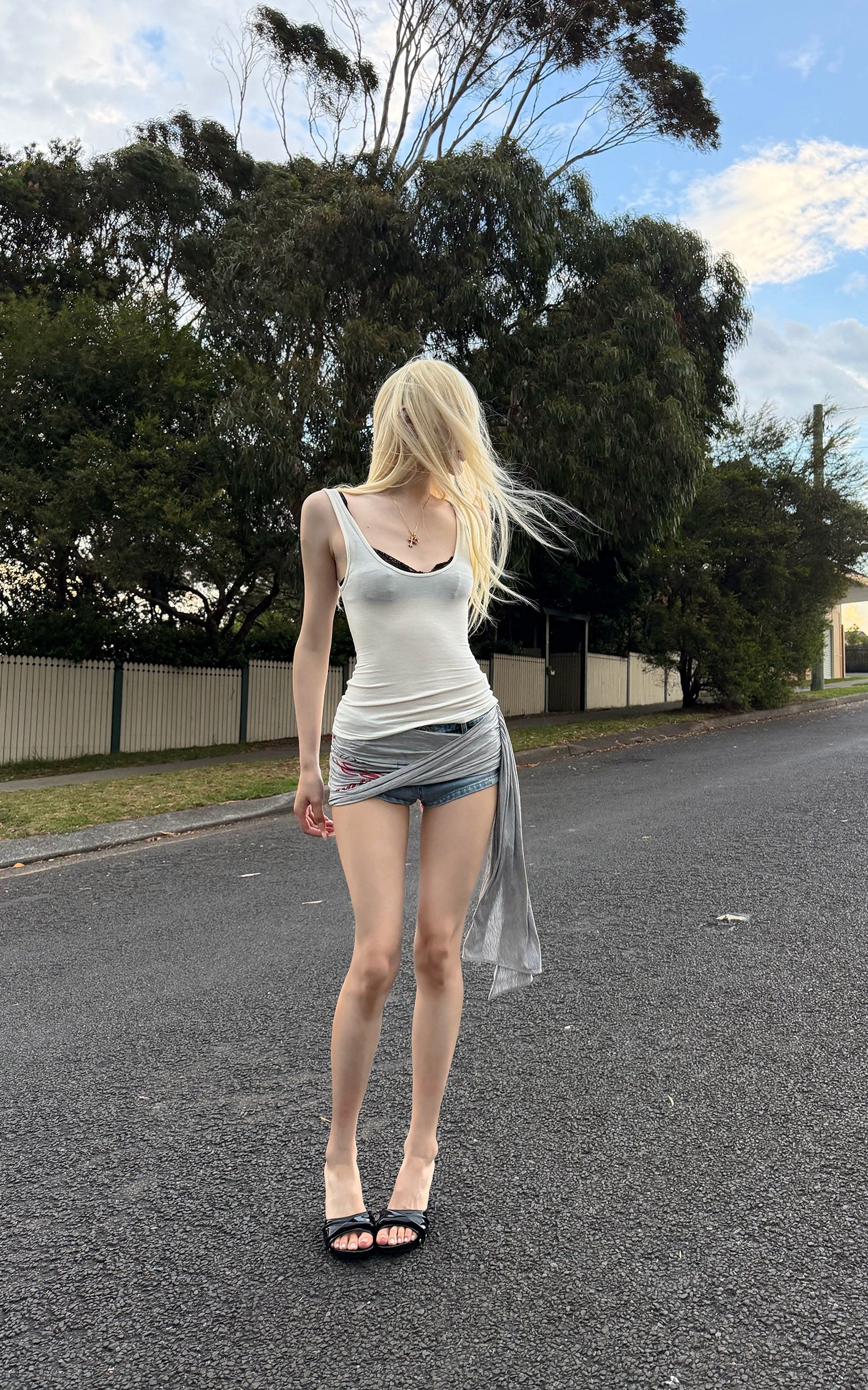 Rase le sol Distressed Denim Shorts with Asymmetric Cut and Raw Edge Finish