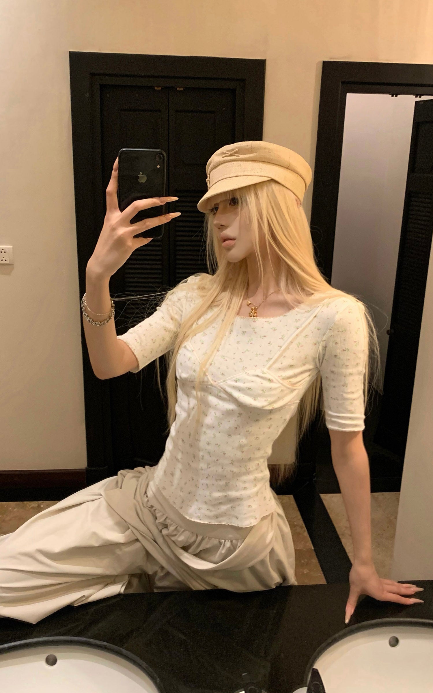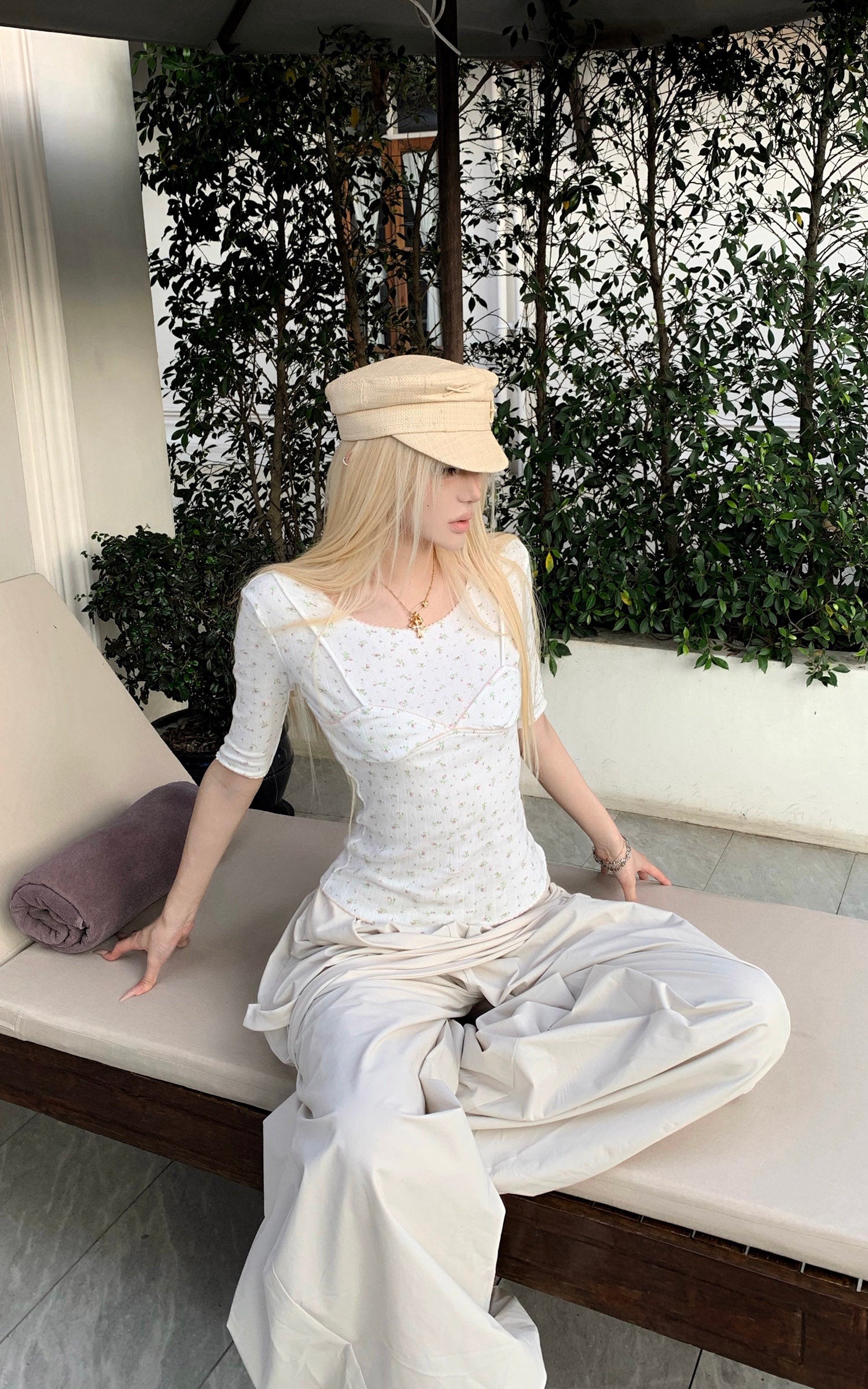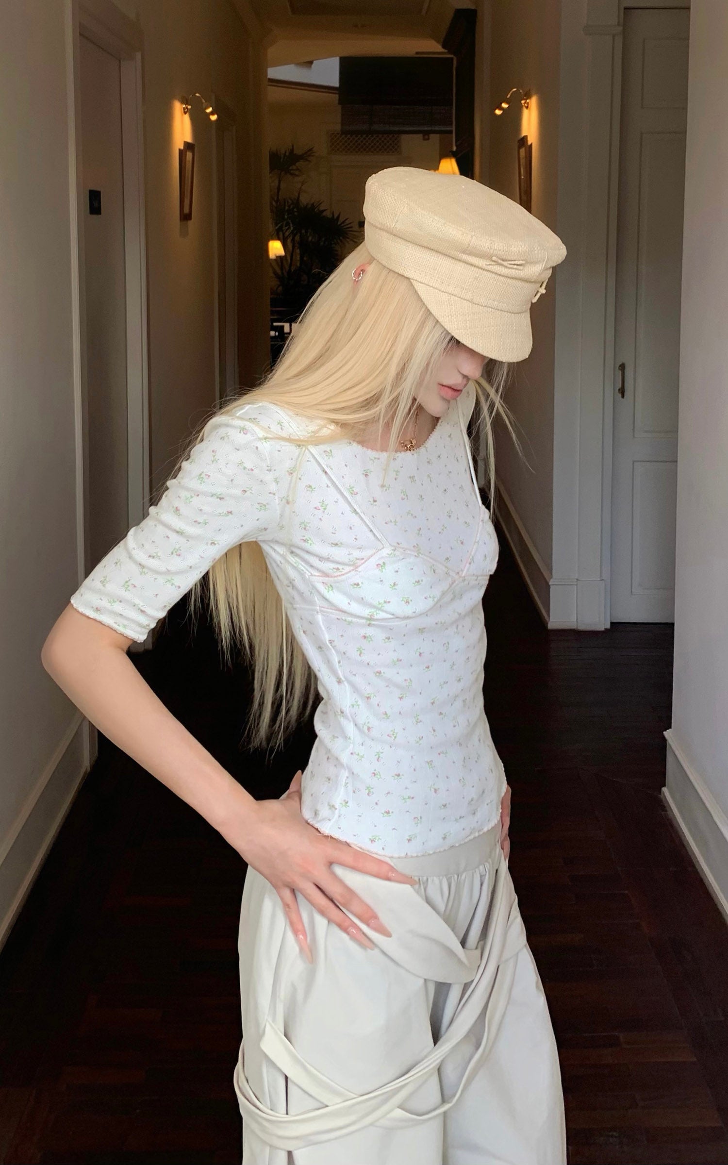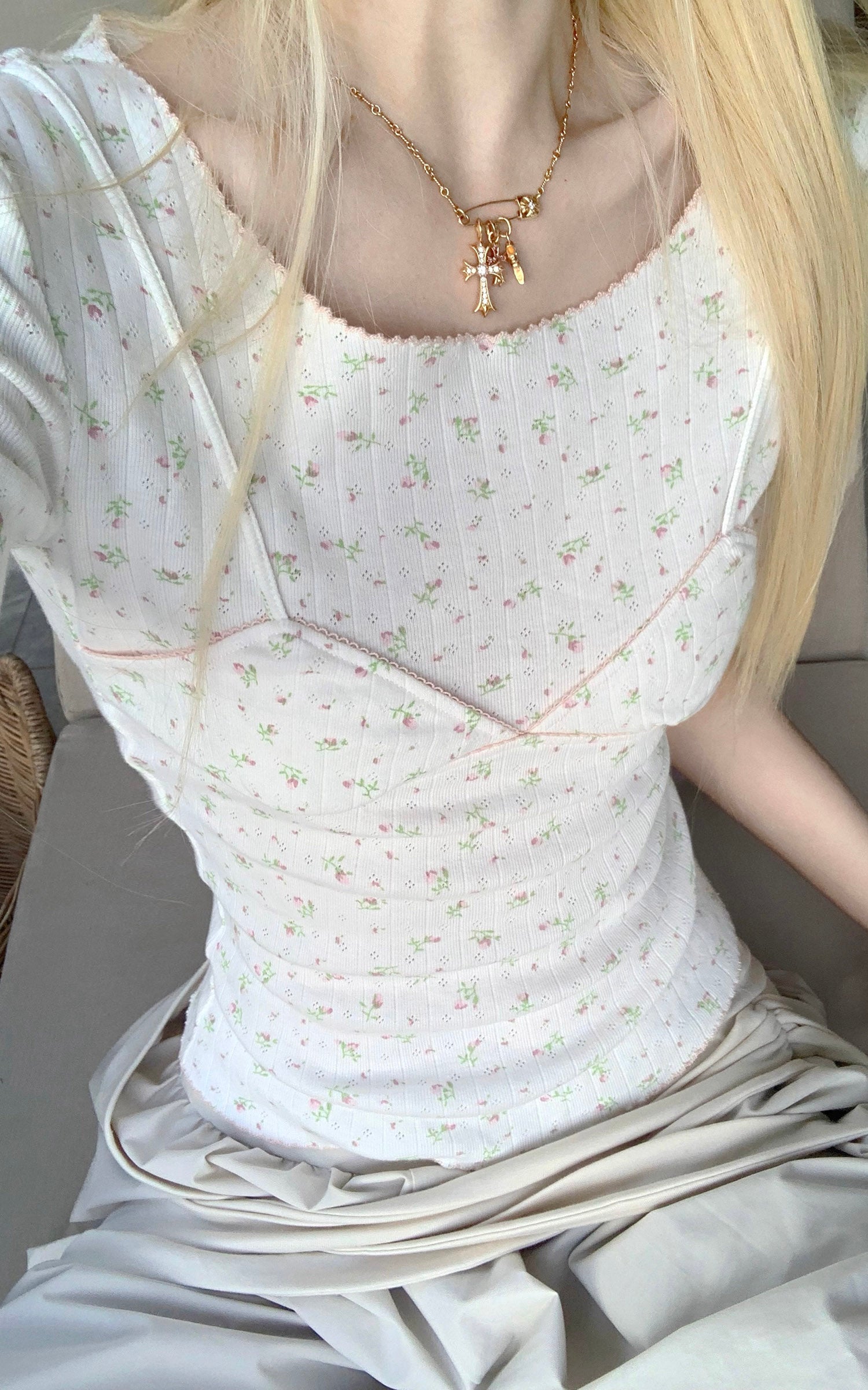 Rase le sol Floral Corset Seam Fitted Top