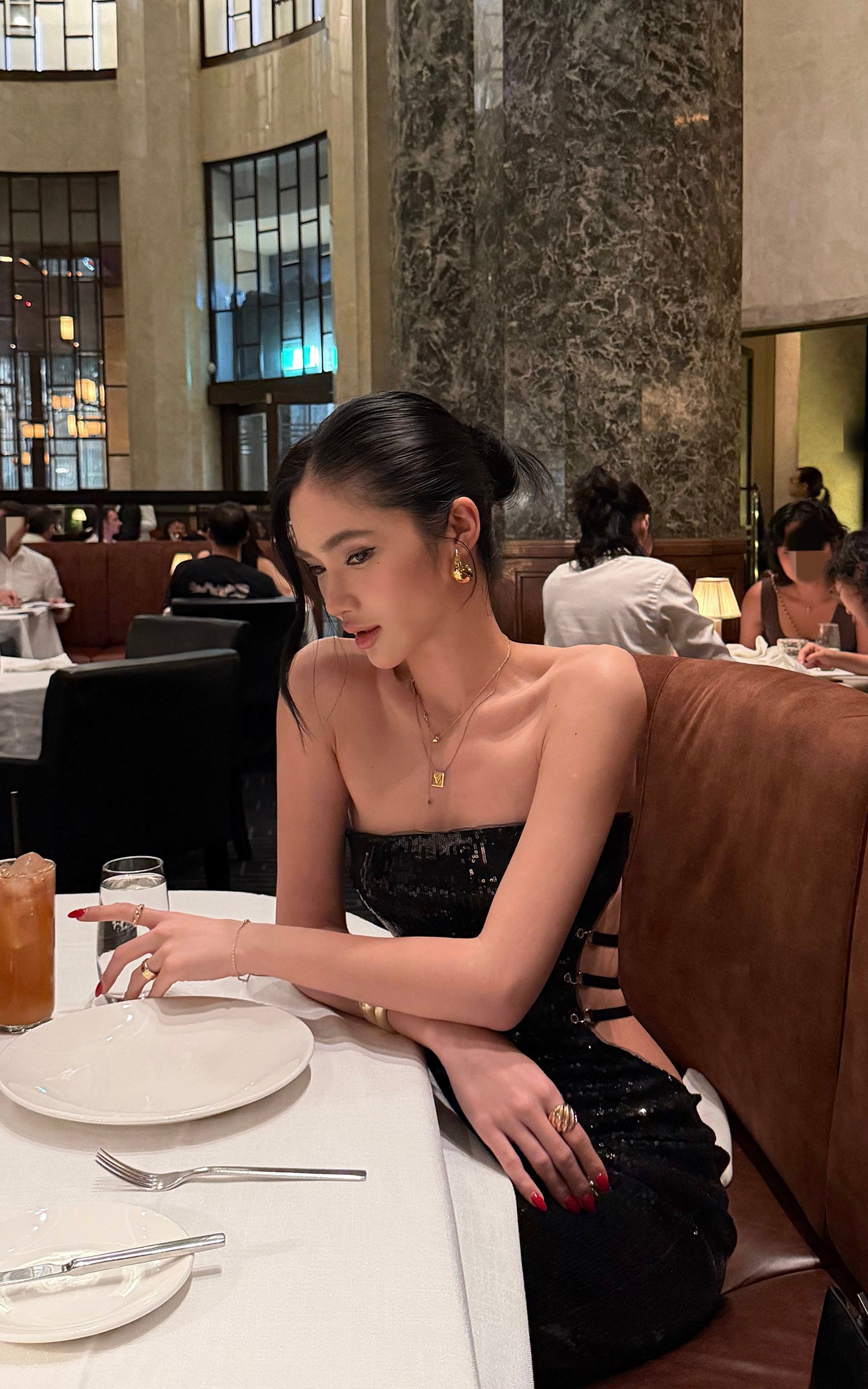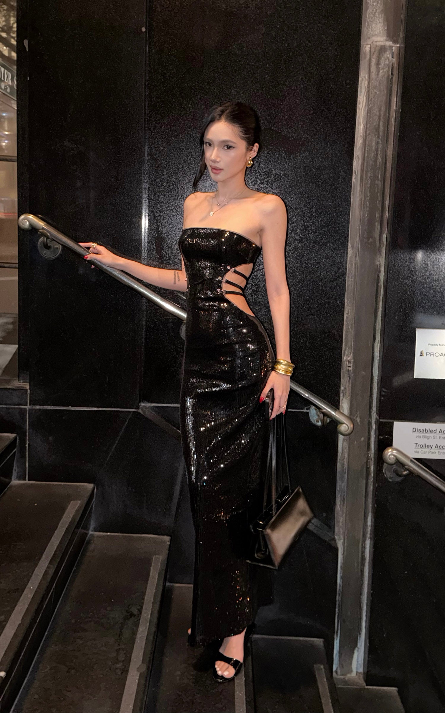 ROVENTE Sequin Strapless Cut-Out Bodycon Dress