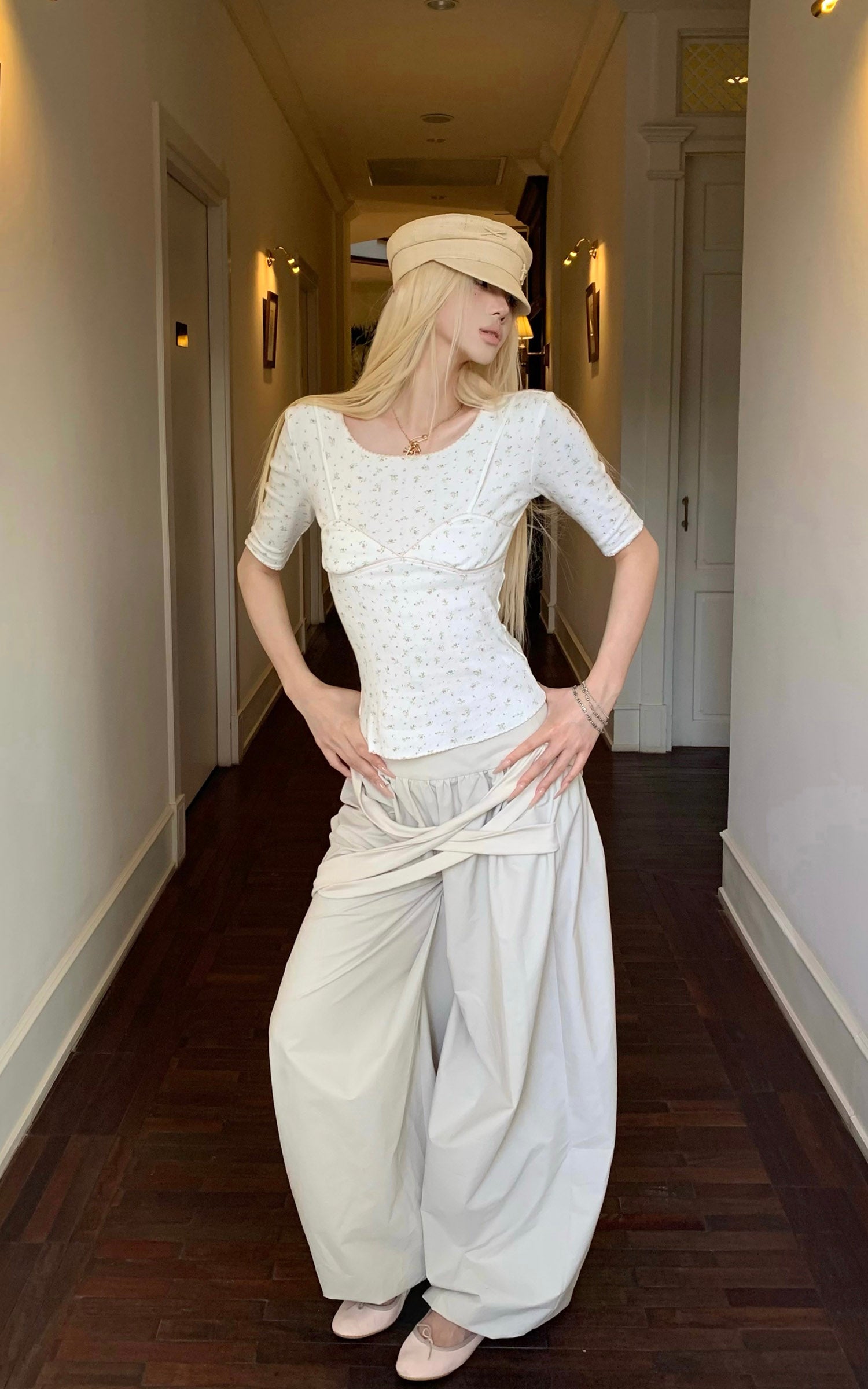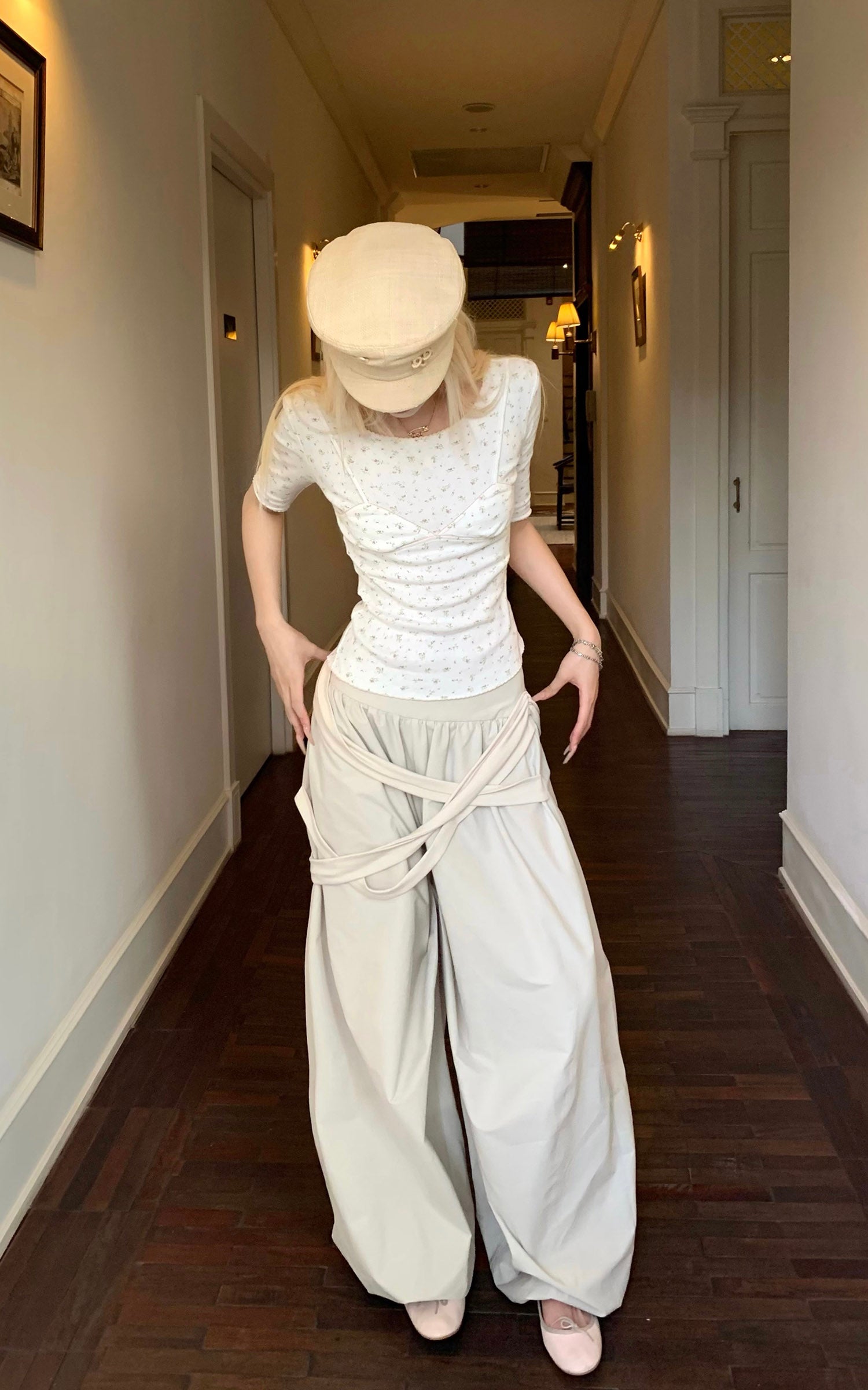 0122stepll Gathered Waist Barrel Pants