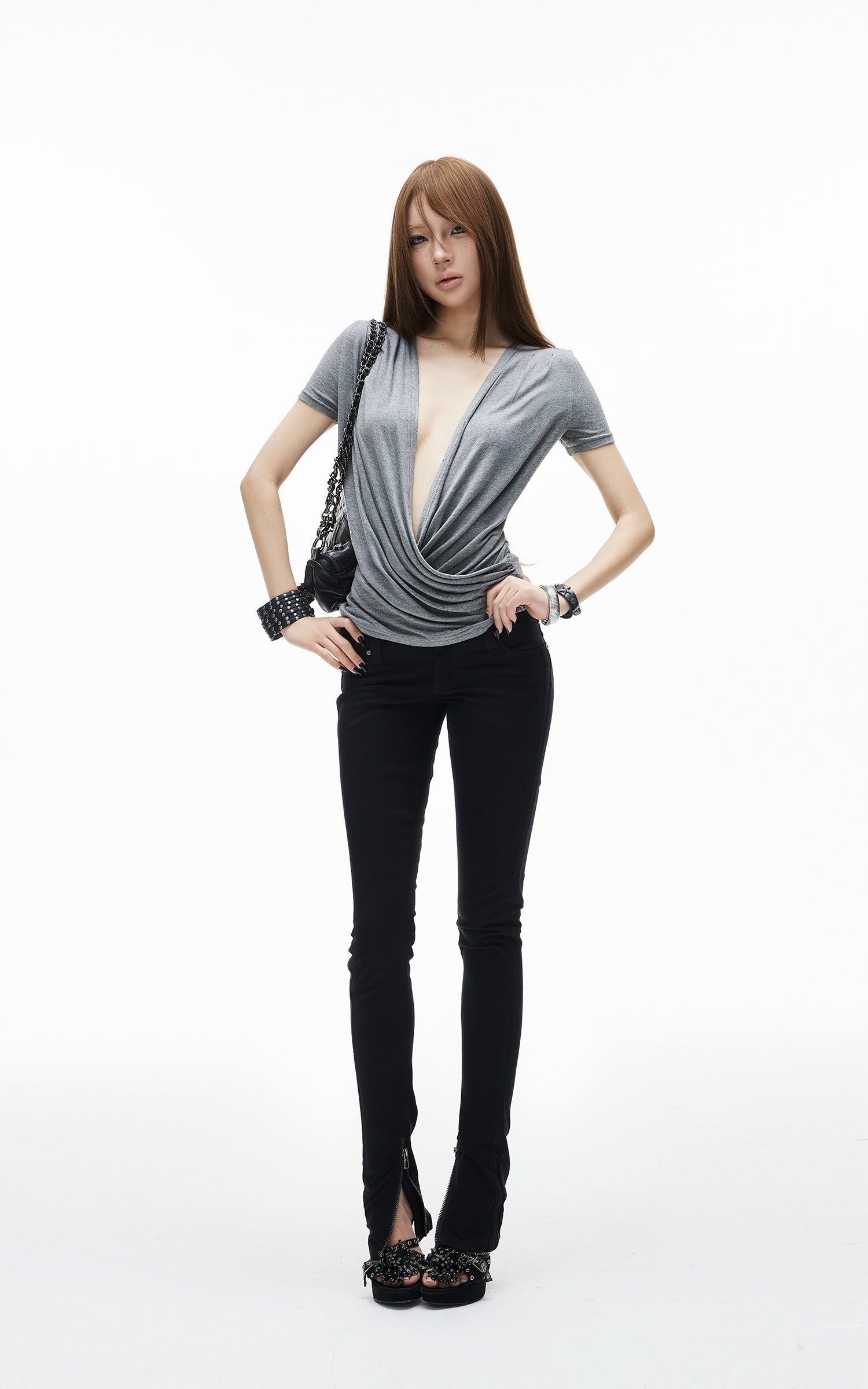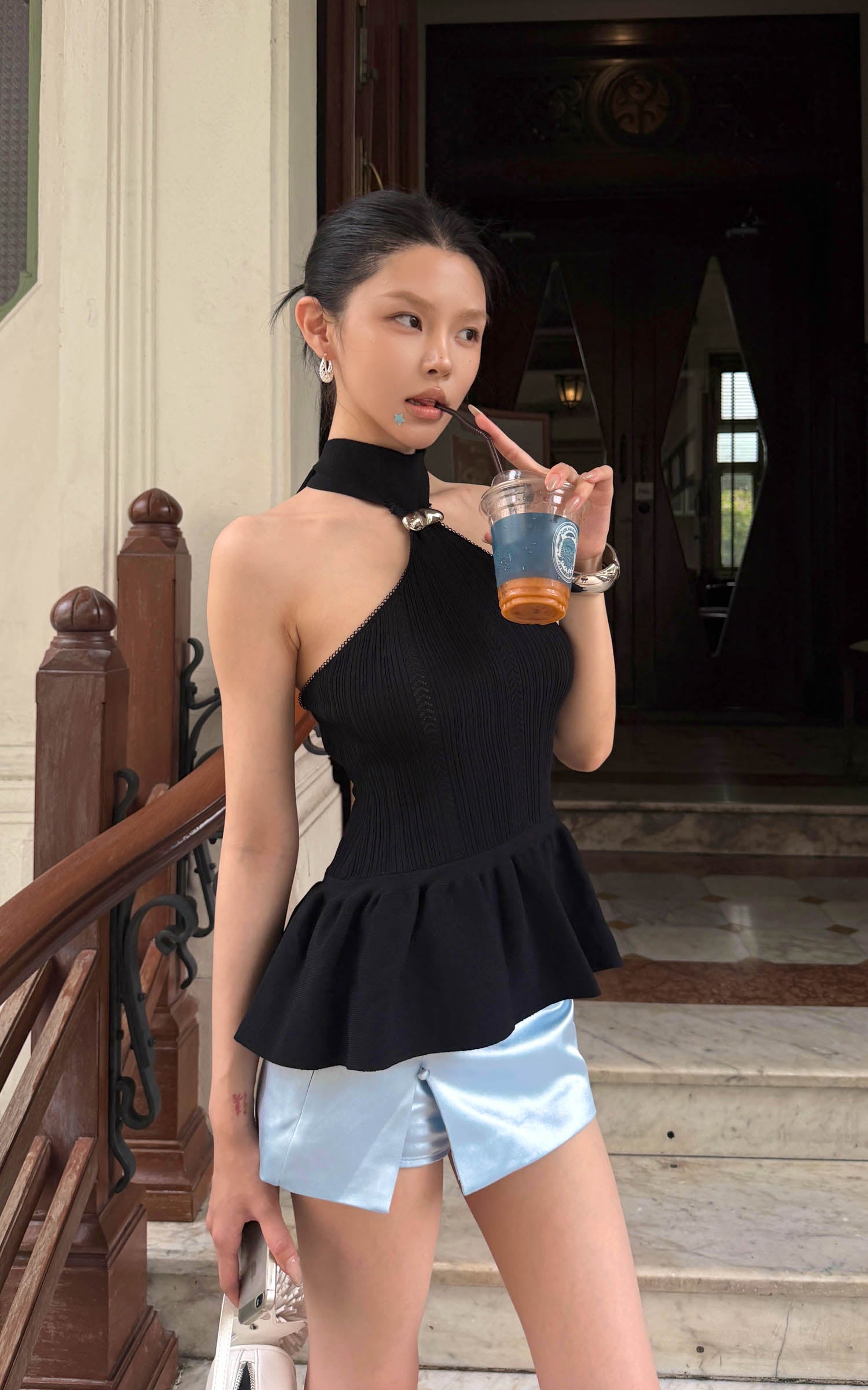 0122stepll Draped Asymmetric Halter Top